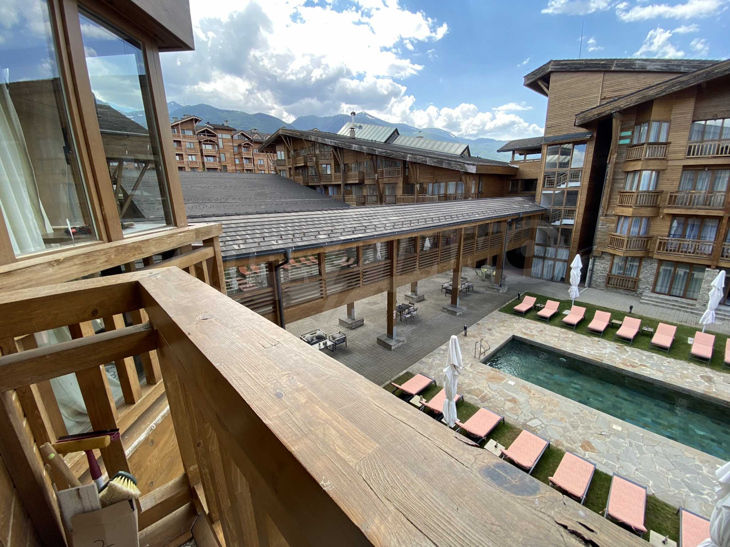 Z apartamentu roztacza się piękny widok na góry i zewnętrzny basen kompleksu.