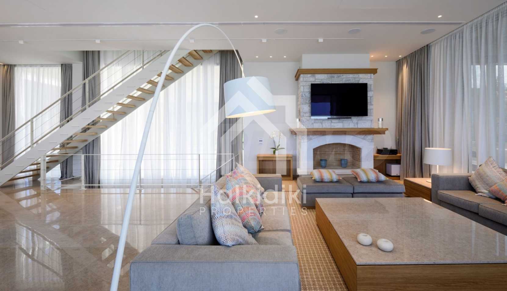 Luksusowa rezydencja. Piękny dom wolnostojący z basenem, nad brzegiem morza, w bardzo pięknym miejscu na Sithonii, w sercu Półwyspu Chalcydyckiego. Nieruchomość położona jest na działce 9599,44 mkw. , z niesamowitym widokiem na morze, w odległości 1,3 km od centrum miejscowości.Składa się z 3 poziomów o łącznej powierzchni 1000 mkw. powierzchni mieszkalnej. Nieruchomość składa się z 8 pokoi, 2 toalety. , schowek i 8 łazienek