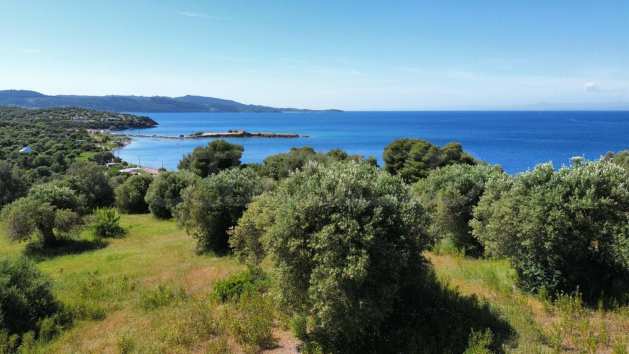 Ekskluzywny teren o powierzchni 8000 mkw. Teren przeznaczony pod zabudowę na standardowych zasadach. . Znajduje się poza planem, w widocznym miejscu na Kassandrze na Półwyspie Chalcydyckim. To jest w odległości spaceru od morza. Widok na morze jest wyjątkowy. , a orientacja jest południowa.
