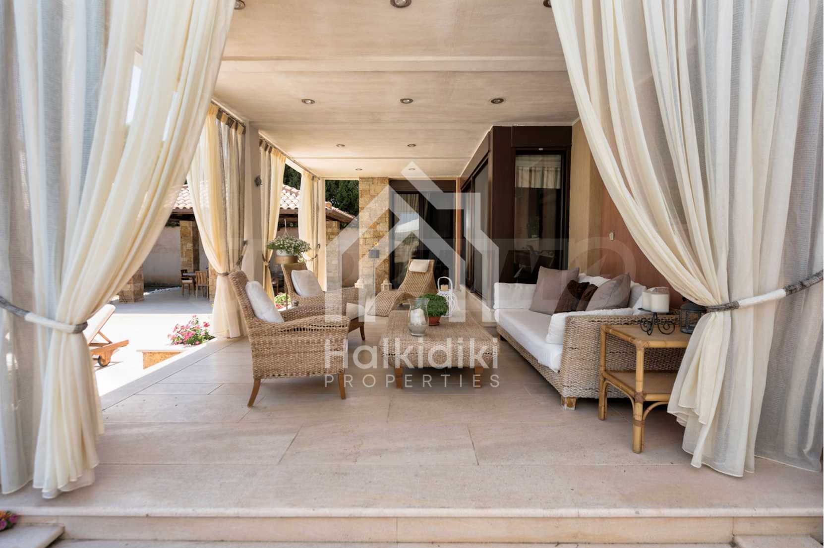 Luksusowa nieruchomość, Wyjątkowy dom wolnostojący w kompleksie z basenem, w bardzo pięknym miejscu na Kassandrze, w małym raju na Półwyspie Chalcydyckim. Nieruchomość położona jest na powierzchni 1975,36 mkw. w odległości 2,2 km od centrum wsi Składa się z 3 poziomów o łącznej powierzchni 260 mkw. powierzchni mieszkalnej. Nieruchomość składa się z 5 pokoi, 1 toalety. , schowek i 3 łazienki