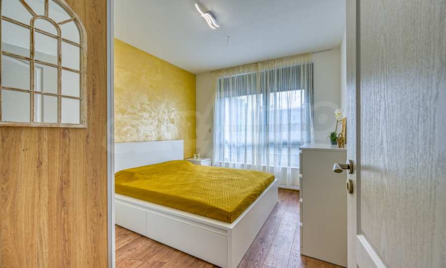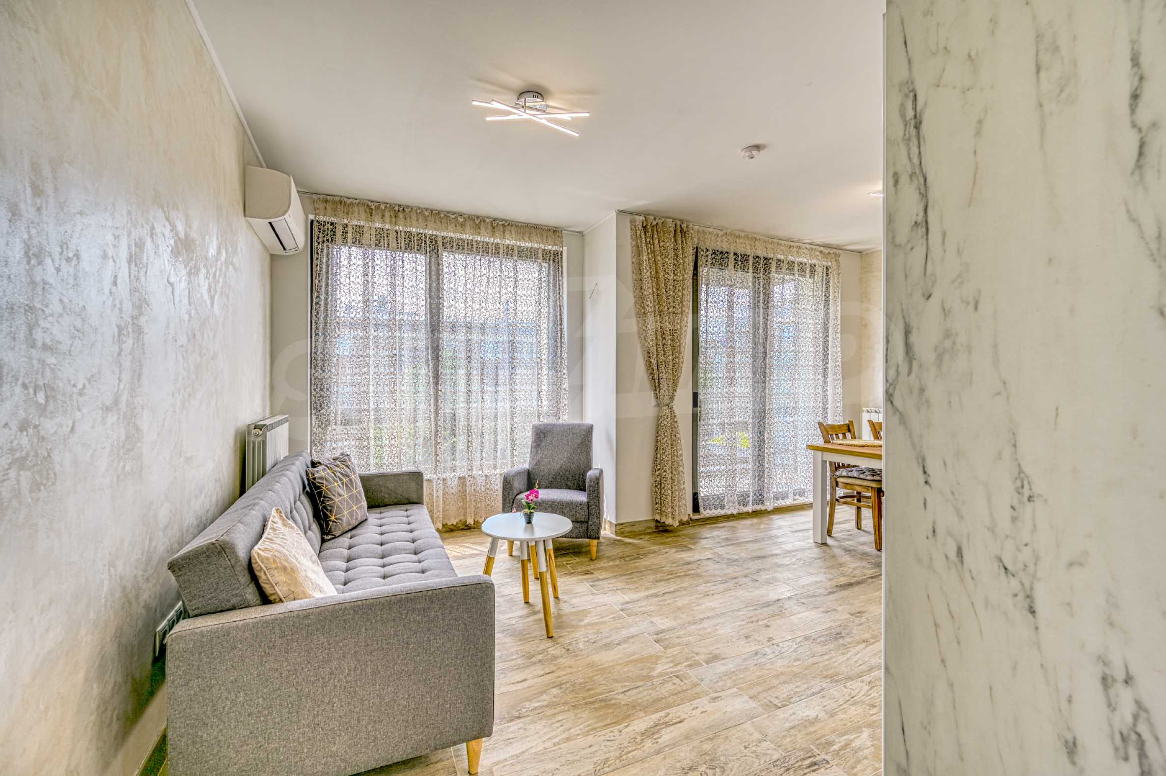 Prezentujemy jednopokojowe mieszkanie o przytulnym wnętrzu w nowym budynku z 2022 roku, w doskonałej lokalizacji w centrum Sofii, przy ulicy "Budapesta".