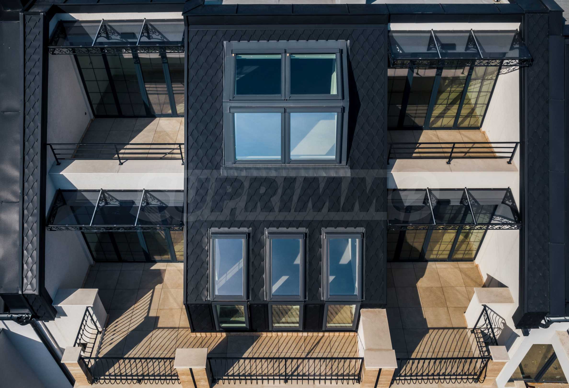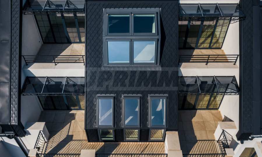 Zaprojektowany w klasycznej architekturze i nowoczesnym wyglądzie, budynek znajduje się pomiędzy dwoma fałami, rozmieszczonymi na pięciu piętrach z dwoma poddaszami i jednym podziemnym, w których znajduje się łącznie trzynaście mieszkań. Do wyboru są apartamenty z dwiema i trzema sypialniami oraz nieruchomości z jedną sypialnią, które umożliwiają łączenie. W piwnicy znajdują się pomieszczenia magazynowe. Parking zapewnia 5 miejsc postojowych i 2 komórki garażowe w poziomie podziemnym oraz 3 komórki garażowe i 3 miejsca parkingowe naziemne na piętrze. Komunikacja pionowa składa się z windy i klatki schodowej obsługującej wszystkie poziomy. Główne elewacje budynku wykończone są wysokiej jakości materiałami z różną fakturą powierzchni z trawertynu oraz kutymi balustradami z naturalną patyną.