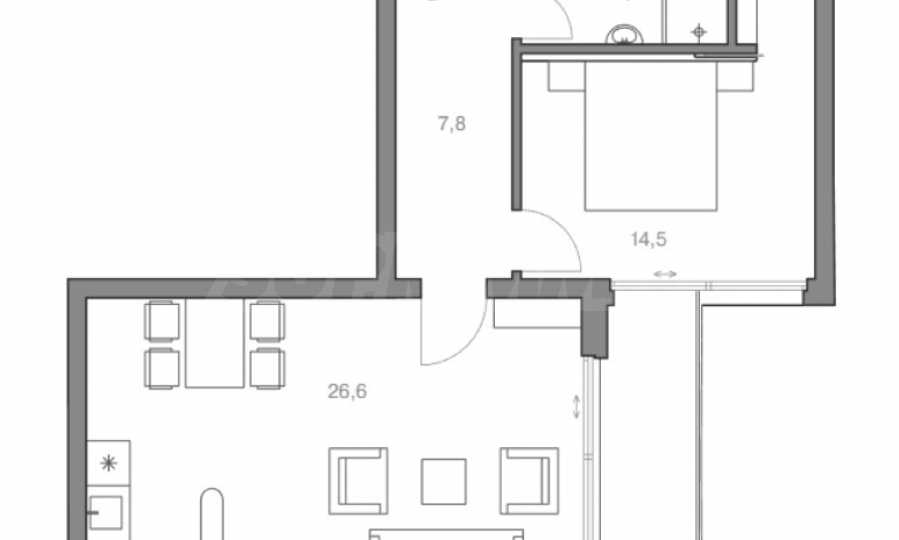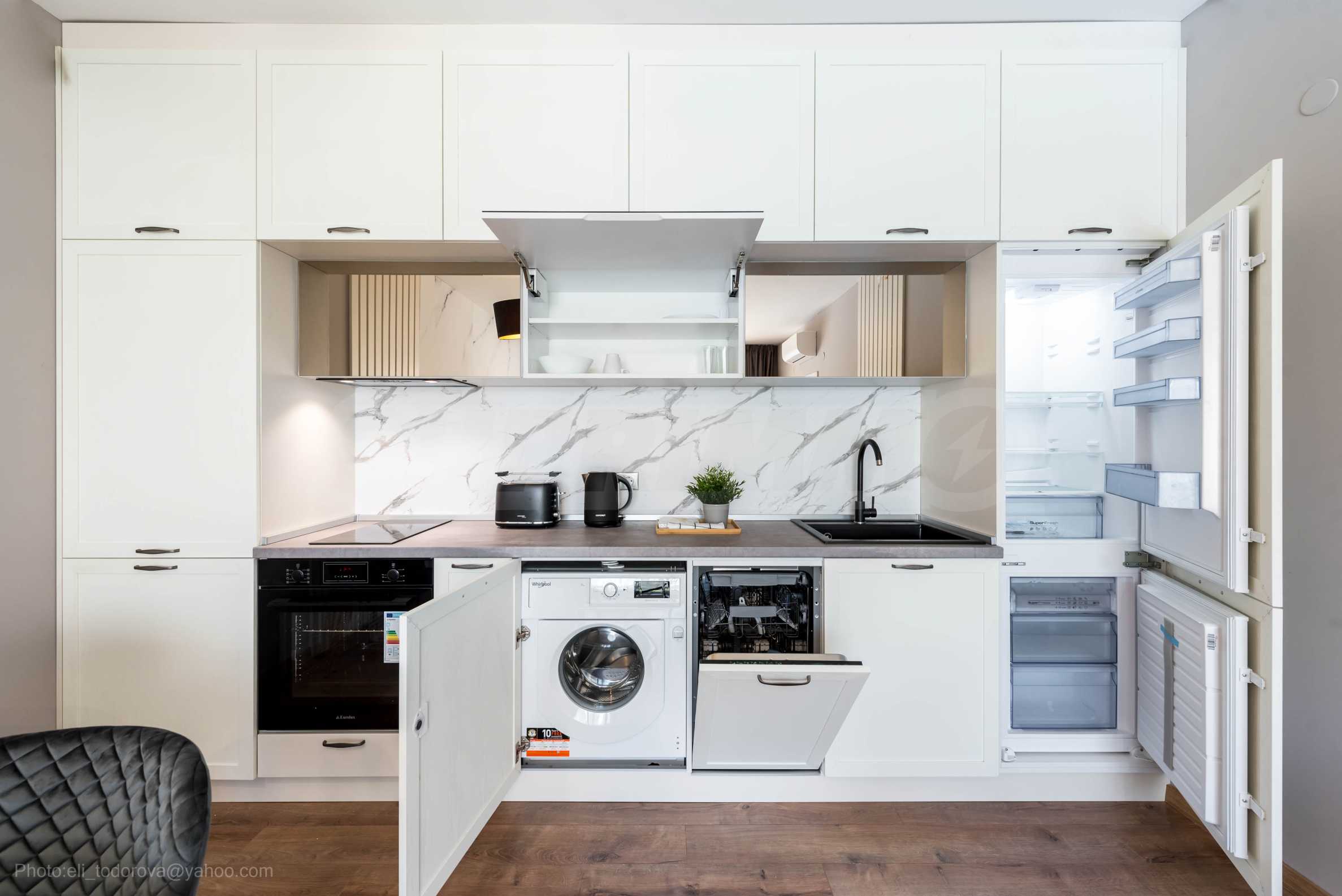 Mieszkanie jest umeblowane według projektu, o wartości 15 000 euro, nie wliczone w podaną cenę.