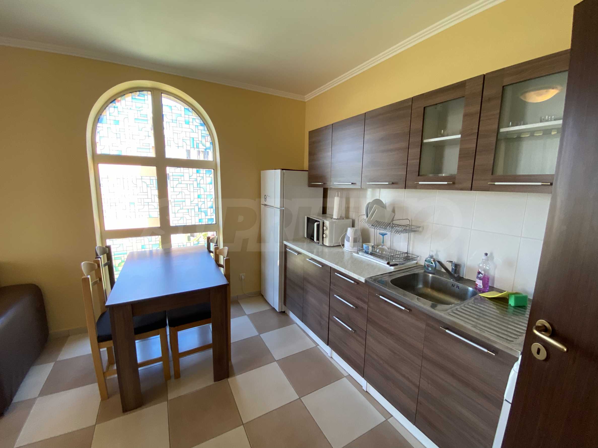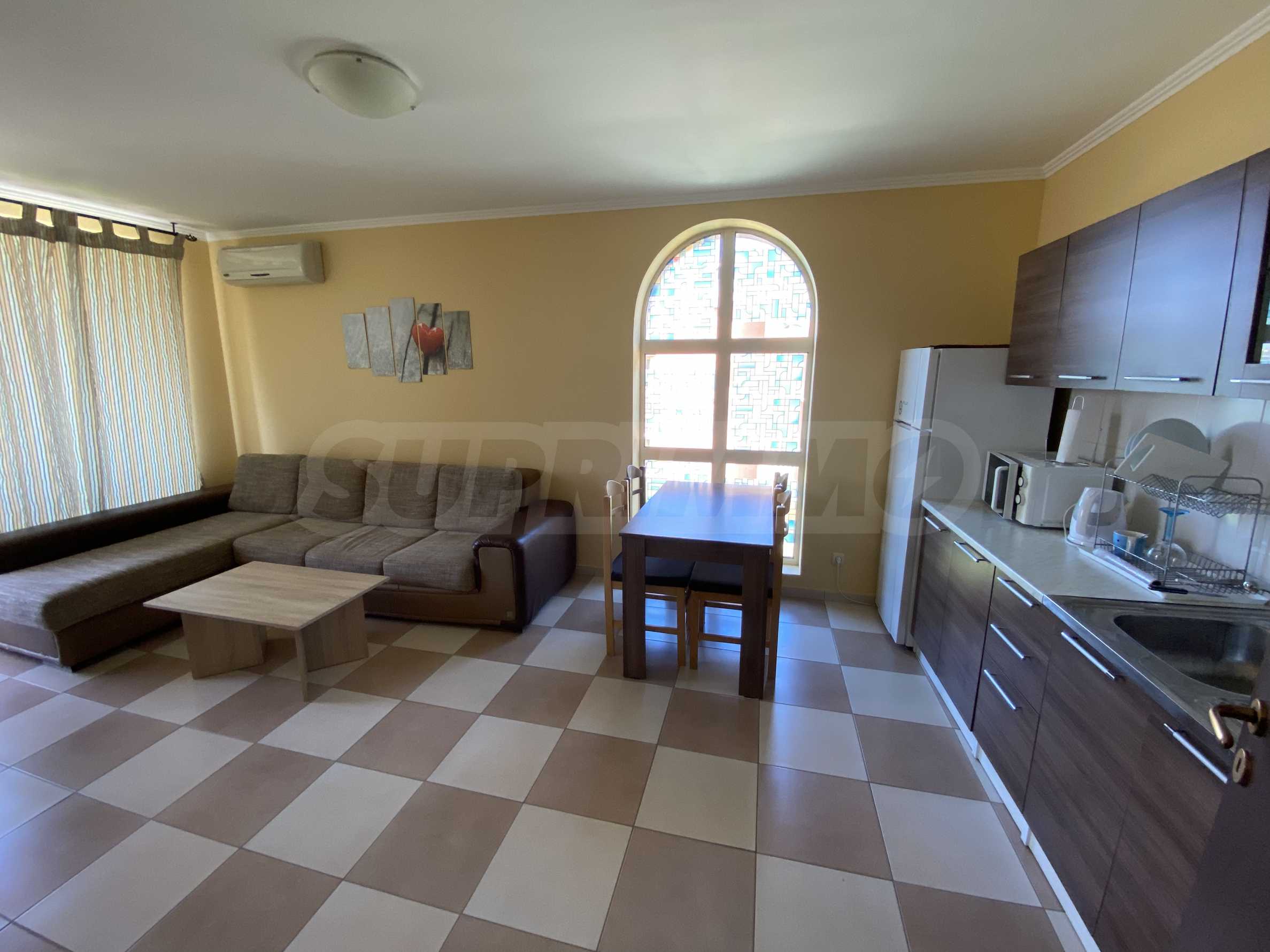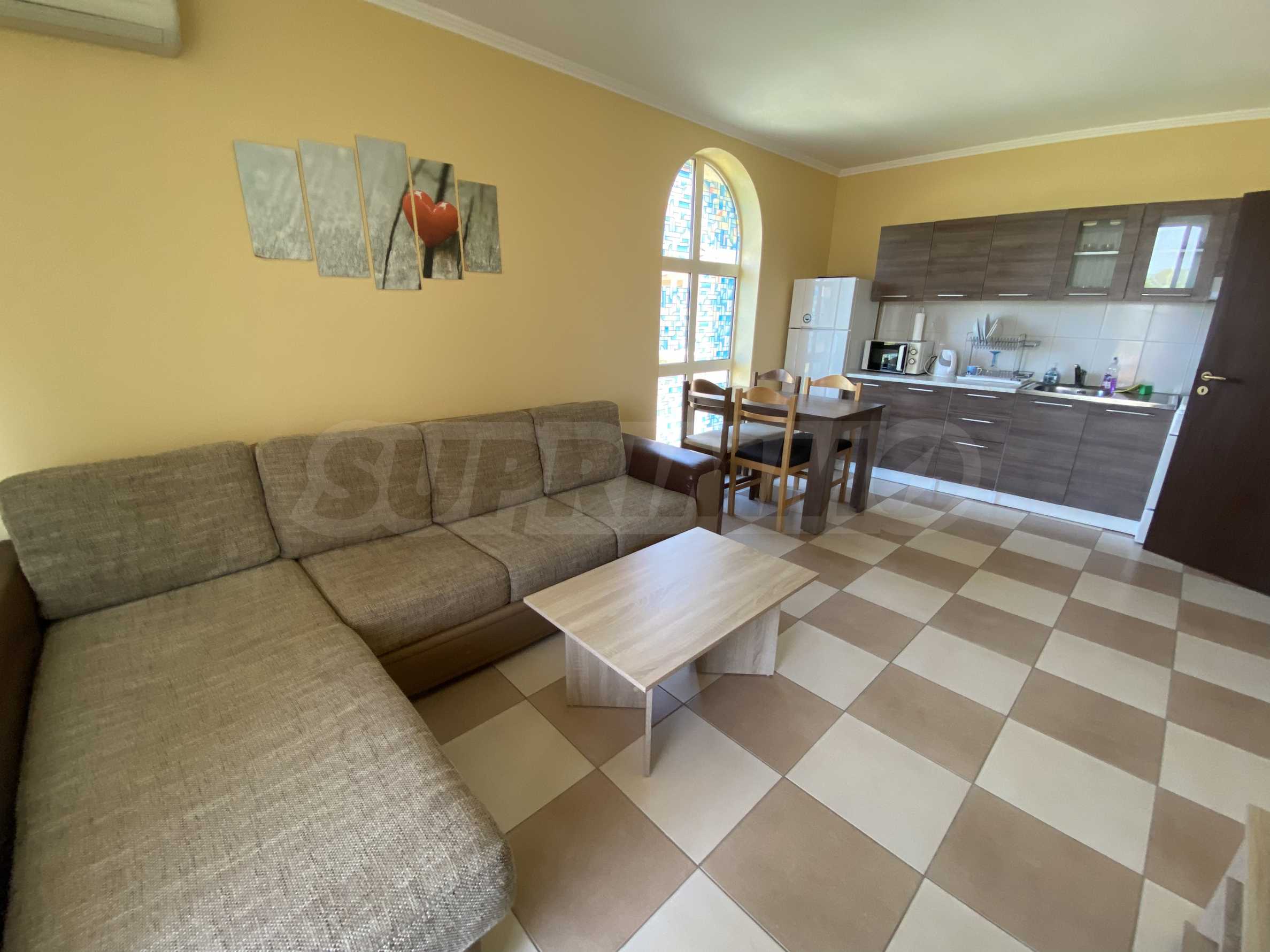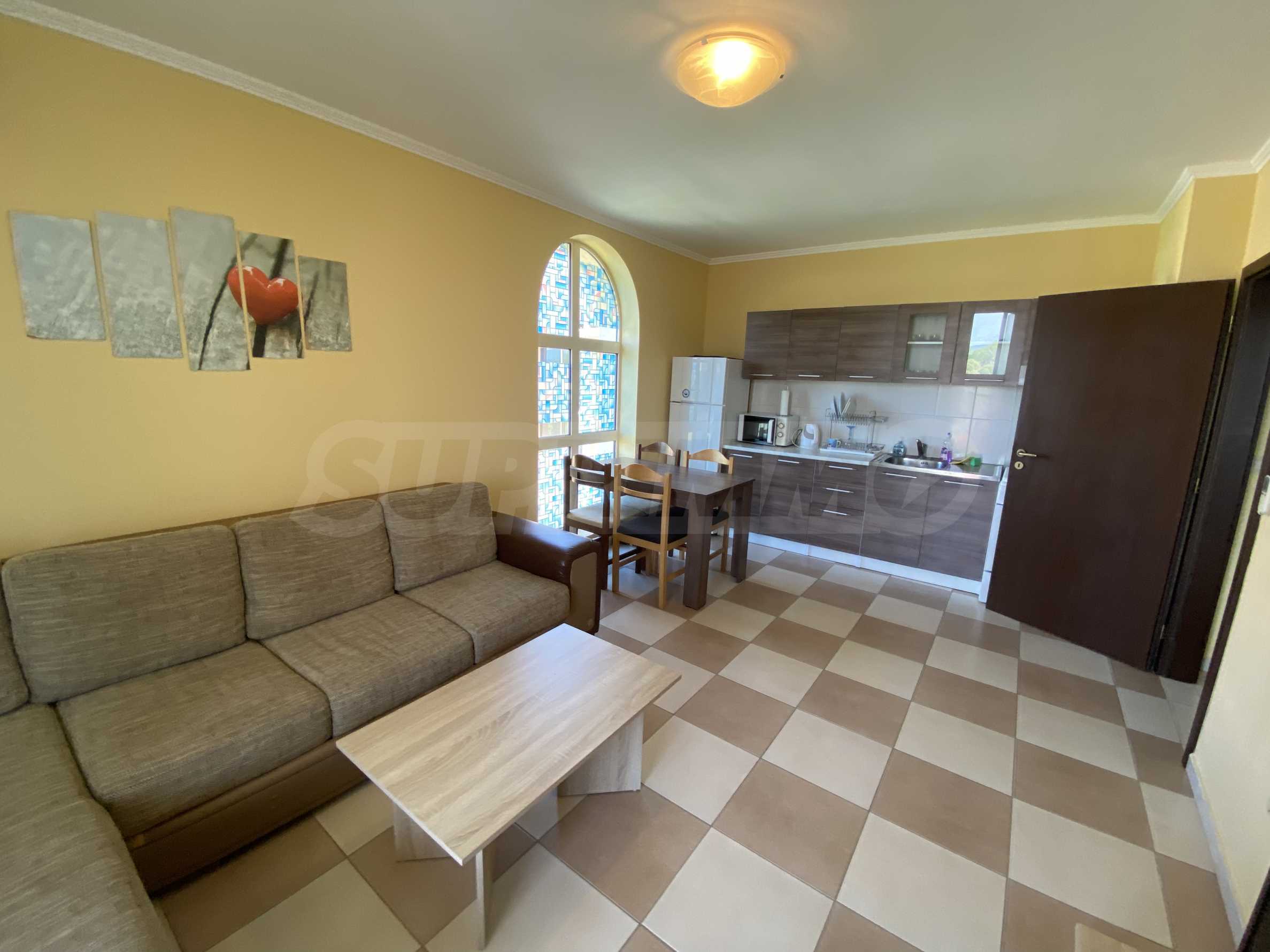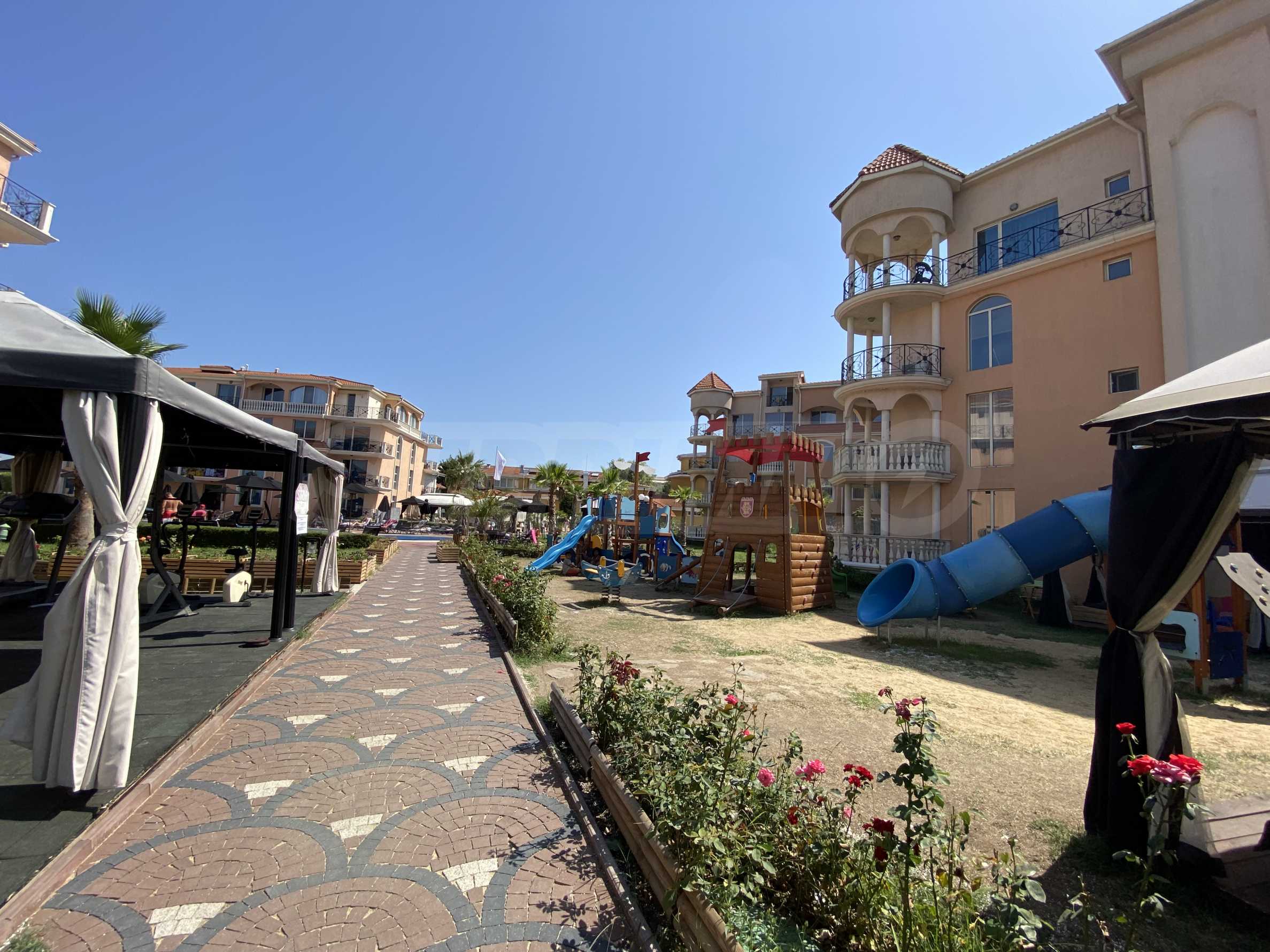 Nieruchomość znajduje się na 3 piętrze i posiada boczny widok na morze. Jest częścią elitarnego kompleksu z udogodnieniami, położonego obok zatoki i plaży \"Złota Rybka\", dzielnica Gradina, z dogodnym dojazdem z głównej drogi Burgas-Sozopol. To tylko 5 minut jazdy samochodem do Sozopola.