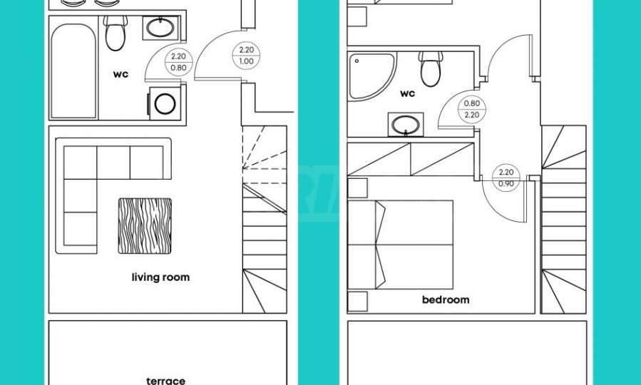 Prezentowane mieszkanie znajduje się na 2 i 3 piętrze i ma powierzchnię całkowitą 92 m2 komfortowo rozłożoną na salon z aneksem kuchennym, dwie sypialnie oraz dwie łazienki z toaletą. Mieszkanie jest dostarczane „pod klucz”, z drzwiami wejściowymi i wewnętrznymi, ponowną instalacją klimatyzatorów, wyposażoną łazienką z toaletą.