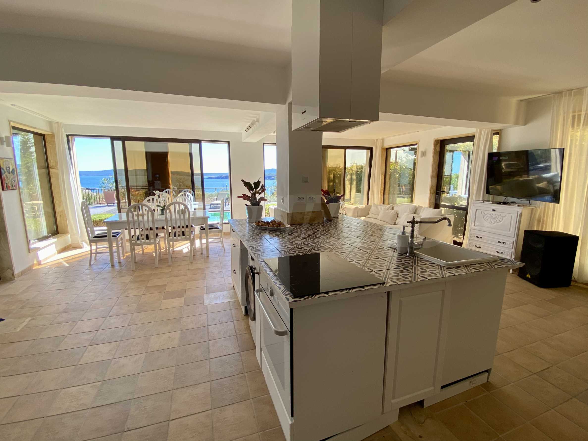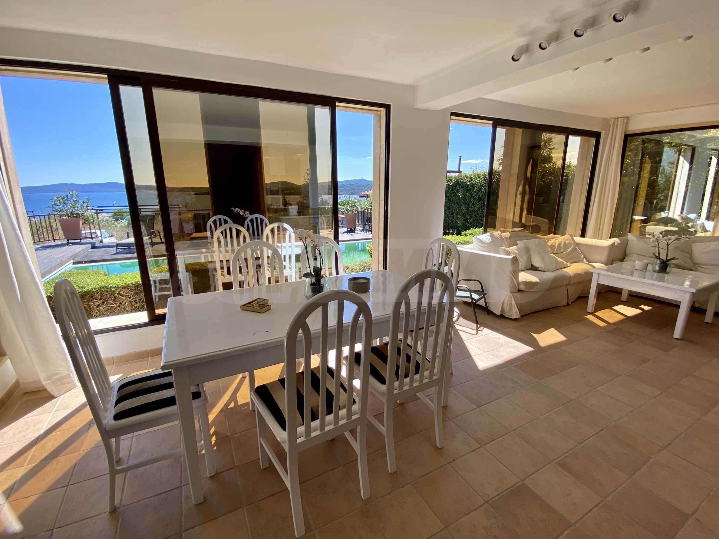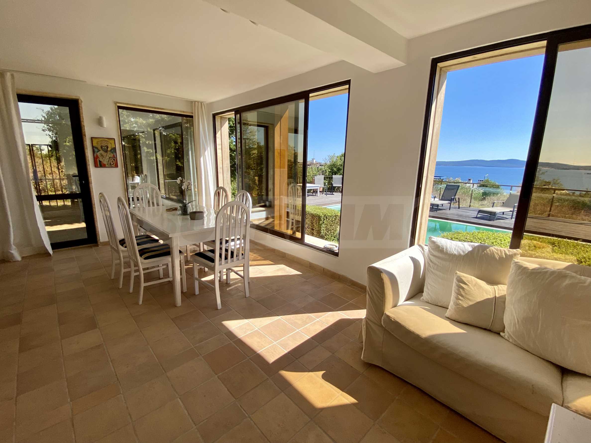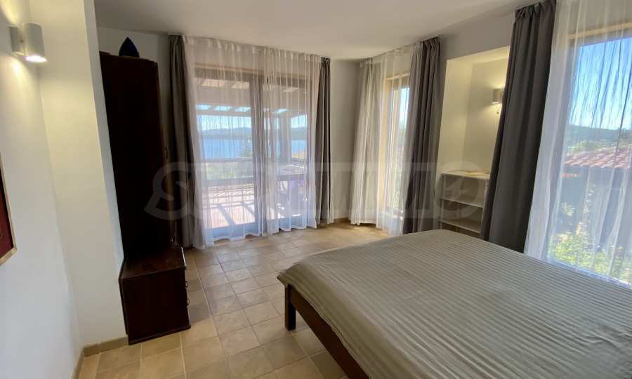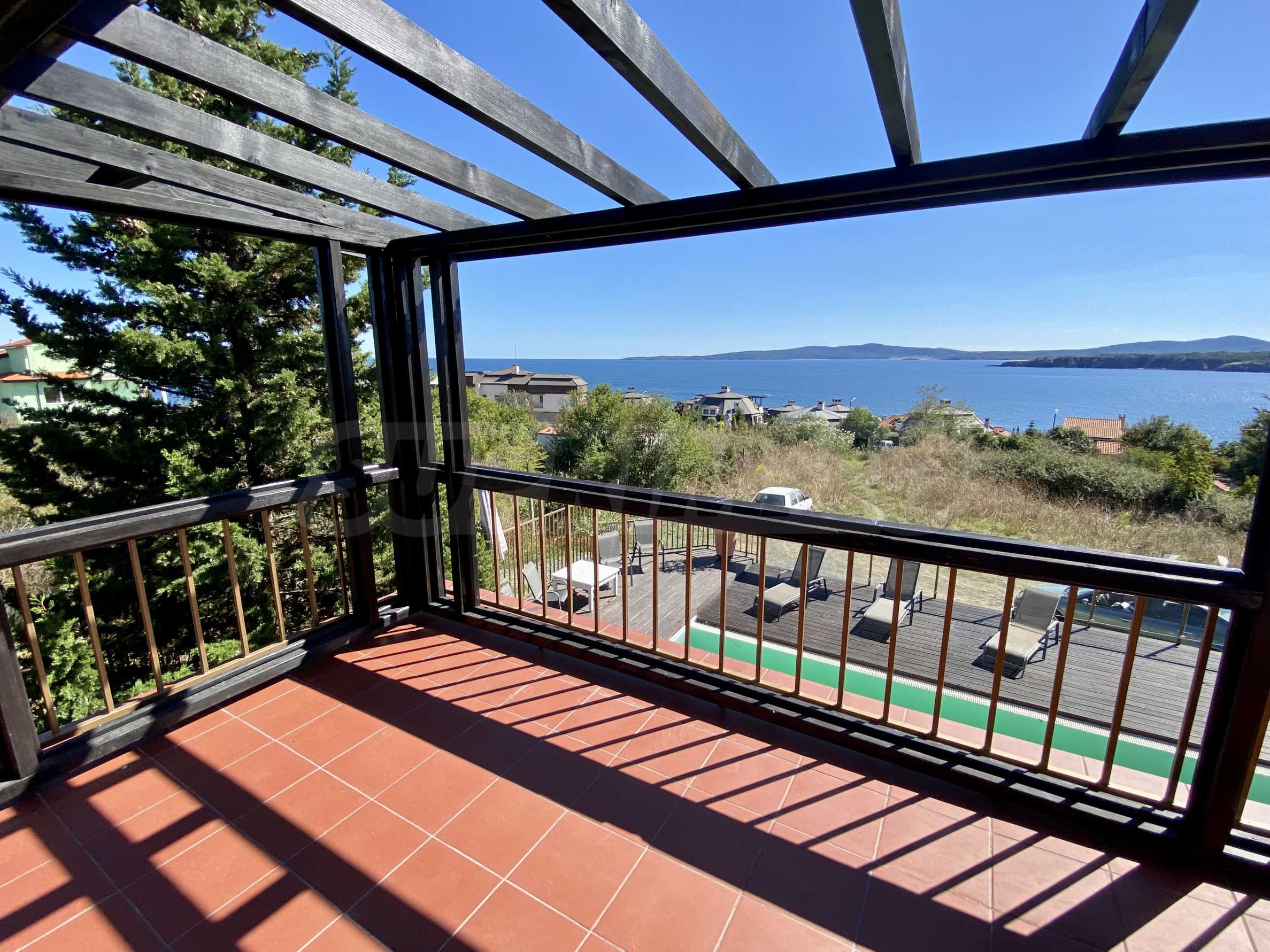 Dom jest rozmieszczony na dwóch poziomach, składa się z panoramicznego salonu z kuchnią, czterech przytulnych sypialni, czterech łazienek, przestronnych tarasów z frontalnym widokiem na morze i basen. Tylny taras jest zadaszony, istnieje możliwość przerobienia na drugi salon, 2 pokoje lub inne, powierzchnia tarasu to 40 mkw.