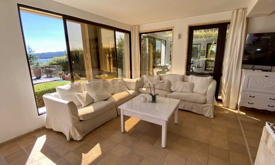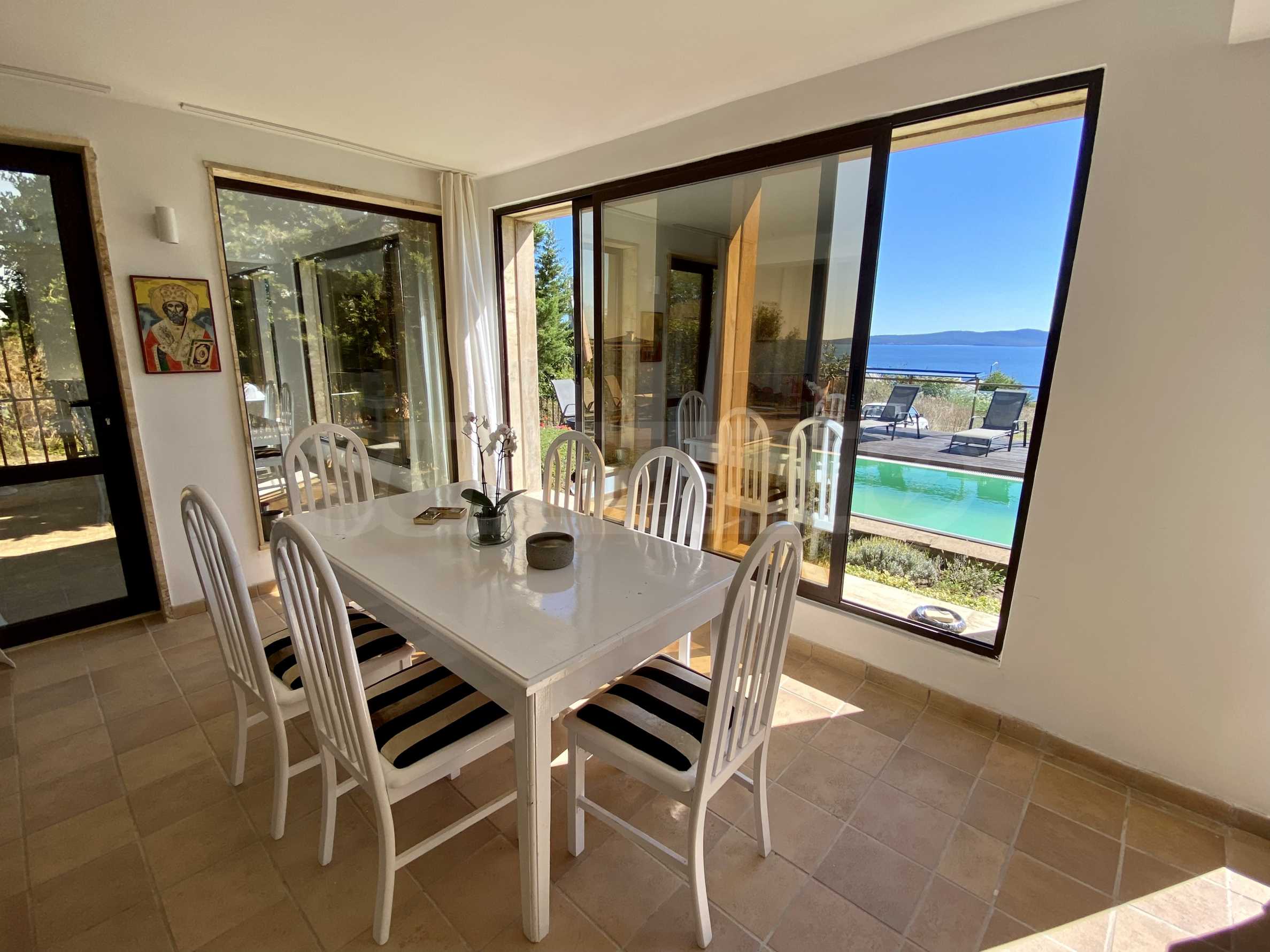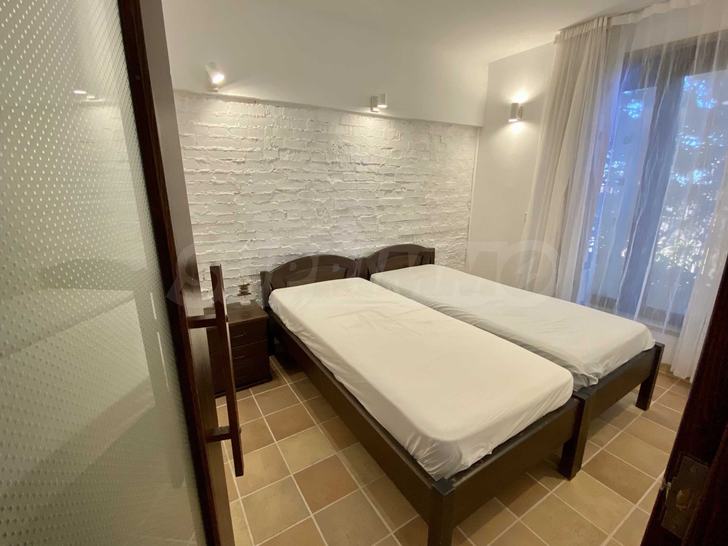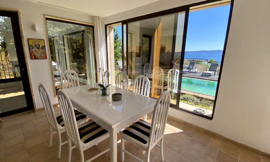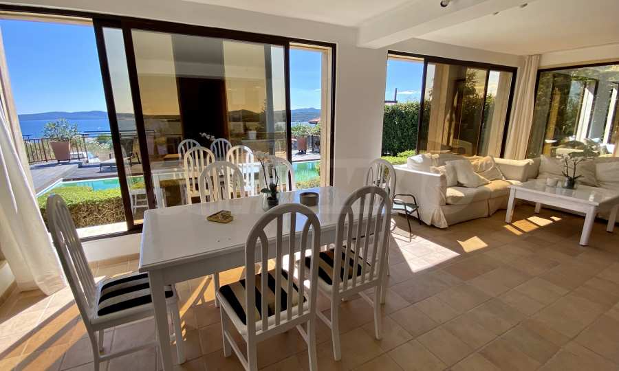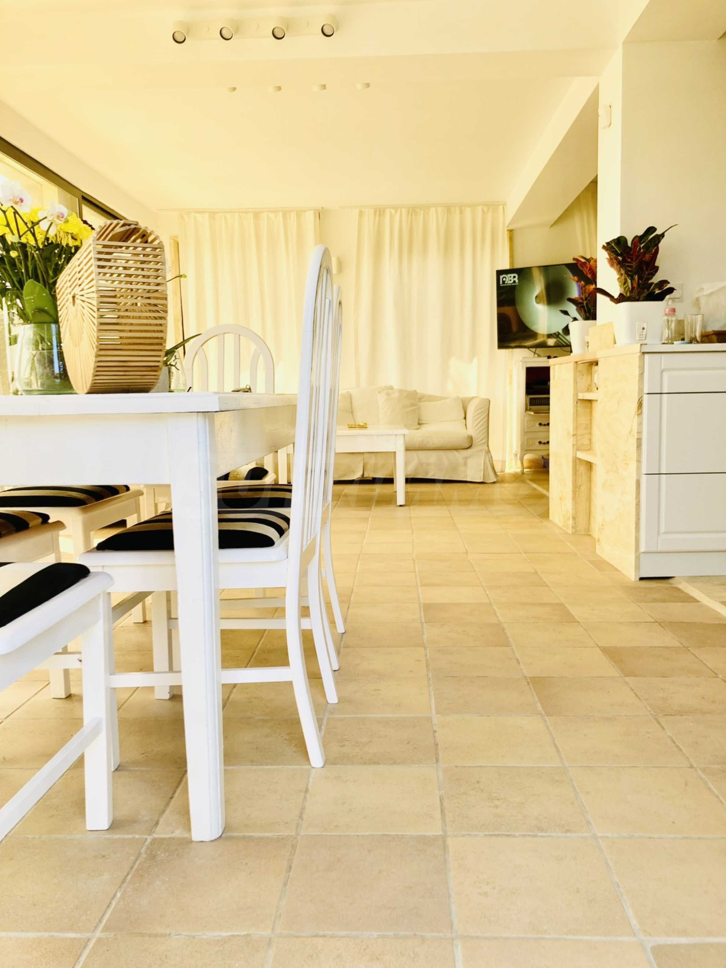 Dom jest rozmieszczony na dwóch poziomach, składa się z panoramicznego salonu z kuchnią, czterech przytulnych sypialni, czterech łazienek, przestronnych tarasów z frontalnym widokiem na morze i basen. Tylny taras jest zadaszony, istnieje możliwość przerobienia na drugi salon, 2 pokoje lub inne, powierzchnia tarasu to 40 mkw.