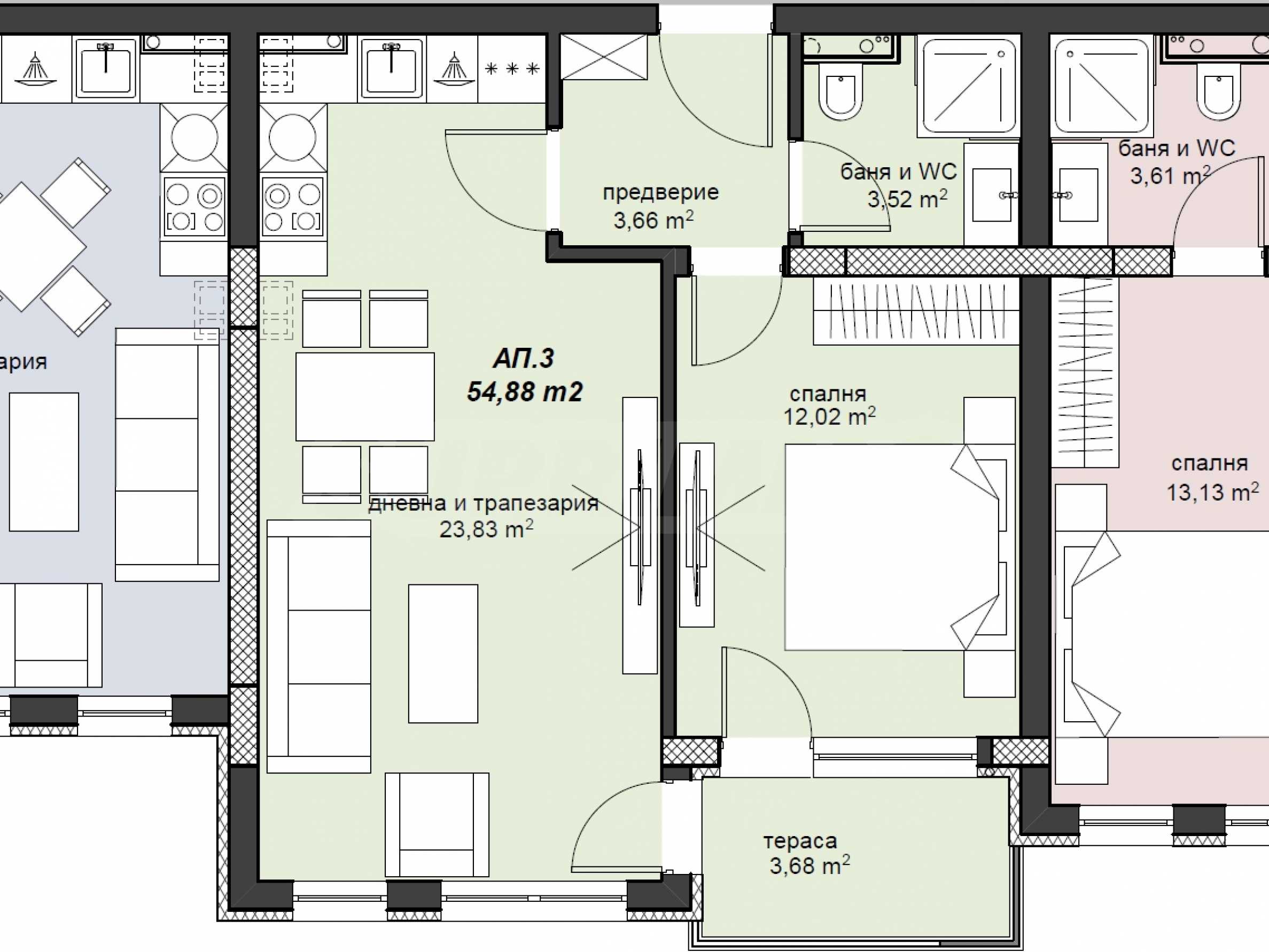 Oferujemy komfortowe, jednopokojowe mieszkanie w nowo wybudowanym kompleksie w dzielnicy „Hristo Smirnenski” w Płowdiwie. Lokalizacja budynku jest bardzo dogodna – w pobliżu znajduje się Baza Wioślarska, a także szkoły, przedszkola i nowoczesne placówki medyczne. Z tego miejsca można łatwo i szybko dojechać do centrum miasta, głównych bulwarów i autostrady „Trakia”.