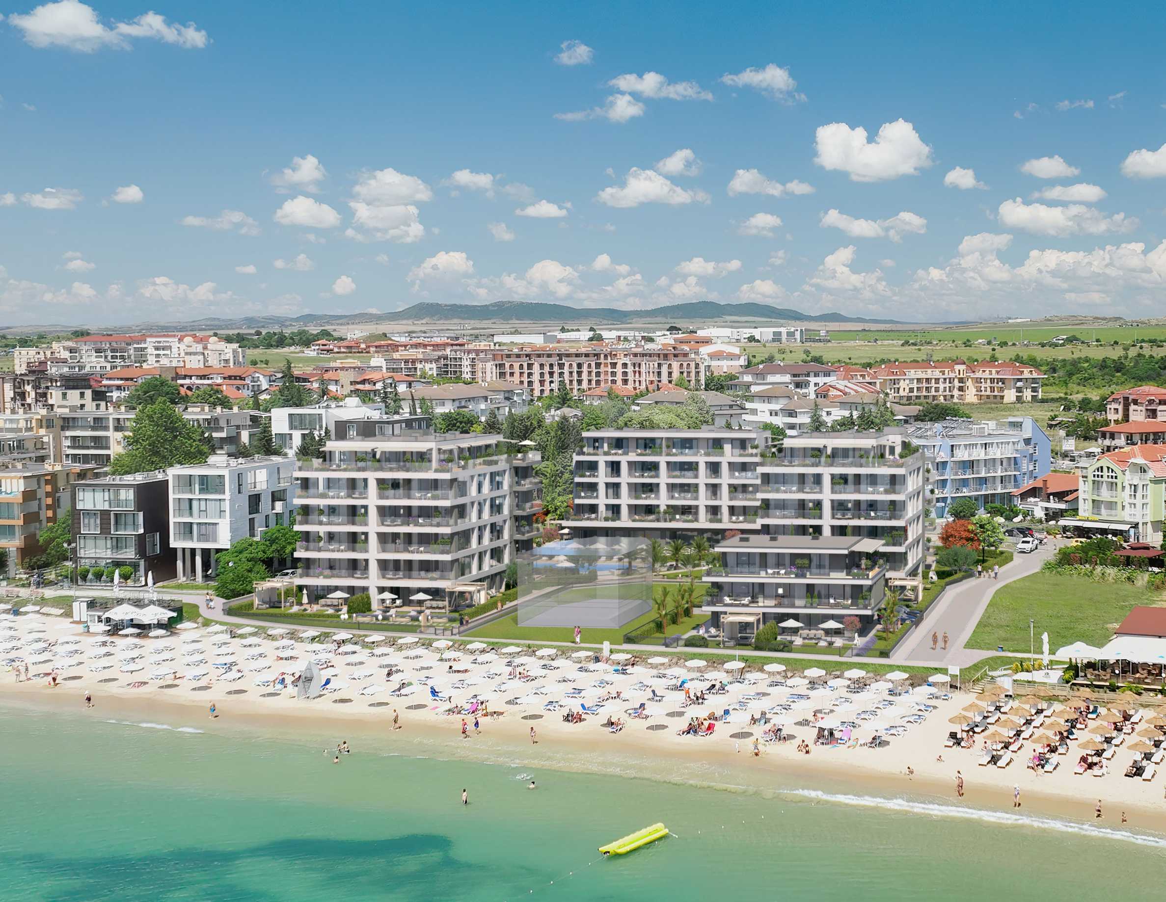 Kompleks położony jest na działce o powierzchni 6200 m2, z widokiem na cztery ulice i różnicą wysokości 2 m. Składa się z czterech niezależnych budynków mieszkalnych z bezpośrednim dostępem do basenu i dziedzińca kompleksu oraz z bezpośrednim połączeniem z plażą. Wizja architektoniczna jest nowoczesna, z wentylowaną fasadą, a części wspólne zostaną wykończone według projektu architektonicznego, z wielkoformatowymi płytkami ceramicznymi, panelami, okładzinami, podłogami na klatkach schodowych z granitu i podwieszanymi sufitami według indywidualnego projektu. Windy będą szwajcarskiej firmy Schindler, dźwiękoszczelne i wielkogabarytowe.
