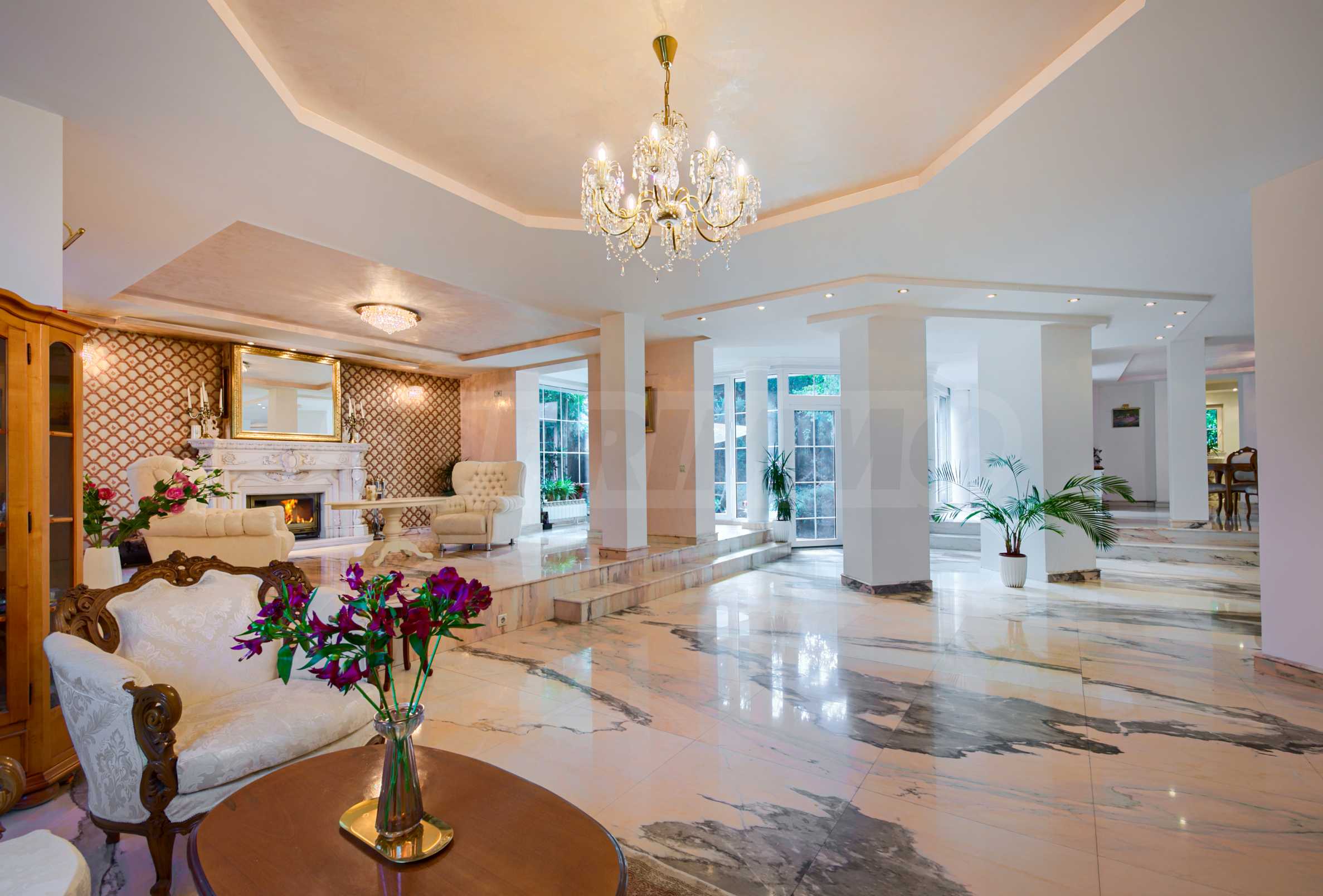 Wnętrza emanują luksusem i dbałością o szczegóły: podłogi pokryte są rzadkim różowym marmurem Rosso Portogallo, ściany wykonano ze stucco veneziano i tynku suahili, a stolarka Kömmerling z wbudowaną białą helimą dodaje całości kompletności i idealnej równowagi między funkcjonalnością a estetyką.