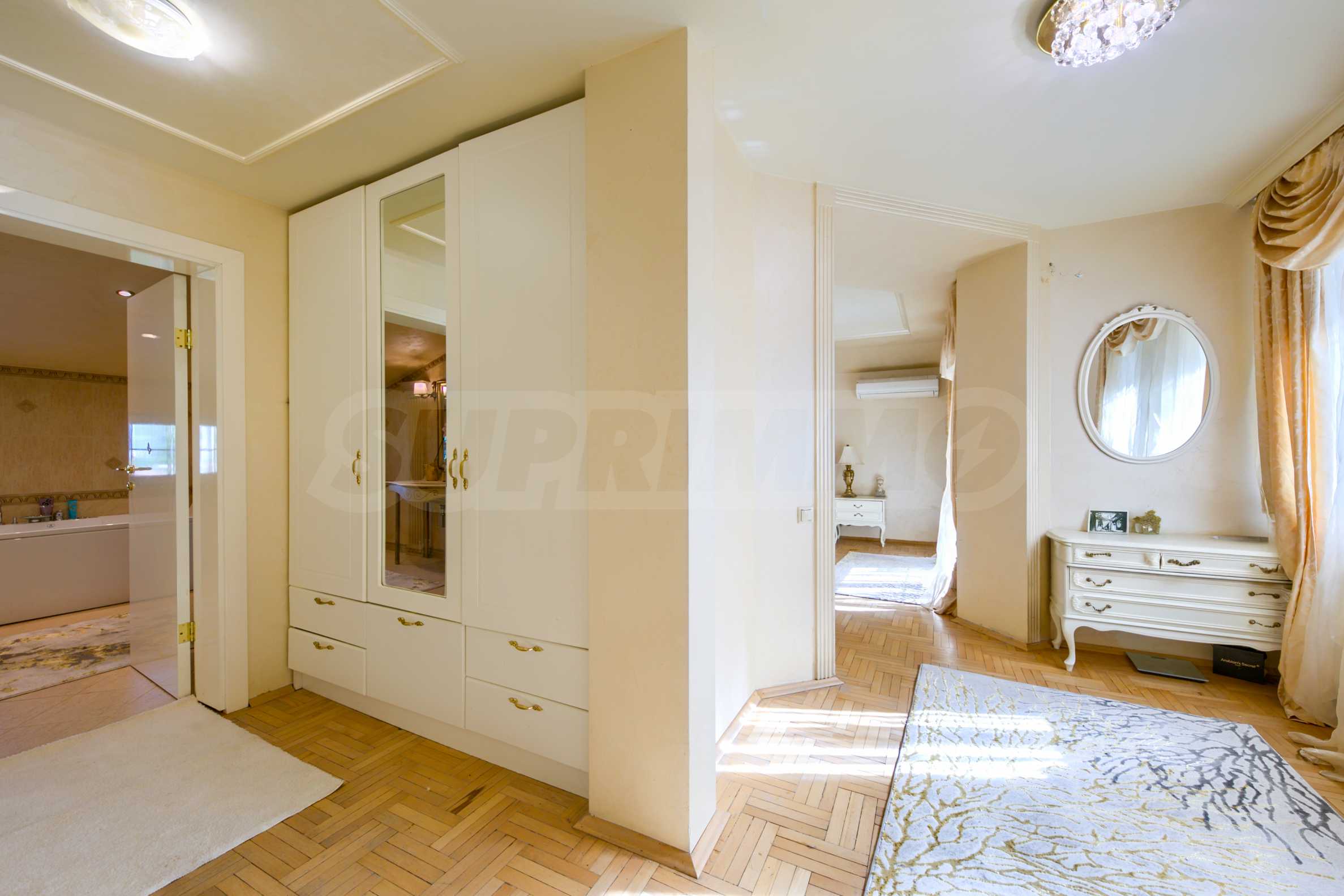 • drugie piętro: trzy przestronne sypialnie, każda z własną łazienką i tarasem, garderoba, a także gabinet z imponującym widokiem na panoramę Sofii.