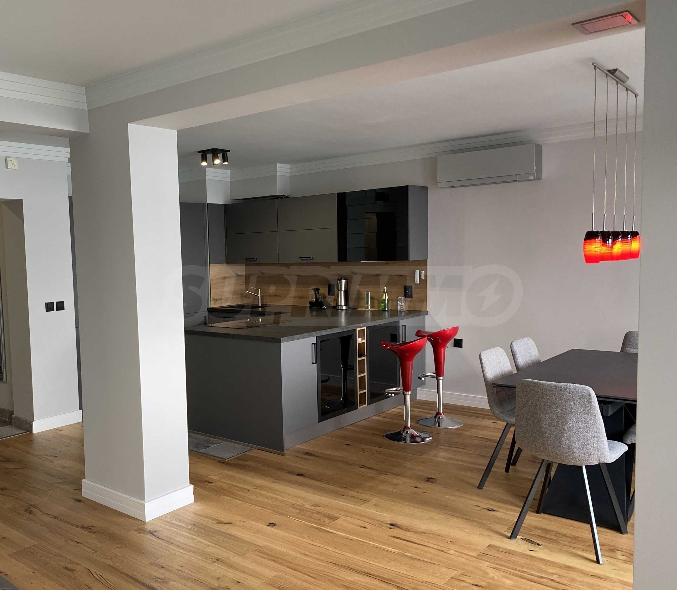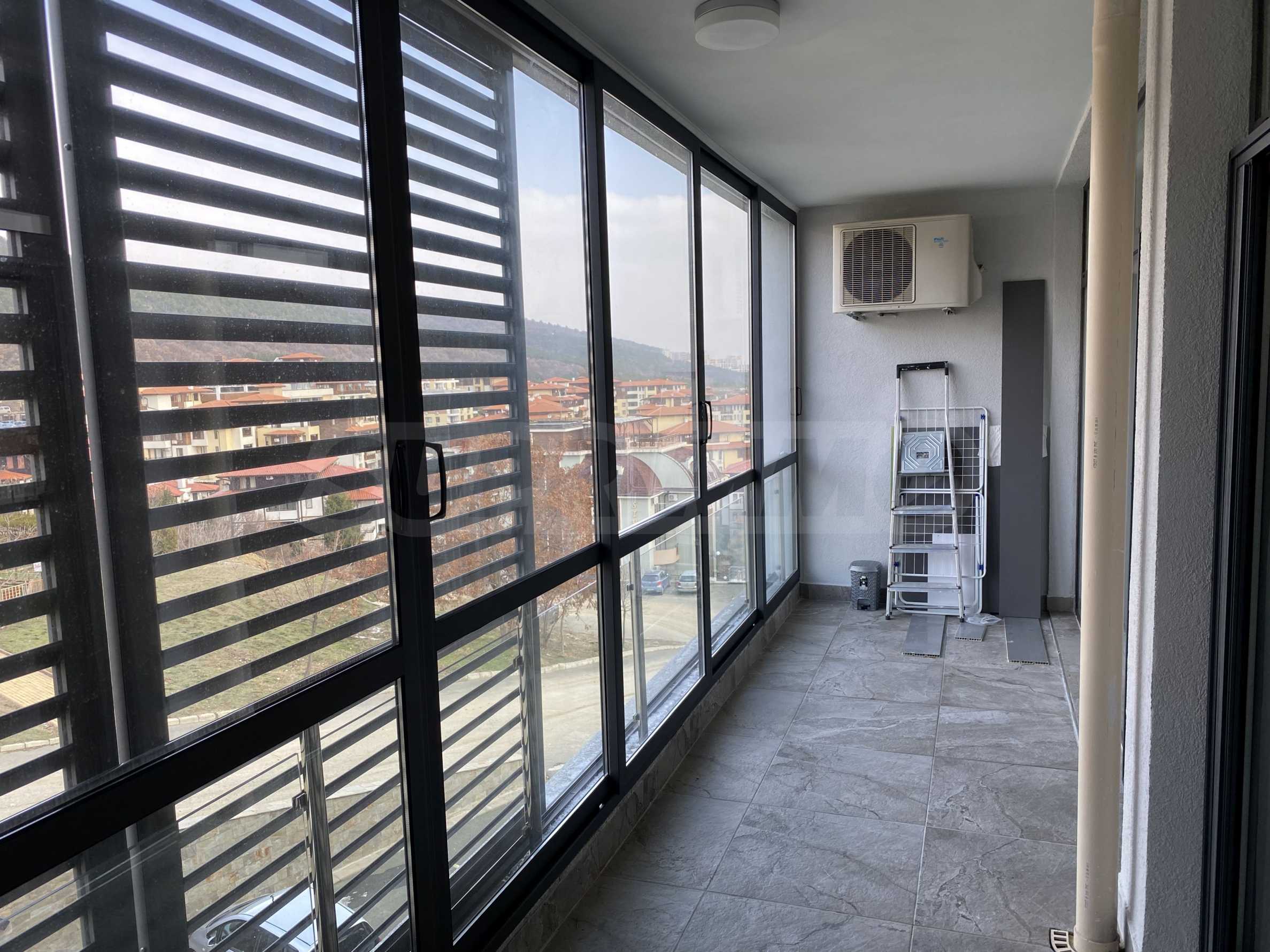 Nieruchomość znajduje się na 5 piętrze i oferuje widok na morze i Stary Nesebyr od strony południowej, a od strony północnej na wzgórza Starej Planiny. Mieszkanie o powierzchni 120 m2 składa się z salonu z nowoczesną kuchnią, garderoby, korytarza, toalety, łazienki/WC z kabiną prysznicową, dwóch wygodnych sypialni.