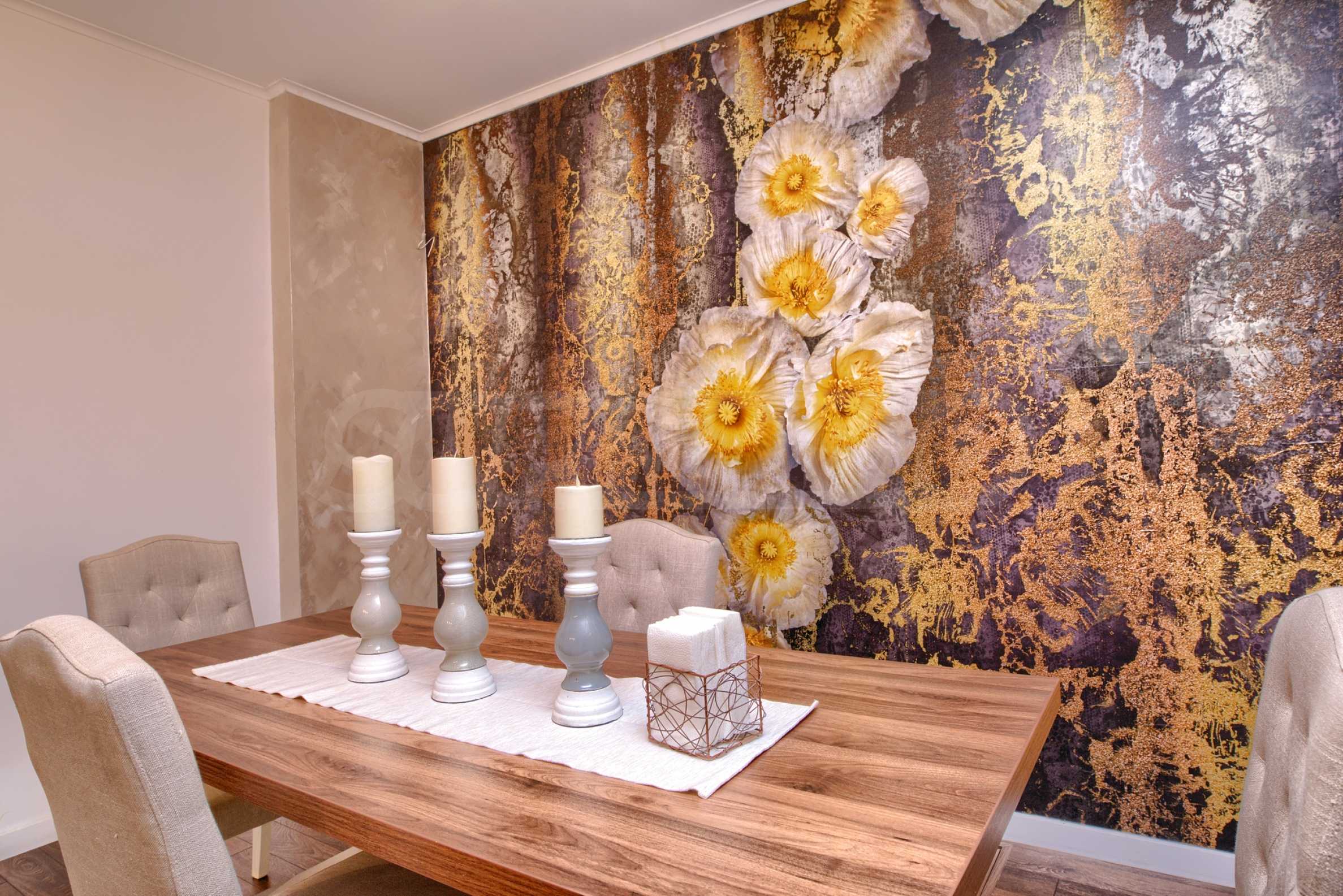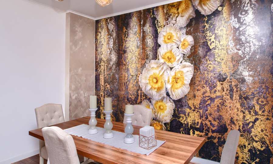 Wnętrze zaprojektowano w jasnych kolorach z motywami kwiatowymi. Jest umeblowane i wyposażone we wszystko, co potrzebne do komfortowego życia codziennego.