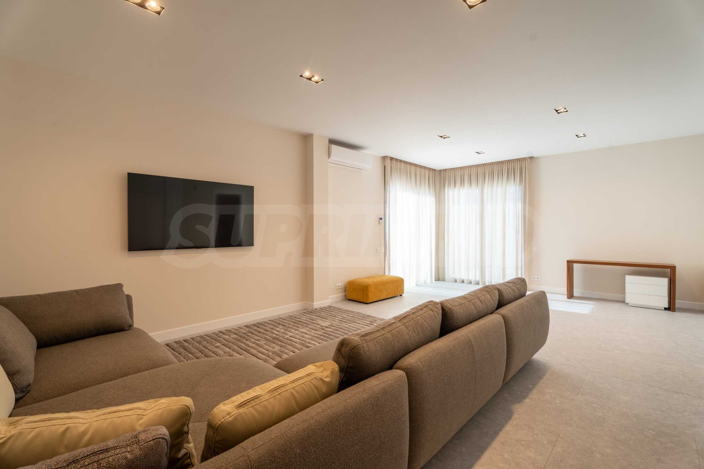 Lakoniczna architektura willi wyrażona jest w duchu nowoczesnego śródziemnomorskiego minimalizmu. Wyraźne proste linie, spokojna i miękka paleta kolorów tworzą komfort psychiczny. Dzięki temu willa zostanie doceniona i przez długi czas będzie sprawiała przyjemność jej mieszkańcom.