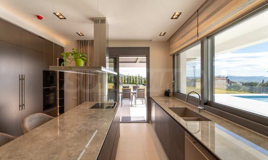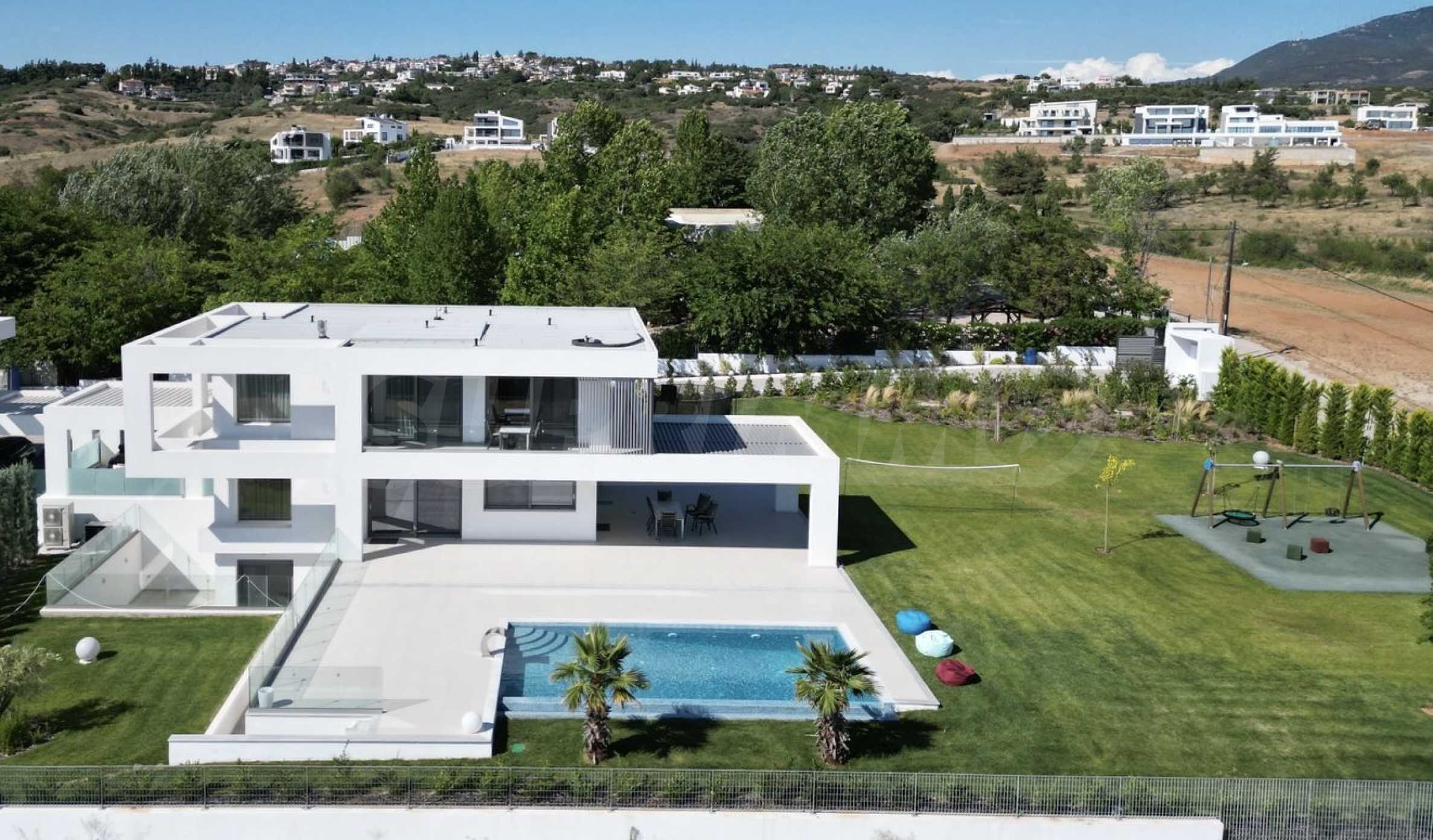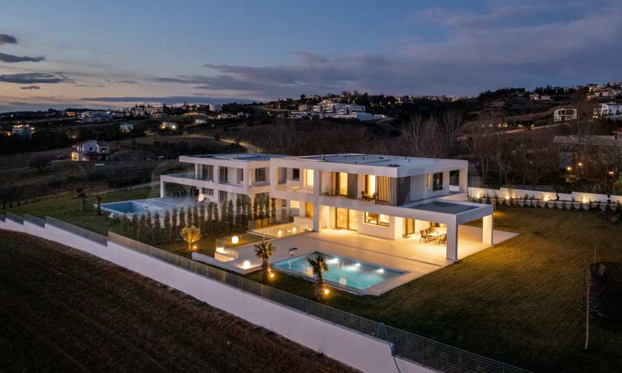 Willa położona jest z dala od głównej drogi, w ekologicznie czystym i spokojnym miejscu. To świetne rozwiązanie dla rodzin z dziećmi oraz osób, które od hałaśliwego miasta przedkładają ciszę. Duże panoramiczne okna oferują wspaniały widok na Zatokę Thermaikos i samo miasto Saloniki.