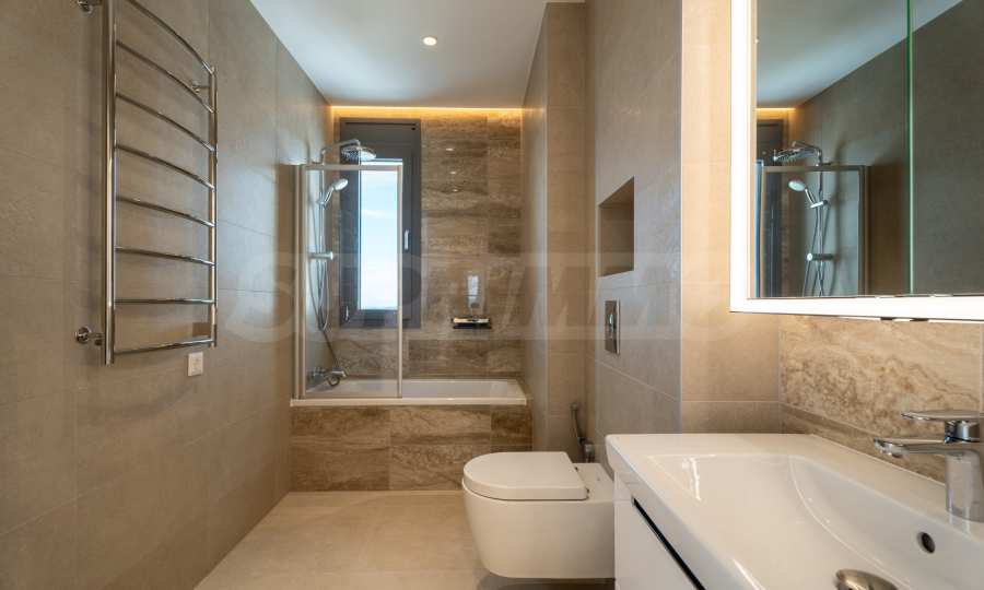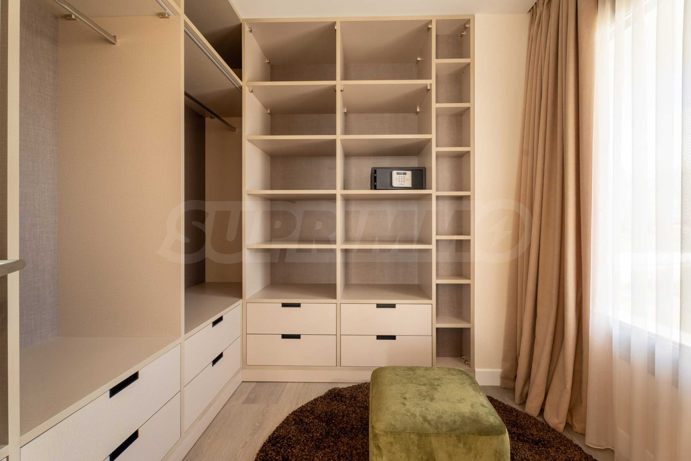 Na drugim piętrze o powierzchni 100m2 znajdują się trzy sypialnie i dwie łazienki. Główna sypialnia ma dostęp do oddzielnej łazienki i dużej garderoby. Do mieszkania przynależy również taras o powierzchni 16 m2, który można wykorzystać jako dodatkową przestrzeń do pracy, wypoczynku lub uprawiania sportu. Podłoga w sypialniach wykonana jest z dębowego parkietu. Wszystkie sypialnie posiadają panoramiczne okna, z których rozpościera się niesamowity widok na morze.