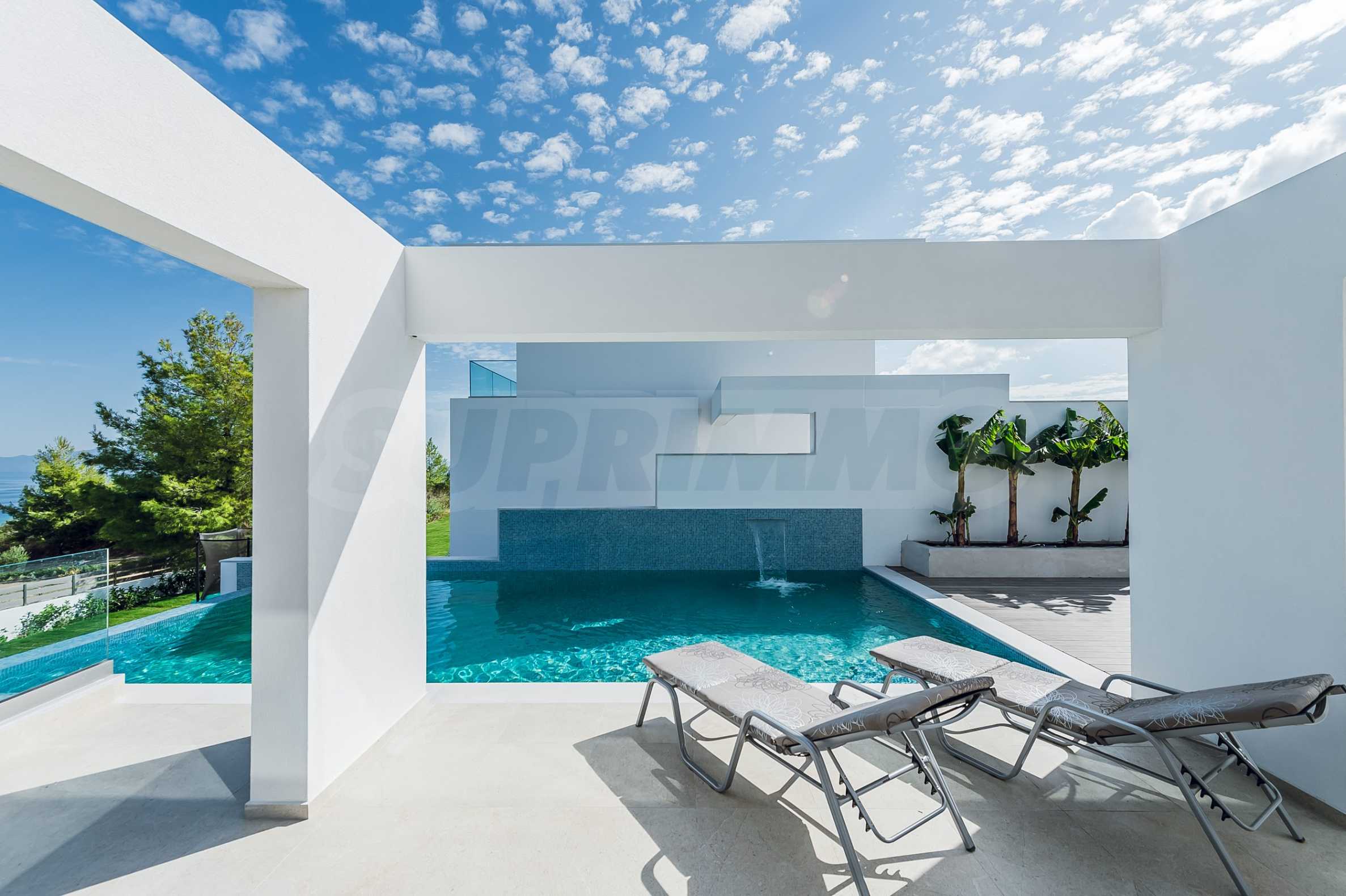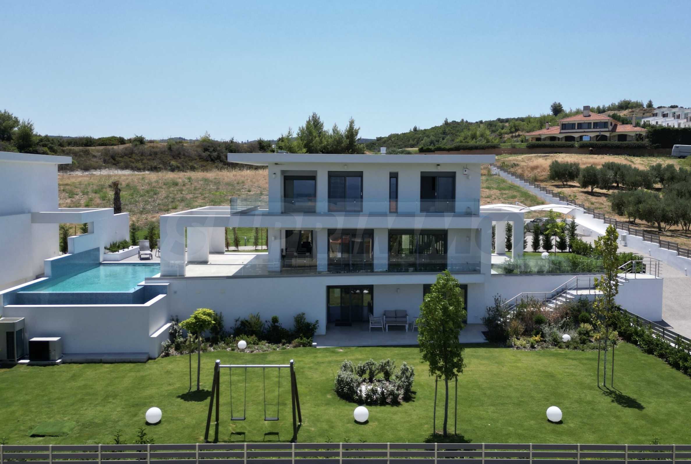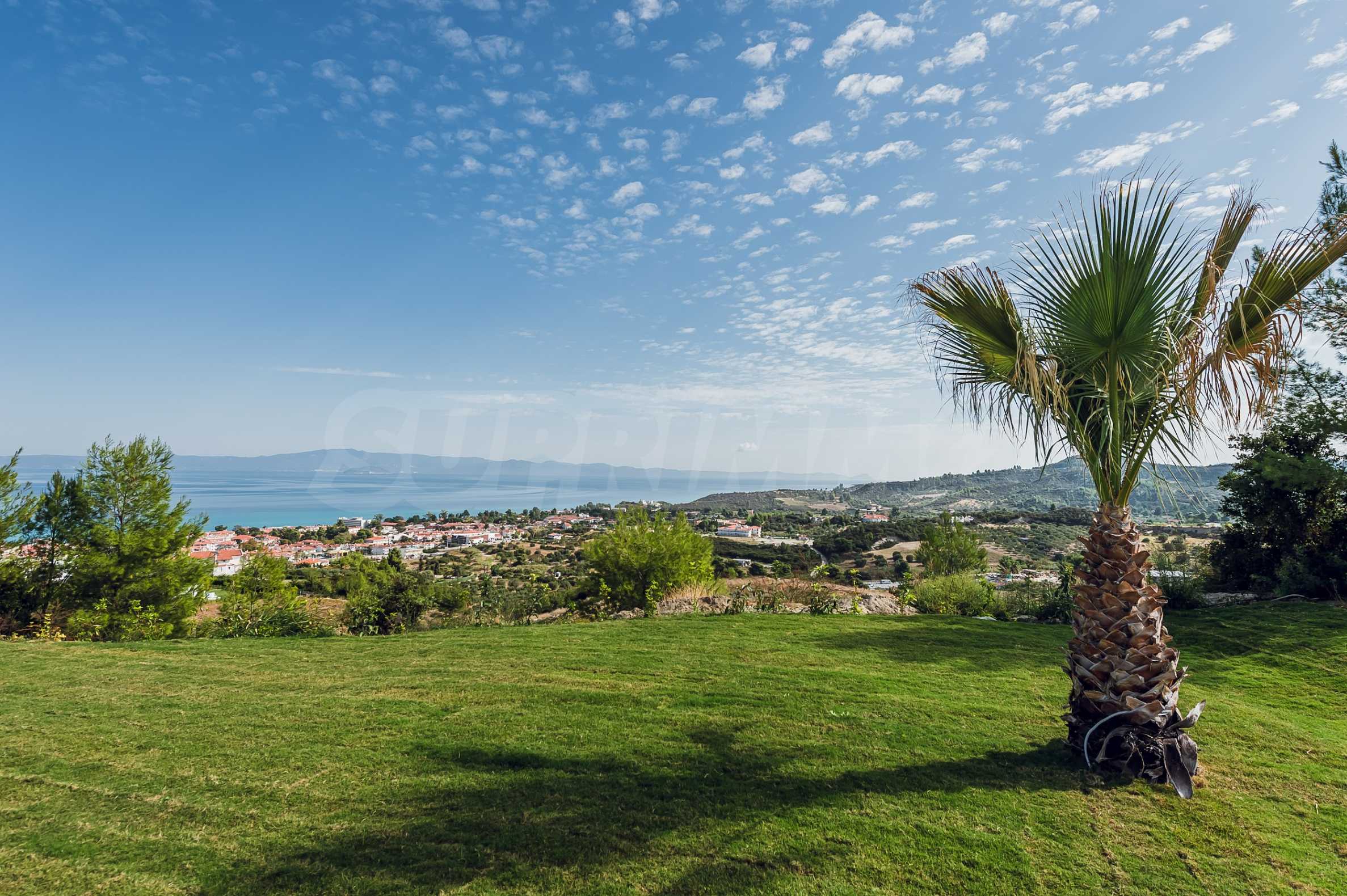 Ta willa jest doskonałą okazją do zamieszkania z rodziną w pobliżu najlepszych plaż Morza Egejskiego w Grecji, które zostały nagrodzone niebieskimi flagami za czystość. Sama rezydencja jest zbudowana na wzgórzu i ma duży przylegający dziedziniec. Okna wychodzą na turkusowe morze zatoki Toroneos i górę Athos.