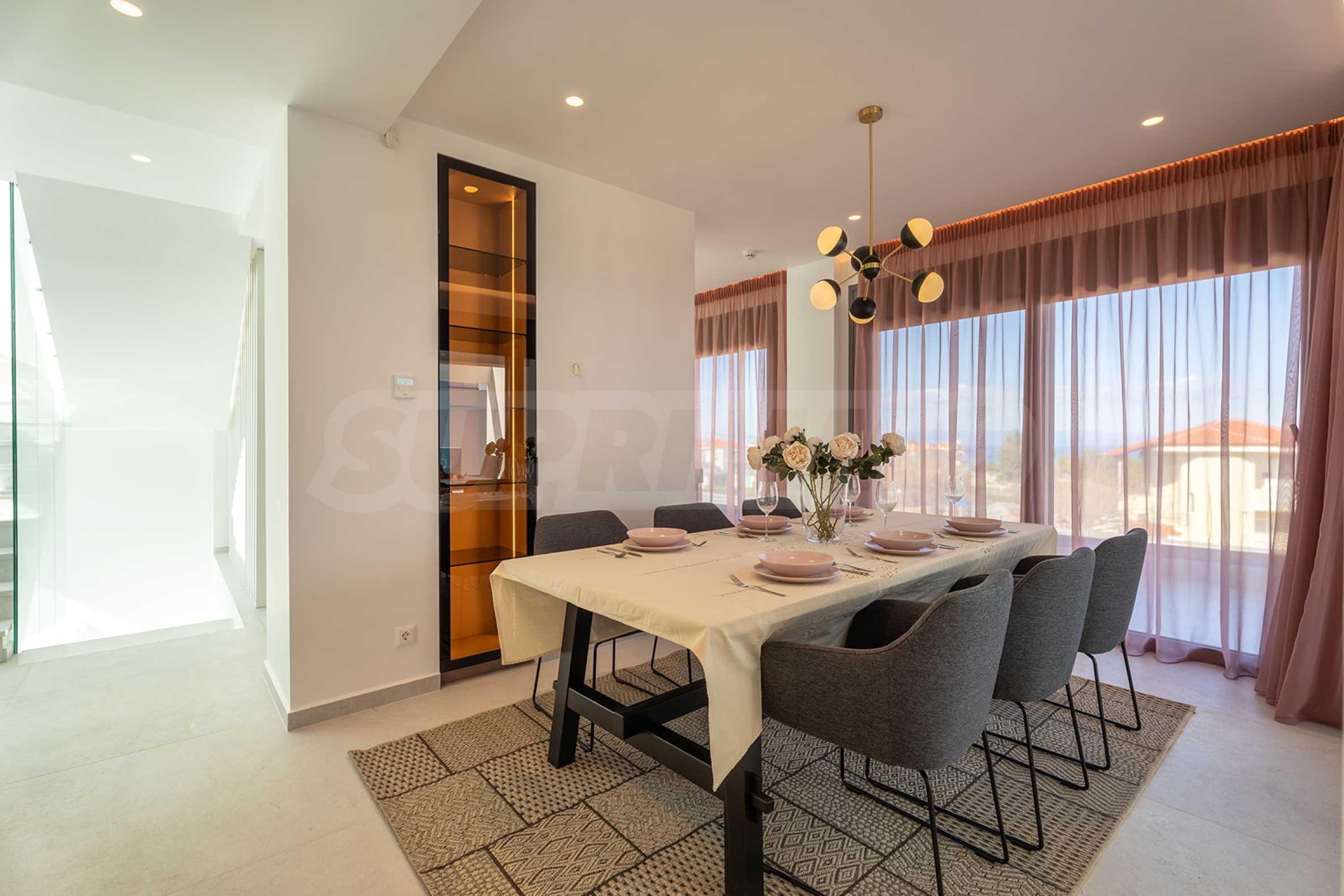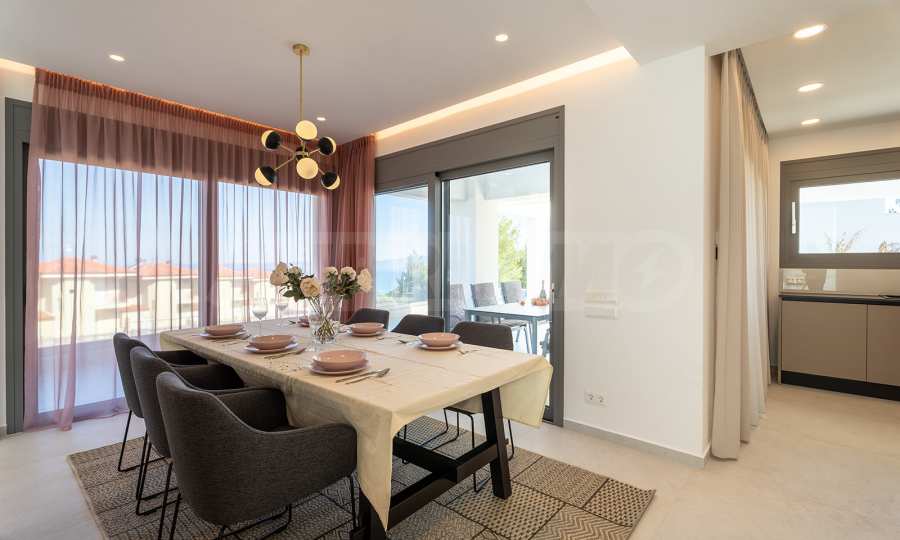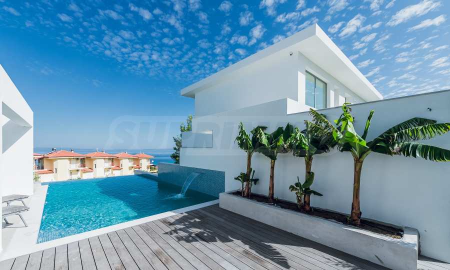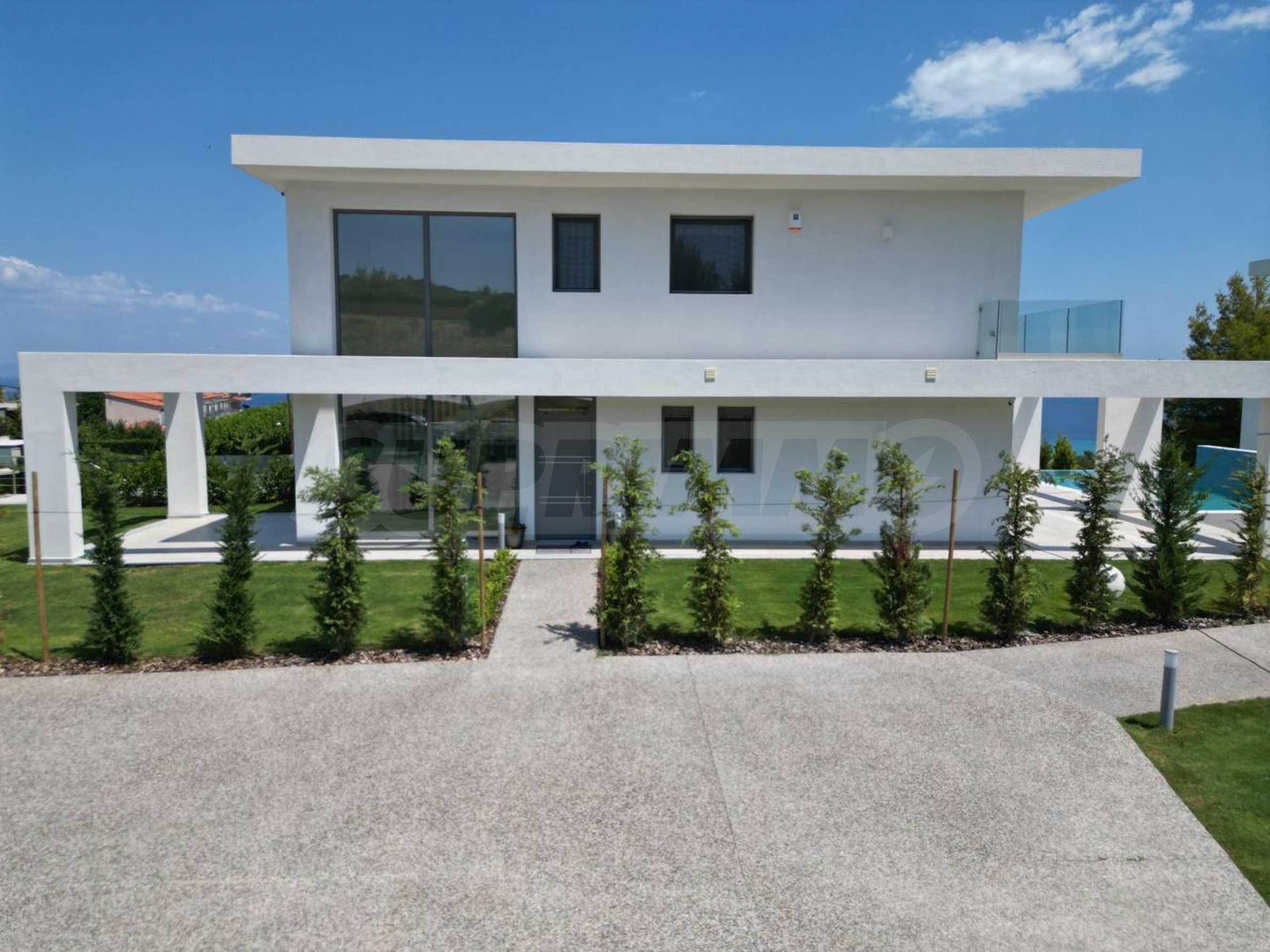 Ta willa jest doskonałą okazją do zamieszkania z rodziną w pobliżu najlepszych plaż Morza Egejskiego w Grecji, które zostały nagrodzone niebieskimi flagami za czystość. Sama rezydencja jest zbudowana na wzgórzu i ma duży przylegający dziedziniec. Okna wychodzą na turkusowe morze zatoki Toroneos i górę Athos.