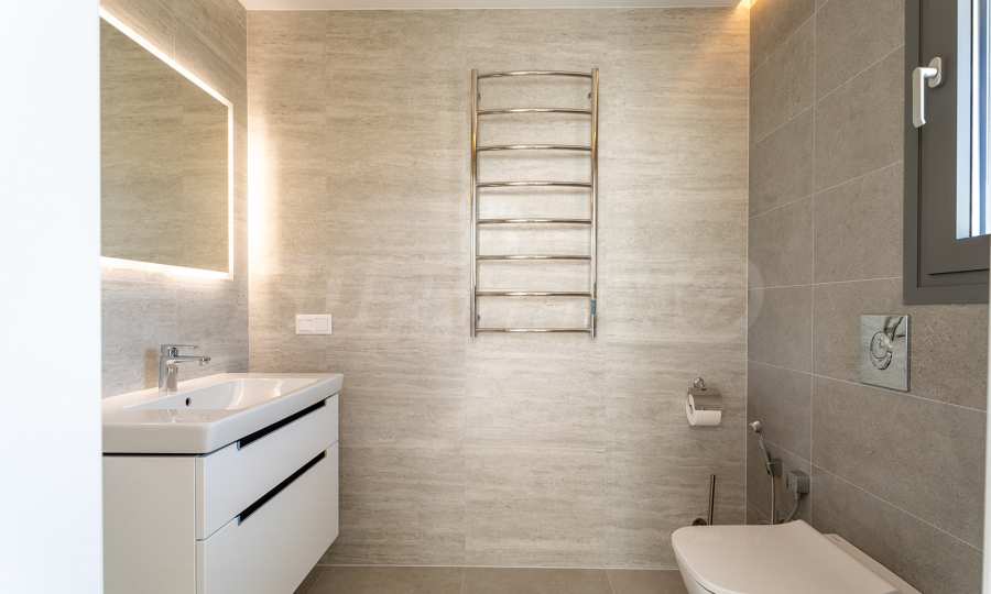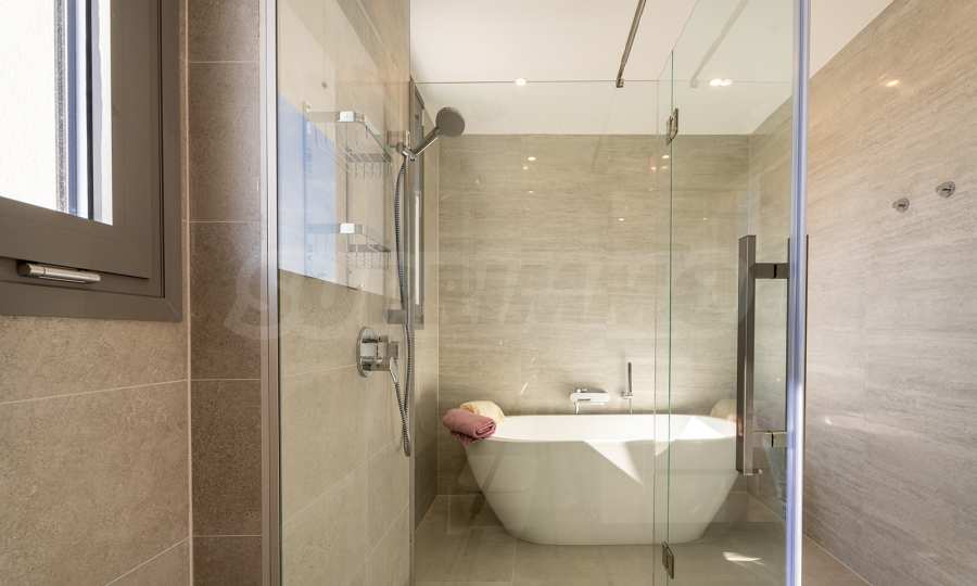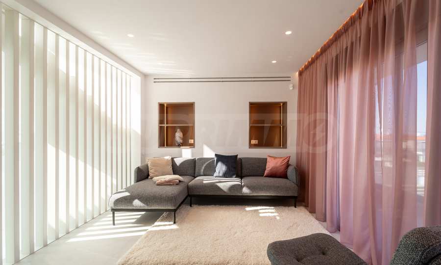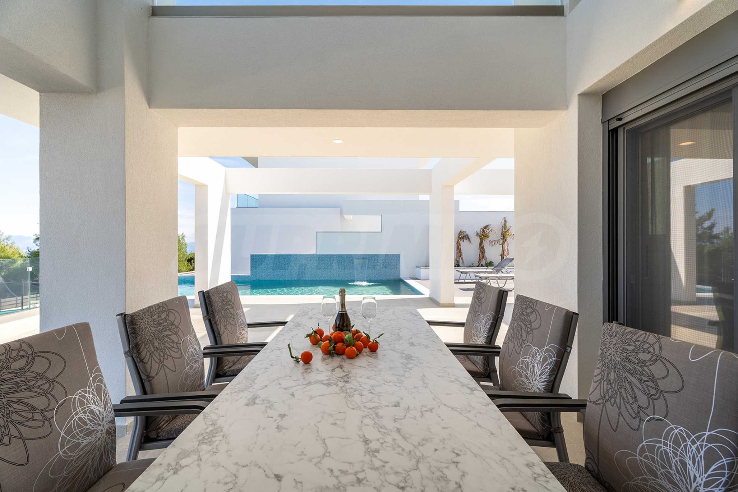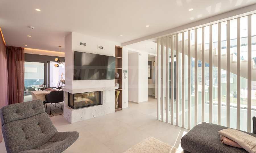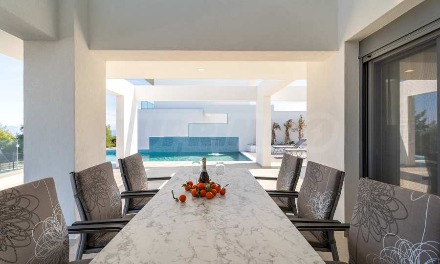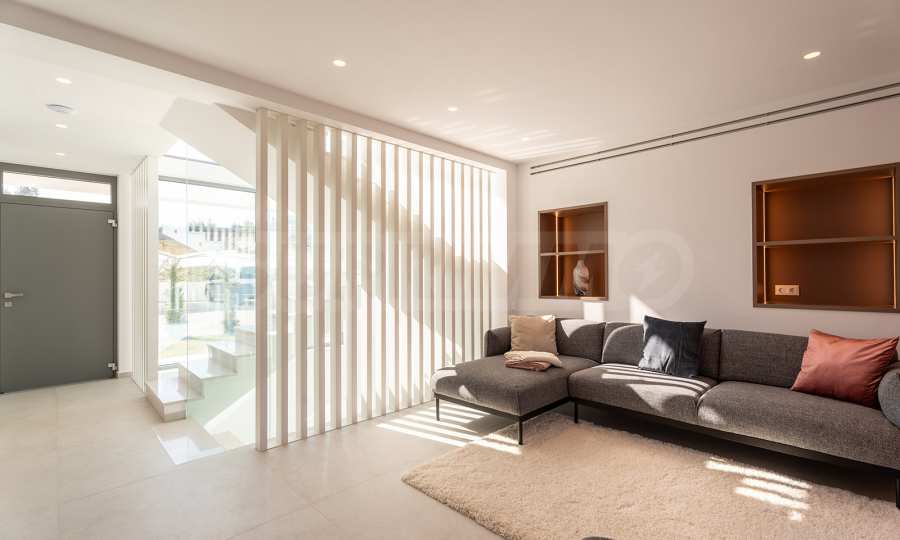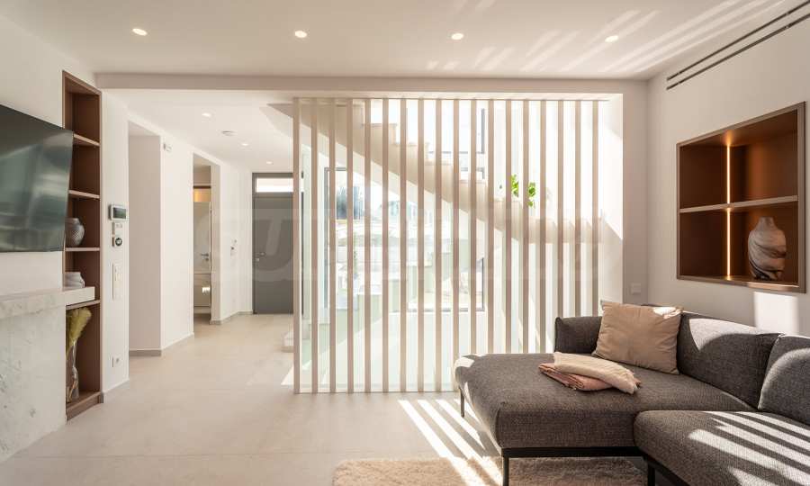 Obecność dużych funkcjonalnych werand, balkonów i zewnętrznych tarasów wokół domu pozwala w pełni wykorzystać i cieszyć się łagodnym śródziemnomorskim klimatem. Jasna neutralna paleta kolorów i naturalnych materiałów zapewnia komfort psychiczny i emocjonalny.