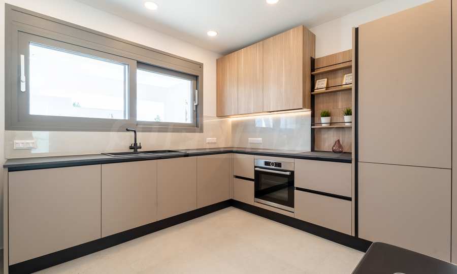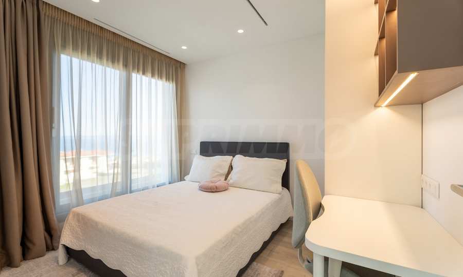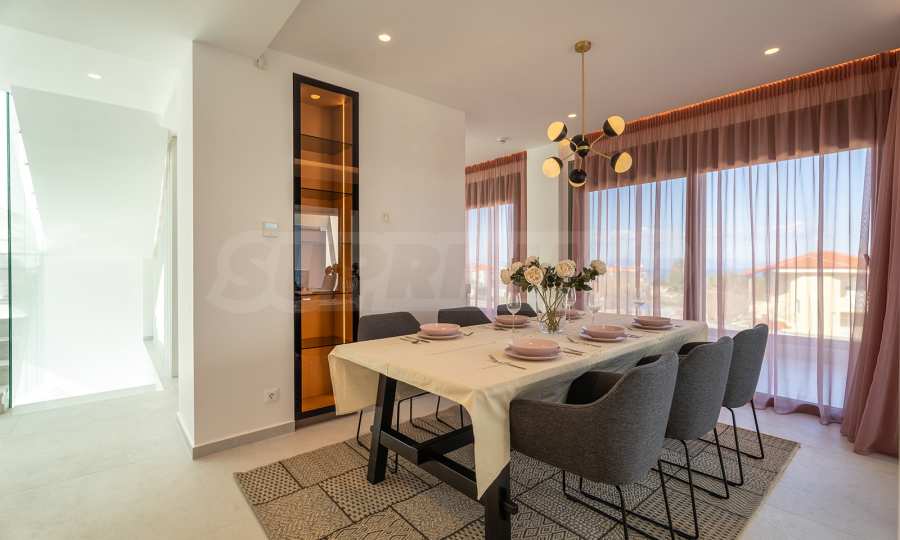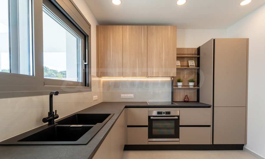 Kuchnia została zaprojektowana zgodnie z wszelkimi zasadami ergonomii. Jest wyposażony w najlepszy sprzęt i ma wystarczająco dużo miejsca. Po przygotowaniu ulubionego posiłku można wyjść na letni taras i zjeść śniadanie, ciesząc się widokiem na morze i góry.