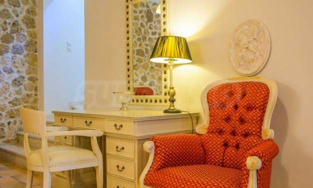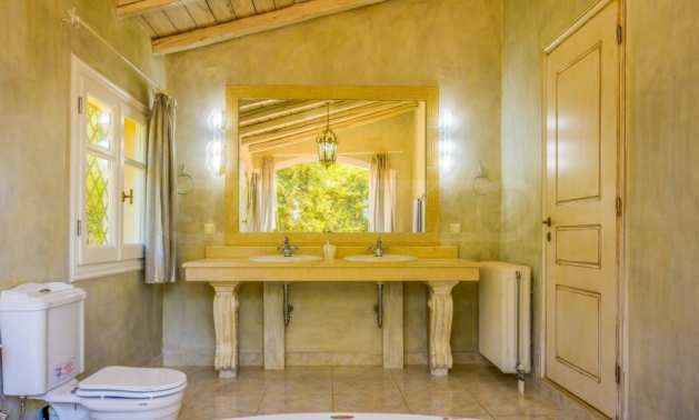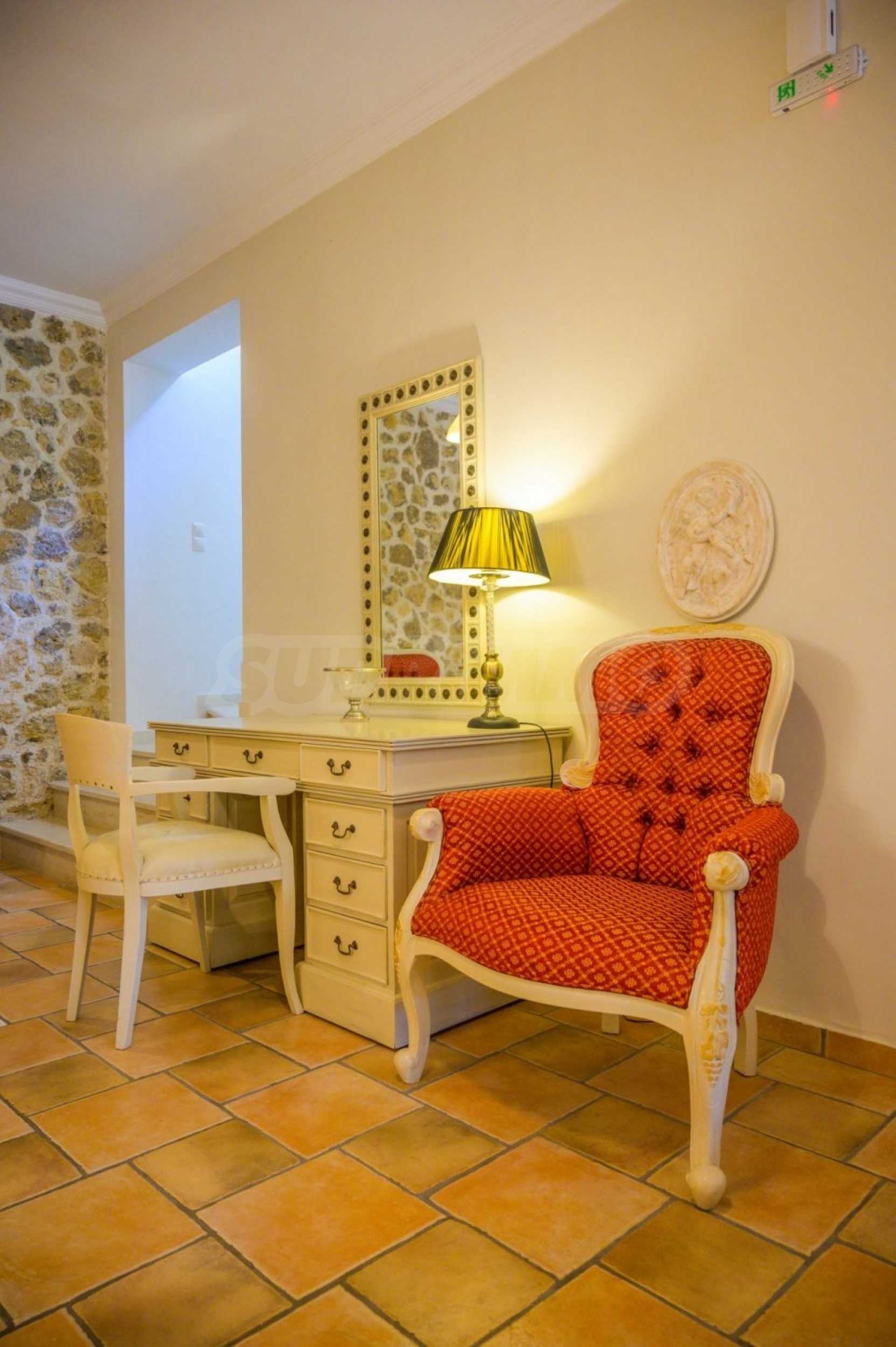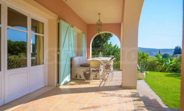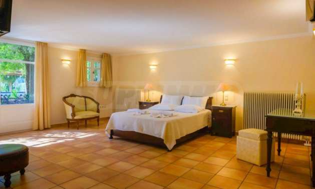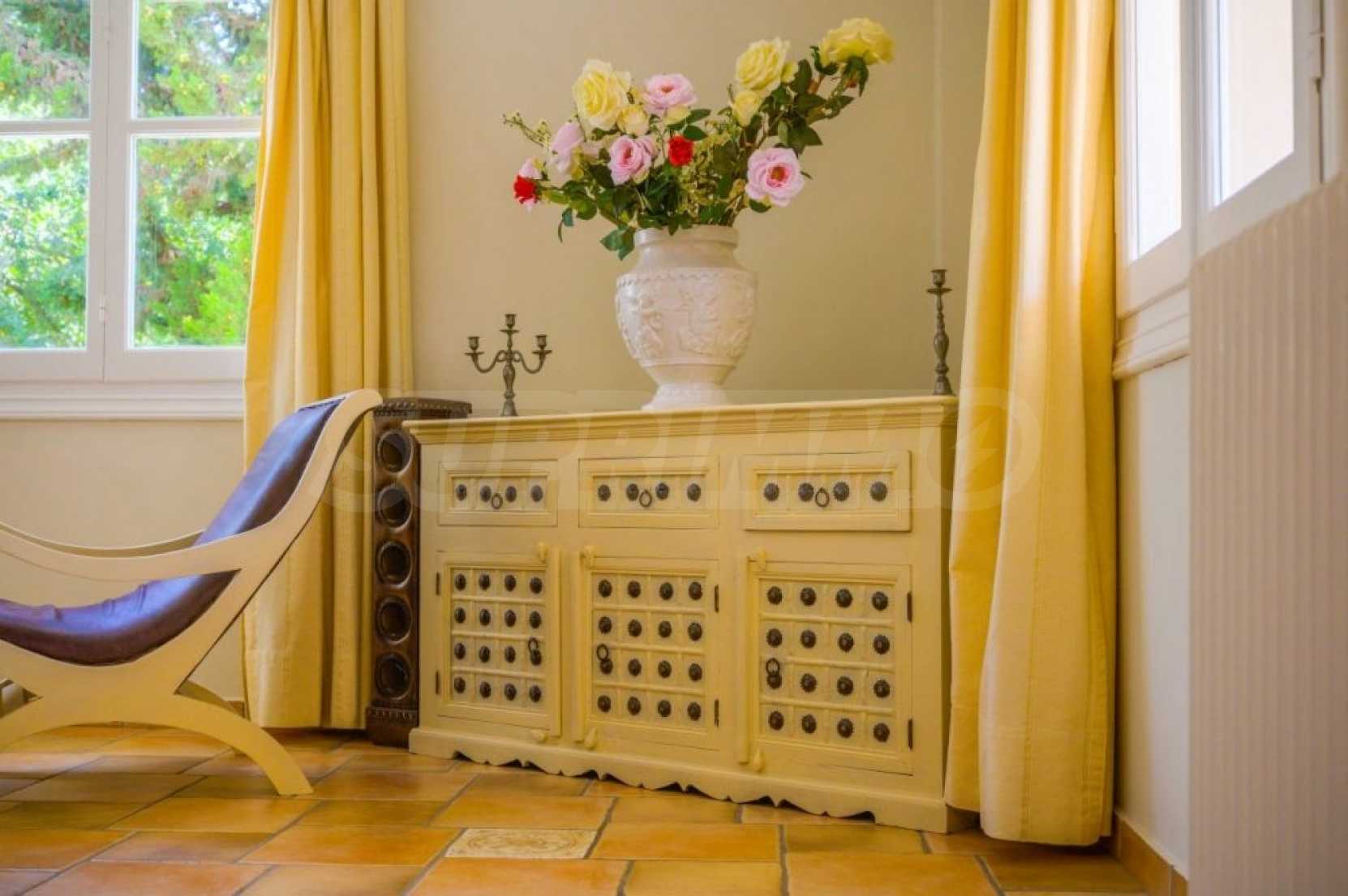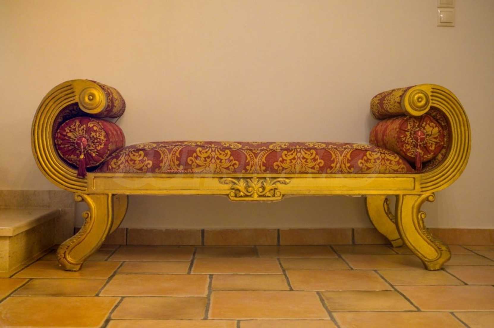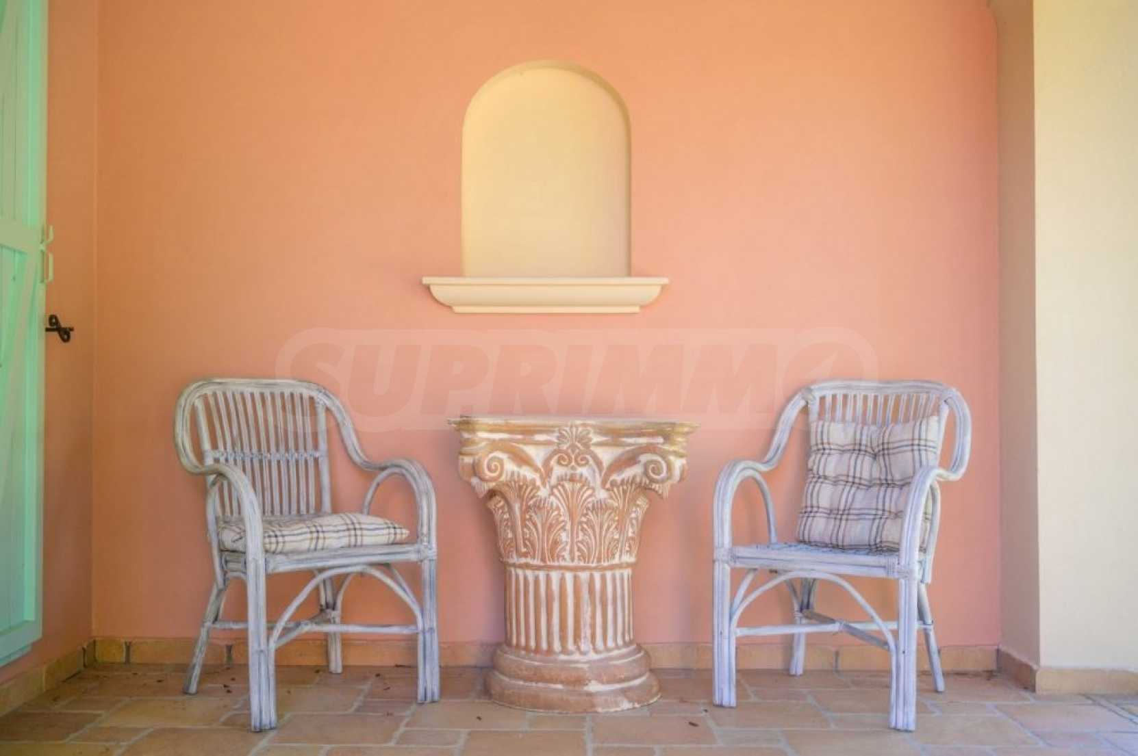 Willa położona jest na dwóch poziomach i składa się z 6 dużych prywatnych sypialni z wbudowanymi szafami, klimatyzacją i dostępem do tarasów. Na każdym piętrze otwarta kuchnia-jadalnia z kominkiem i wyjściem do ogrodu. Wyjątkowy czerwony salon i sala telewizyjna mogą zapewnić chwile relaksu młodszym i starszym. Poziomy są połączone wewnętrzną klatką schodową, ale można też wchodzić na nie oddzielnie.