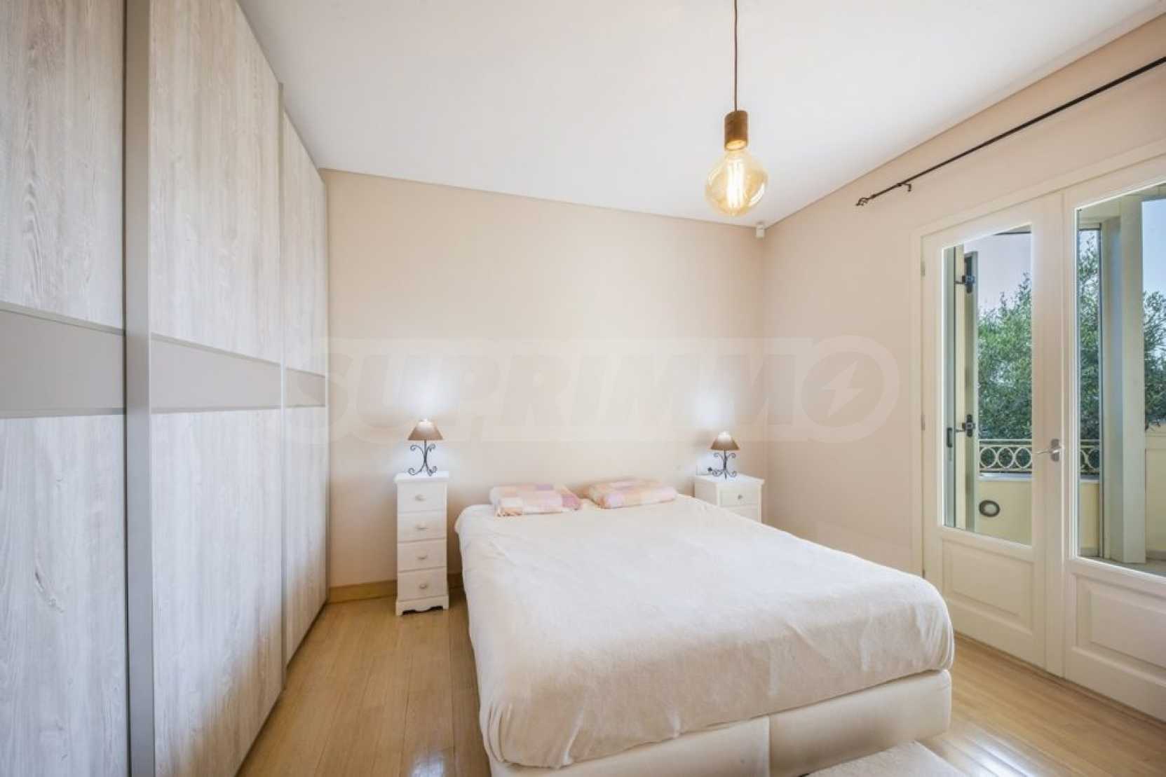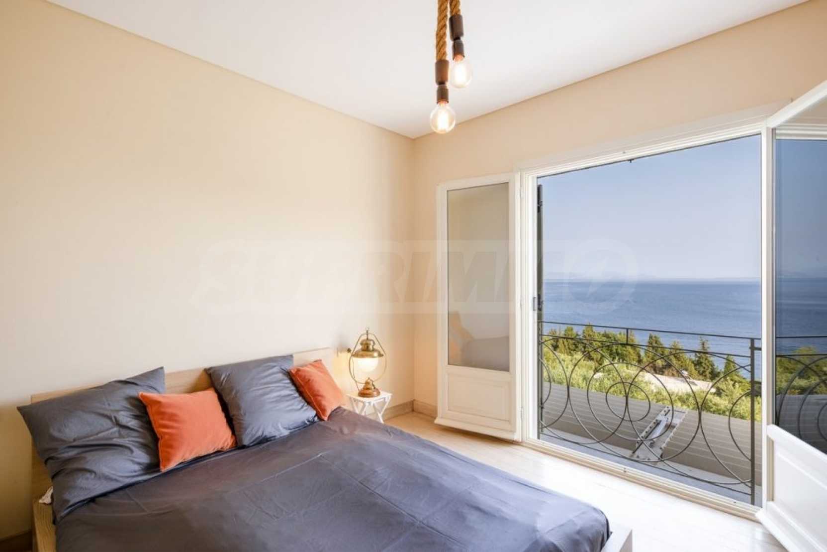 Pierwsze piętro składa się z korytarza, który prowadzi do dwóch sypialni, każda z własną łazienką i prysznicem. Obie sypialnie mają drzwi balkonowe z widokiem na morze. Na tym piętrze znajduje się również drugi pokój, który może pełnić funkcję pokoju dziecięcego, gabinetu lub magazynu.