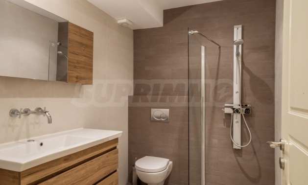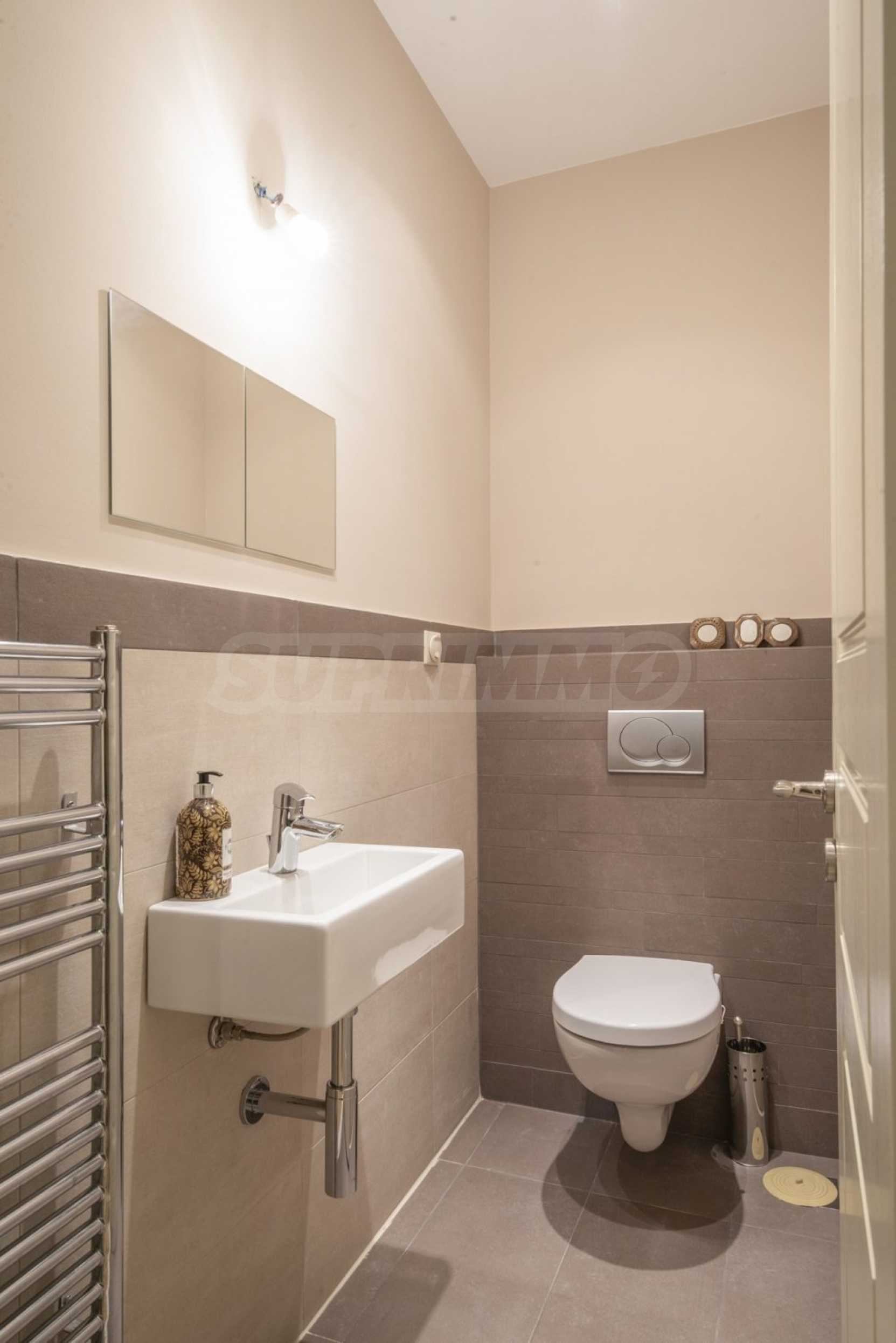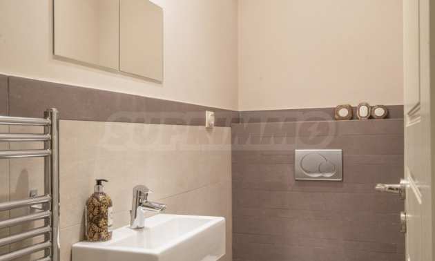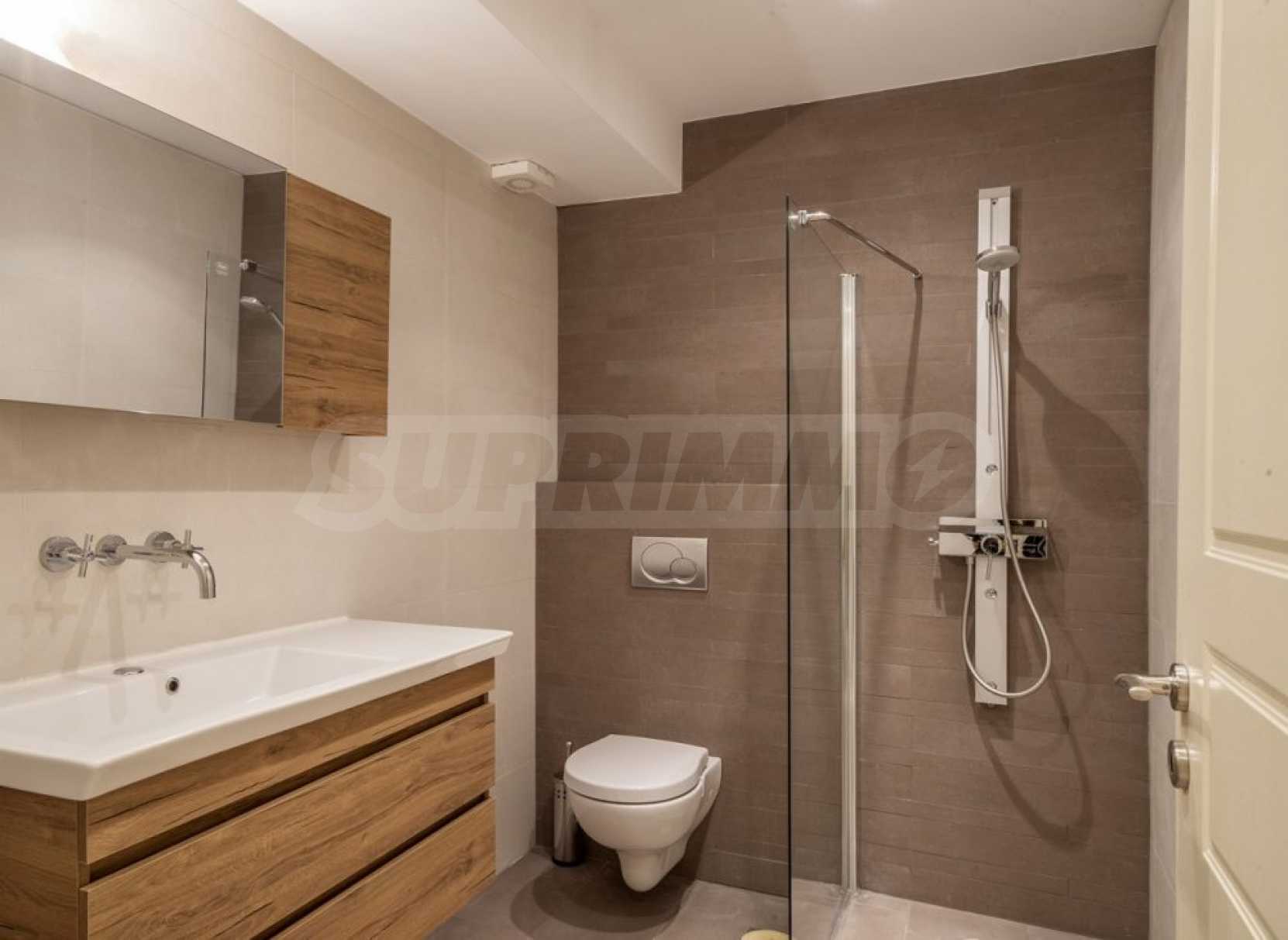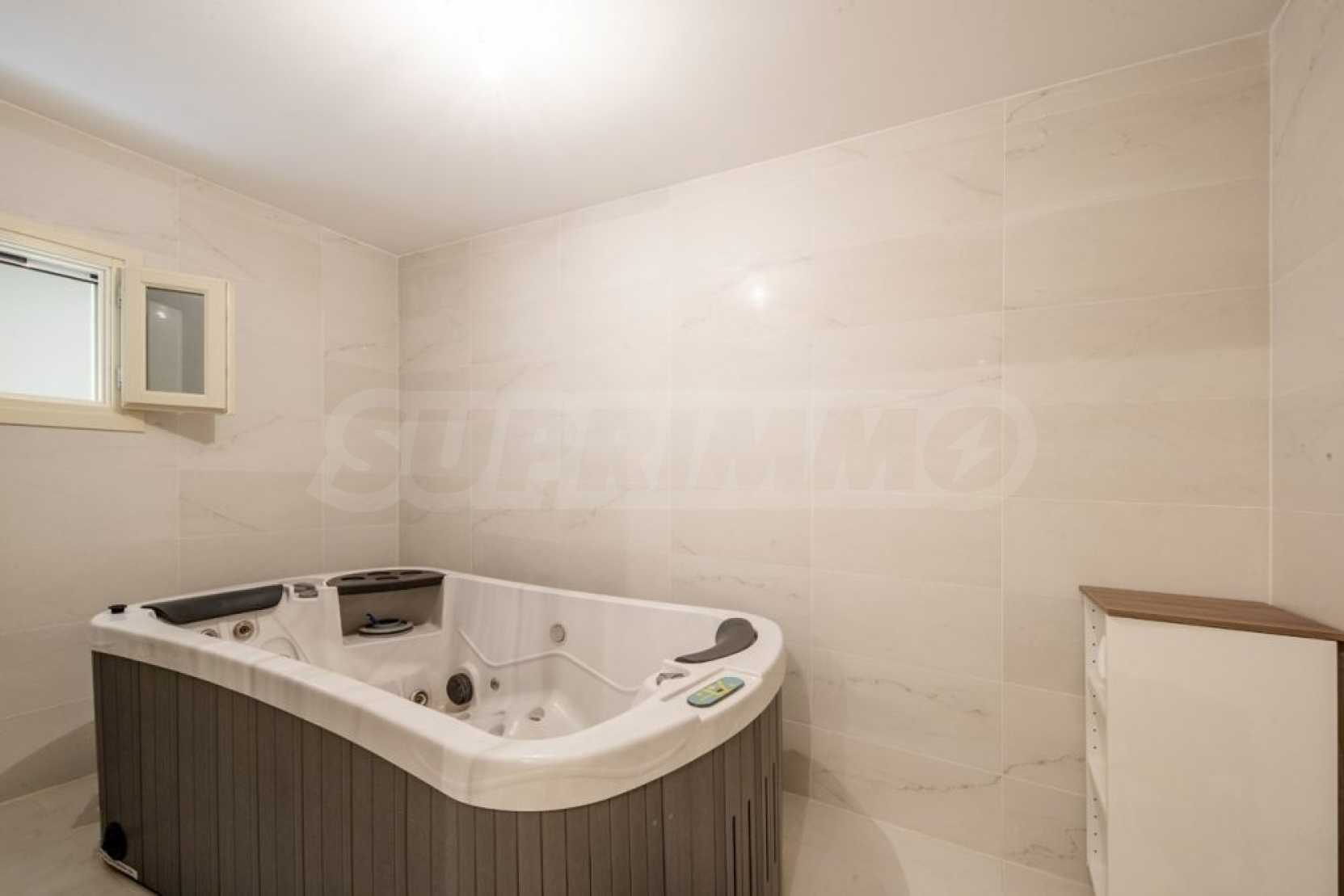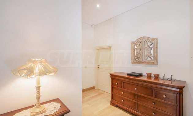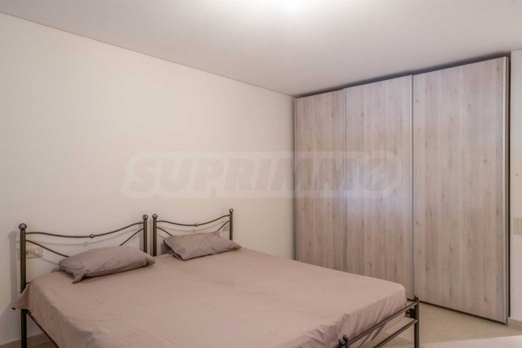 Na poziomie basenu znajduje się kolejny samodzielny apartament, który składa się z pokoju dziennego, jednej sypialni i jednej łazienki.
