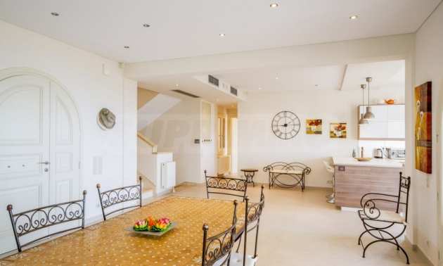 Wybrukowany podjazd prowadzi nas na parter i główne wejście, które wita nas w przestronnym i jasnym salonie/kuchni/jadalni na otwartym planie z kominkiem zamontowanym na suficie i jedną sypialnią z łazienką z prysznicem. Duże francuskie drzwi prowadzą nas na zadaszony balkon, który jest idealnym miejscem na chwile relaksu z rodziną i przyjaciółmi, z widokiem na krystalicznie czystą wodę. Ogromnym atutem nieruchomości jest jedyna w swoim rodzaju automatyczna pergola bioklimatyczna z czujnikami deszczu, którą można otwierać lub zamykać zgodnie z życzeniem właściciela.