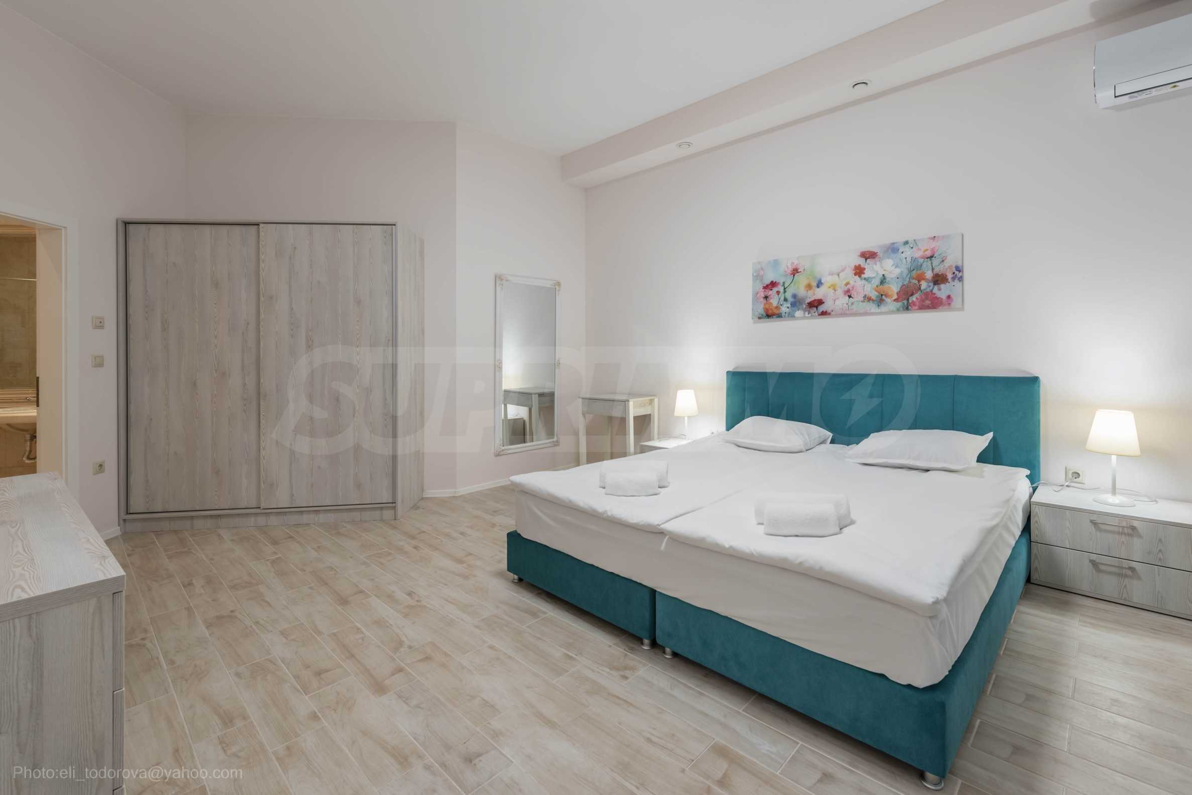 W kompleksie znajduje się czynna przez cały rok restauracja, spa/basen kryty, jacuzzi na świeżym powietrzu i centrum fitness, portier i ochrona, monitoring wideo. Latem istnieje możliwość bezpłatnego korzystania z basenu zewnętrznego i plaży, parasola i leżaka. Restauracja a la carte kompleksu działa przez cały rok i oferuje swoim gościom bogate menu oraz wybrany wybór win.