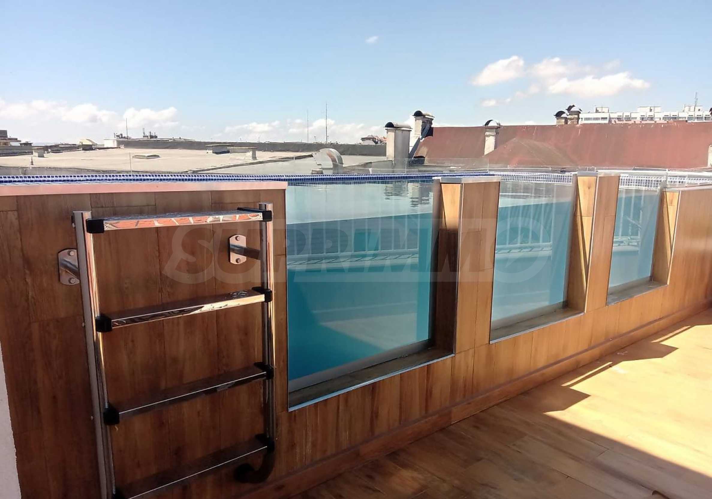 Budynek jest pięciokondygnacyjny, z aktem 16, a na 6 piętrze znajduje się obszerny taras na dachu z odkrytym basenem i strefą relaksu.