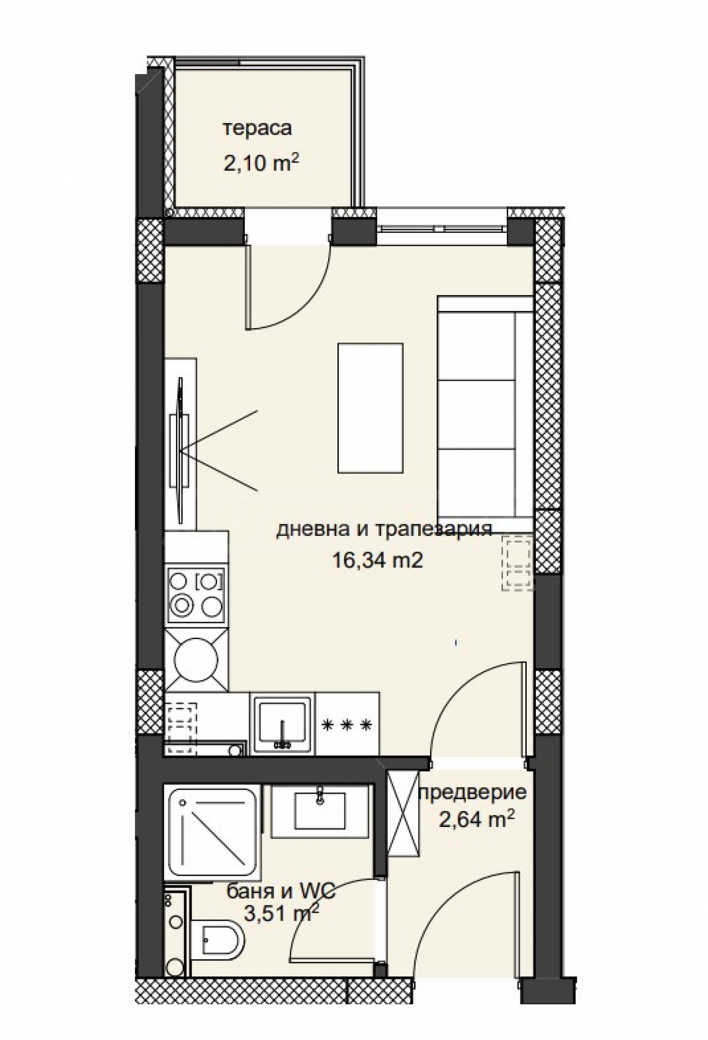 Prezentujemy komfortowe studio w nowo wybudowanym kompleksie w dzielnicy "Hristo Smirnenski" w Płowdiwie. Lokalizacja budynku jest bardzo dogodna - w bezpośrednim sąsiedztwie znajduje się Baza Wioślarska, a także szkoły, przedszkola, nowoczesne placówki medyczne. Łatwo i szybko można stąd dojechać do centrum miasta, głównych bulwarów oraz autostrady Trakia.