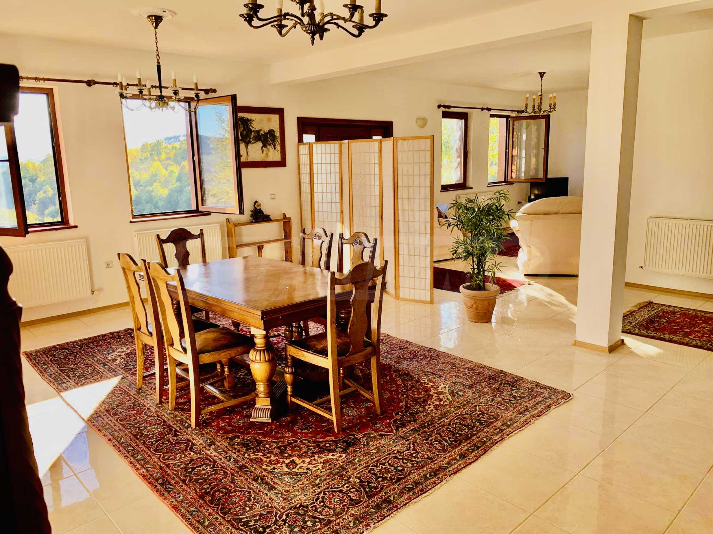 Budynek ma powierzchnię zabudowaną 274 m2, zbudowany w wysokim standardzie jakości, z ekspozycją wschód-południe z pięknym panoramicznym widokiem na Bałkany. Nieruchomość oferuje zagospodarowany i prywatny ogród na kilku poziomach, z miejscami parkingowymi, oczyszczalnią ścieków, własnym ujęciem wody z filtrem i lokalnym ogrzewaniem.