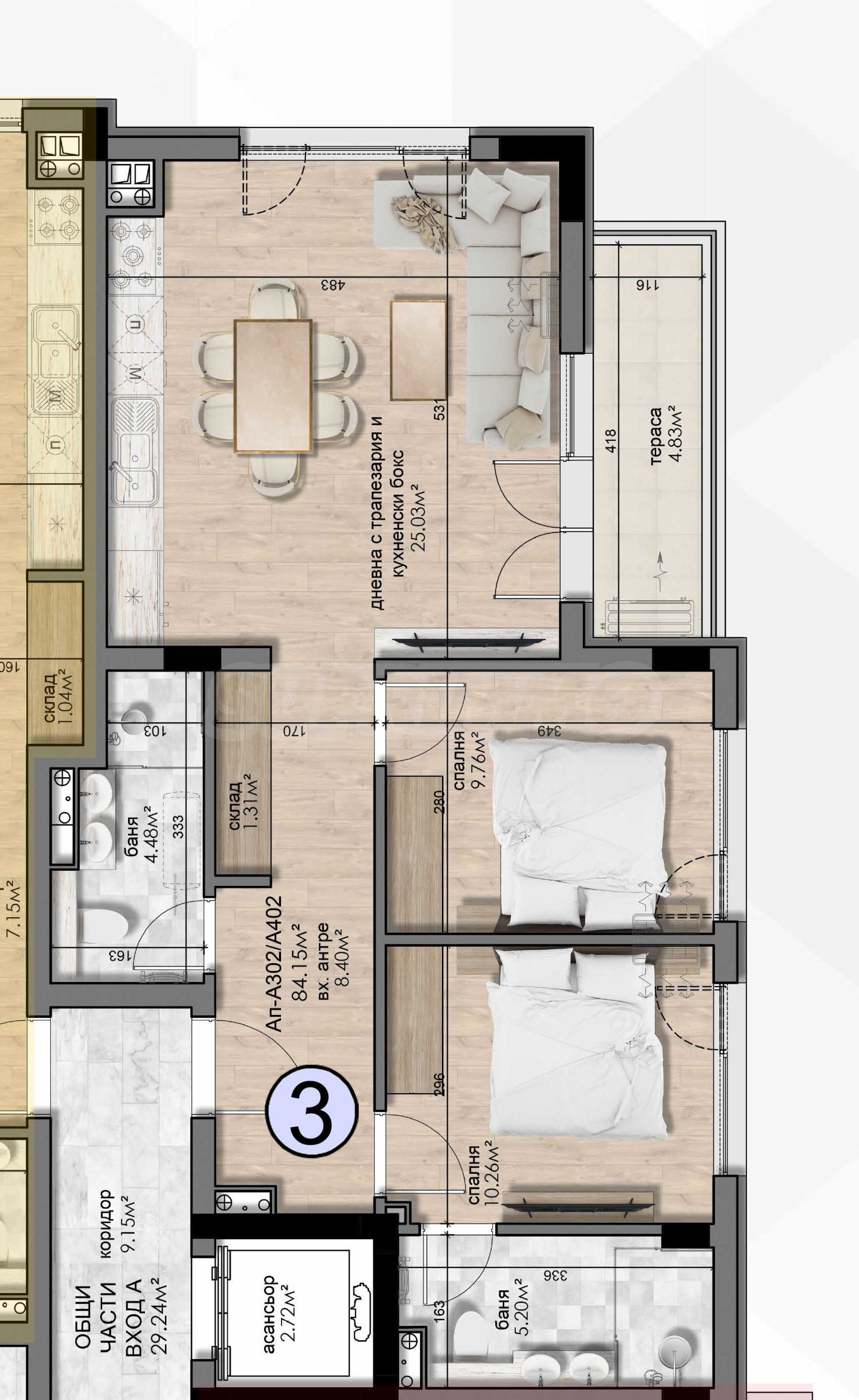 Trzypokojowe mieszkanie o powierzchni mieszkalnej 84,14 mkw.