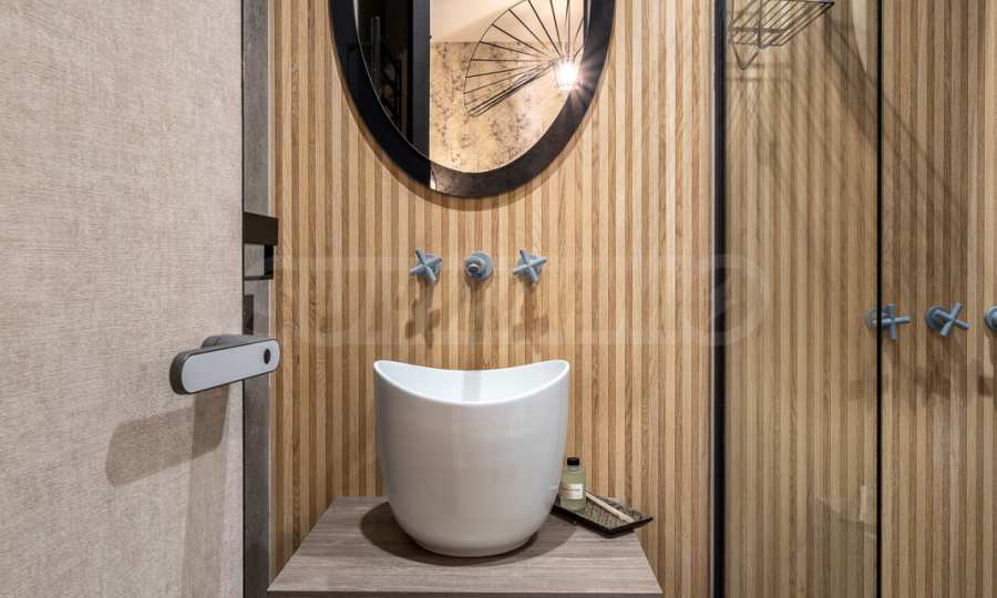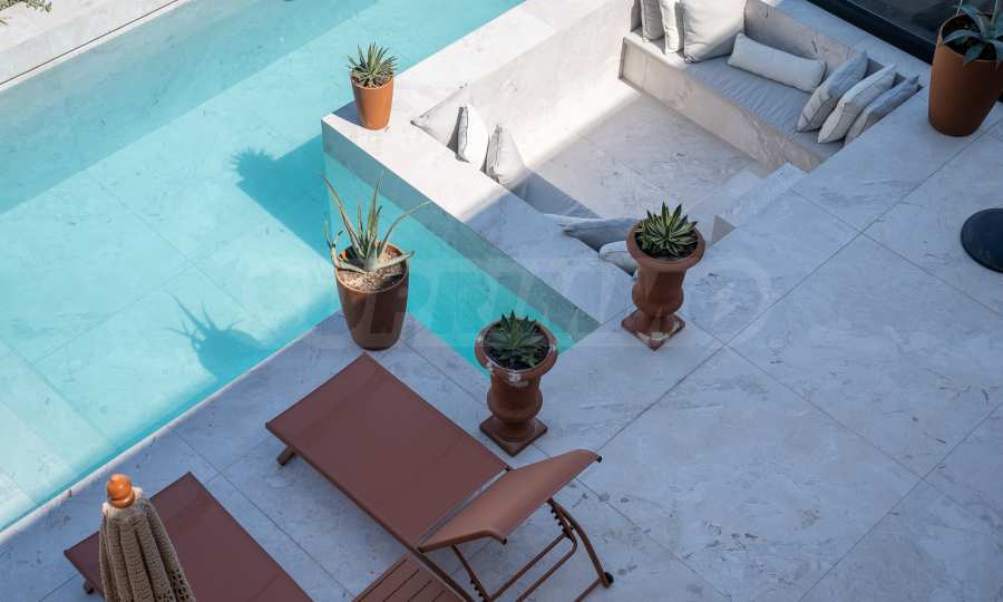 Willa charakteryzuje się nowoczesną, minimalistyczną estetyką połączoną z nutami stylu śródziemnomorskiego. Dom został zaprojektowany jako harmonijna przestrzeń życiowa, odpowiednia nie tylko na lato, ale i na każdą inną porę roku. Ma kompaktowe wymiary, a jednocześnie zapewnia maksymalnie użyteczną i komfortową przestrzeń mieszkalną. Do jego budowy wykorzystano wysokiej jakości, nowoczesne materiały najwyższej klasy, a także nowoczesne meble i sprzęt AGD.