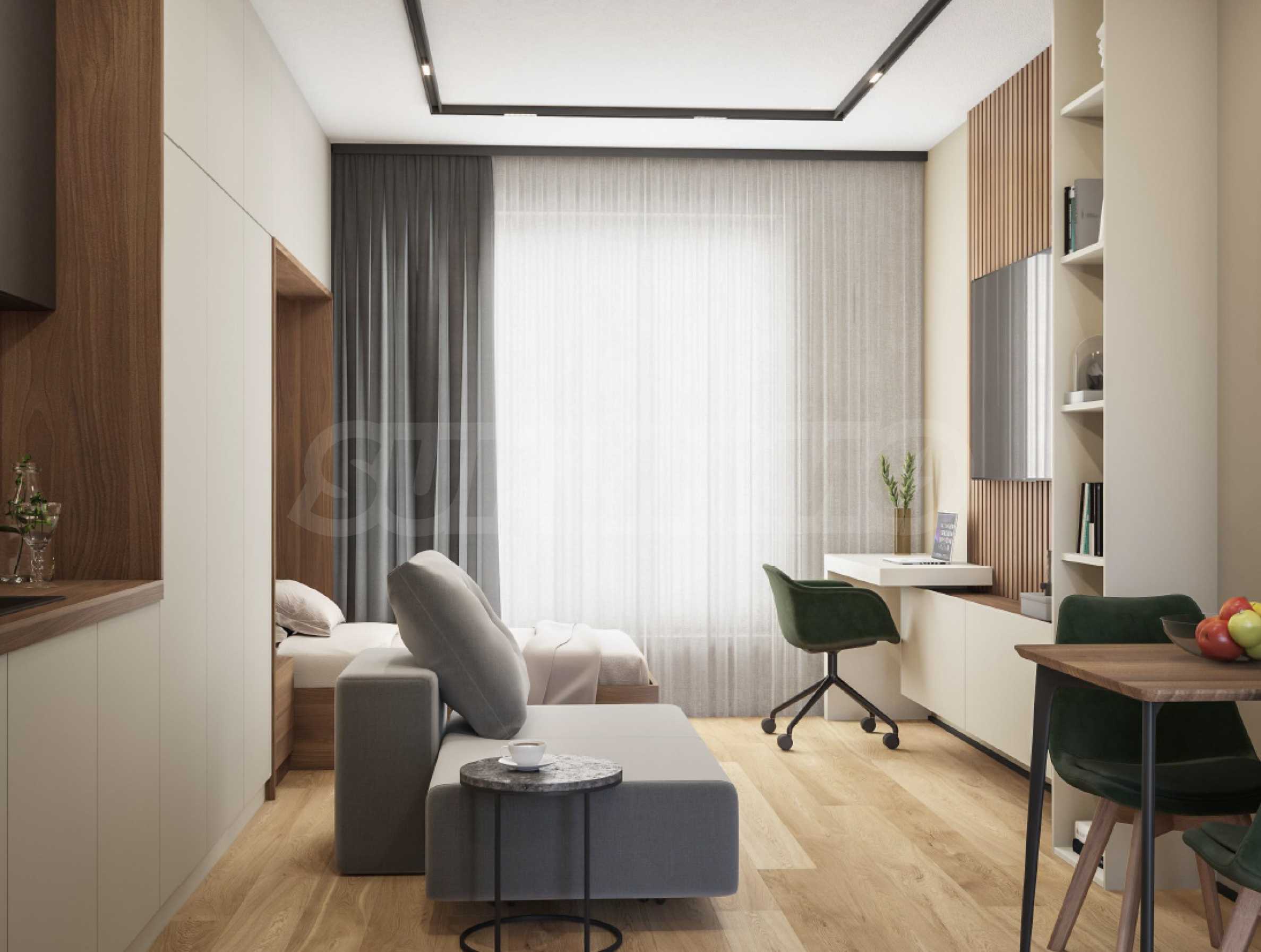 Oferujemy na sprzedaż dwupokojowe mieszkanie typu studio, znajdujące się w budynku, który jest pierwszym projektem inwestycyjnym w Bułgarii, który oferuje umeblowane mieszkania z gwarantowanym miesięcznym czynszem. Właściciele otrzymują 5% rocznego zysku przez pierwsze 2 lata . W tym okresie nie zajmują się zarządzaniem i utrzymaniem nieruchomości, higieną, zatrudnieniem i zapewnieniem przyjemnej atmosfery dla lokatorów.