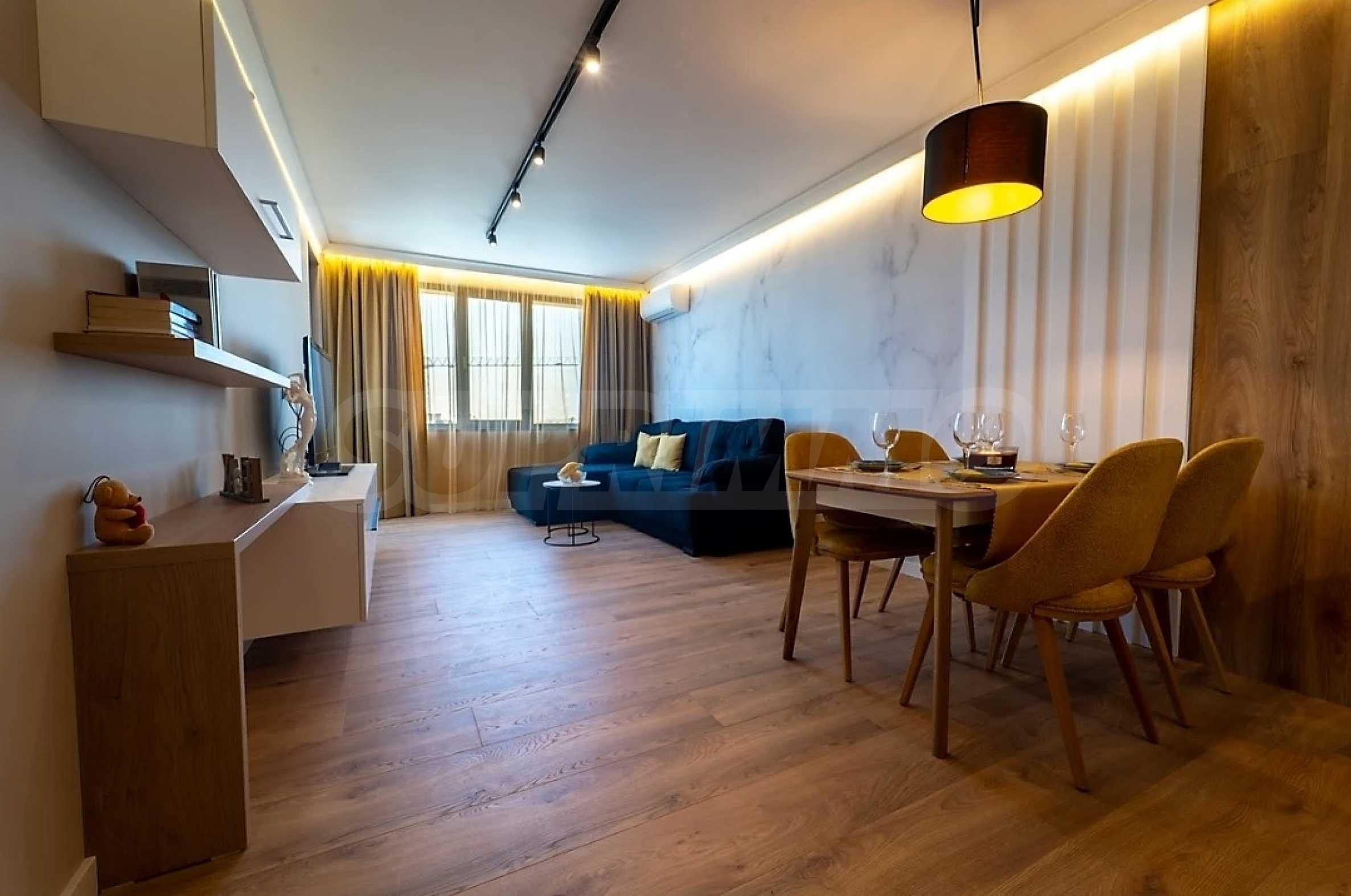 Prezentujemy Państwu ekskluzywnie umeblowane mieszkanie ze wszystkim, czego Państwo potrzebują, na wynajem w luksusowym nowym budynku w najlepszej dzielnicy Warny - „Briz”.