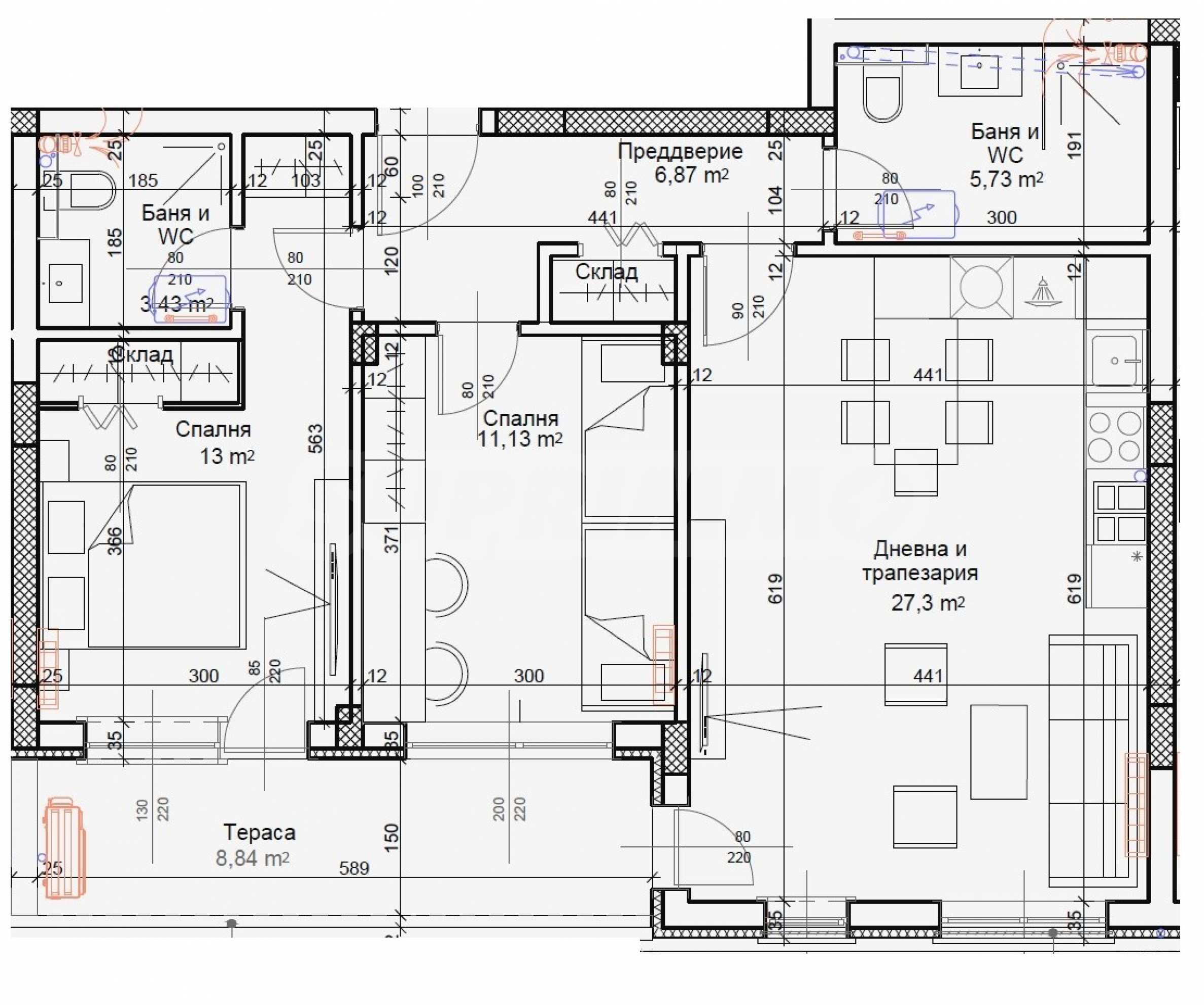 Prezentujemy trzypokojowe mieszkanie w nowym kompleksie mieszkaniowym, w najbardziej zielonej części Płowdiwu - dzielnicy „Ostromila”.