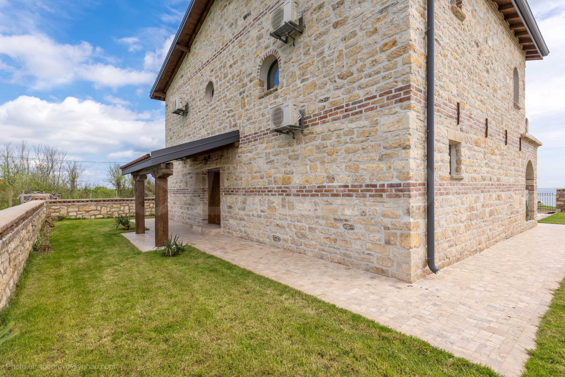 Ten nowy, kamienny dom to prawdziwa perełka, ukończona w 2023 roku z dbałością o każdy szczegół. Położona pośród naturalnego piękna skalistego wybrzeża w Tyulenovo, willa oferuje unikalne połączenie nowoczesnego komfortu i autentycznej atmosfery. Projekt miał na celu zachowanie harmonii i estetyki naturalnego środowiska, wykorzystując cegły i naturalne materiały, takie jak kamień i lite drewno.