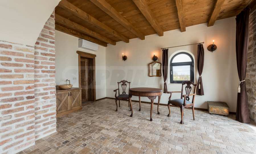 Willa ma prostą, a zarazem wyrazistą formę, która przypomina fortecę i idealnie wpisuje się w otoczenie. Oferuje możliwość połączenia nowoczesnego komfortu i luksusu z ponadczasową, historyczną wartością w wyjątkowej symbiozie. Wyjątkowe detale, które podkreślają historyczną wartość nieruchomości, to m.in. onyksowa umywalka w sypialni głównej oraz detale z czasów rzymskich w całym obiekcie.