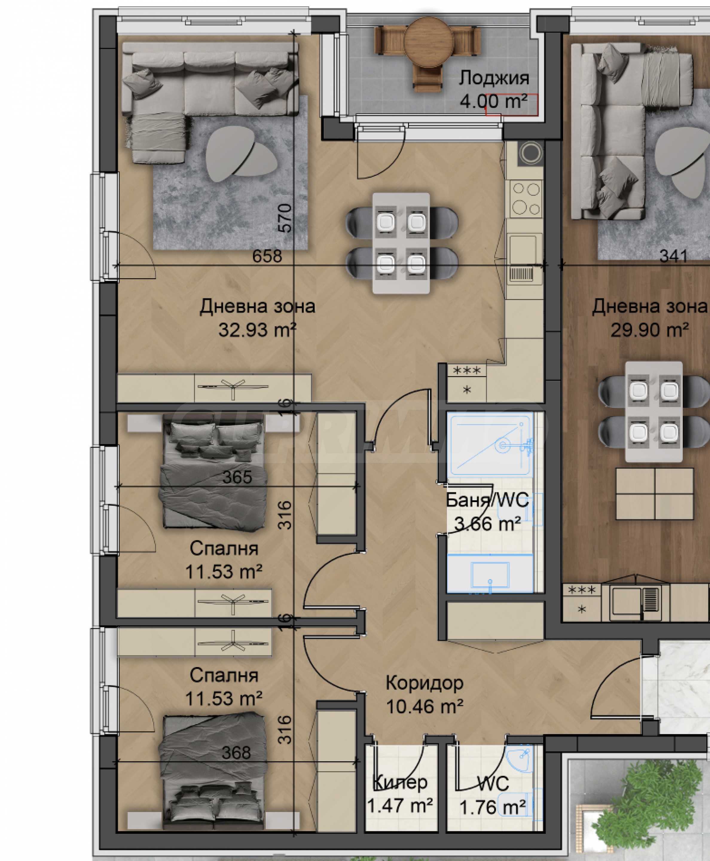 Prezentujemy dwupokojowe mieszkanie w nowym kompleksie, położonym przy głównej ulicy w mieście Panagyurishte, naprzeciwko jednego z najnowocześniejszych szpitali na Bałkanach - Uni Hospital, w pobliżu majestatycznej Srednej Gory i 5 minut od centrum miasta. Kompleks składa się z wielofunkcyjnego budynku i parku handlowego.