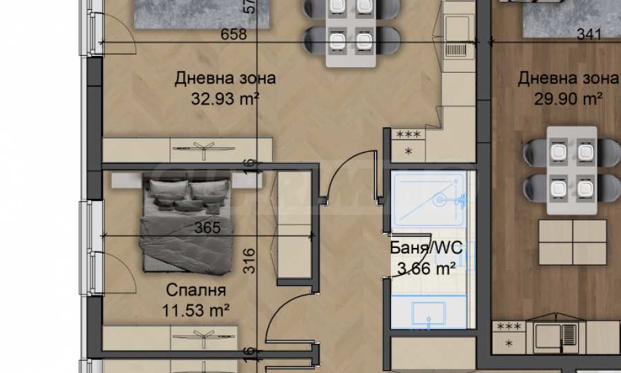 Mieszkanie jest wynajmowane w stanie wykończonym zgodnie z bułgarskimi normami budowlanymi.