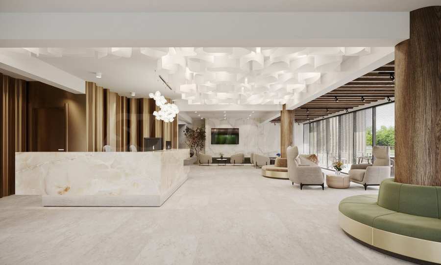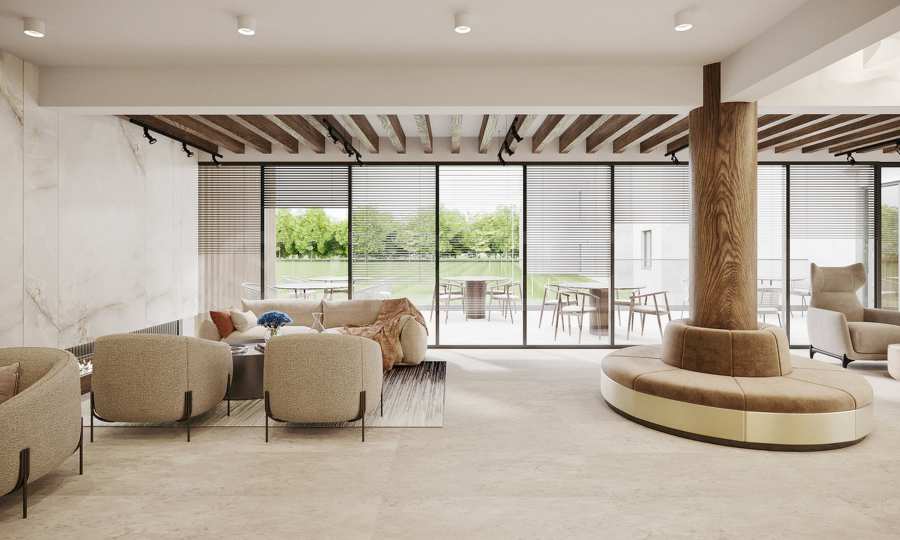 Wizję architektoniczną podkreślają luksusowo zaprojektowane przestrzenie wspólne z windami KONE, a mieszkańcy będą mieli dostęp do restauracji marek premium, włoskiej kawiarni, przechowalni sprzętu narciarskiego, ultramodernego centrum odnowy biologicznej i SPA, w którym znajdą się sauny wewnętrzne i zewnętrzne, mały basen z dyfuzorami, łaźnia parowa i pokoje masażu, a także centrum fitness ze sprzętem marki Kettler i Tehnogym.