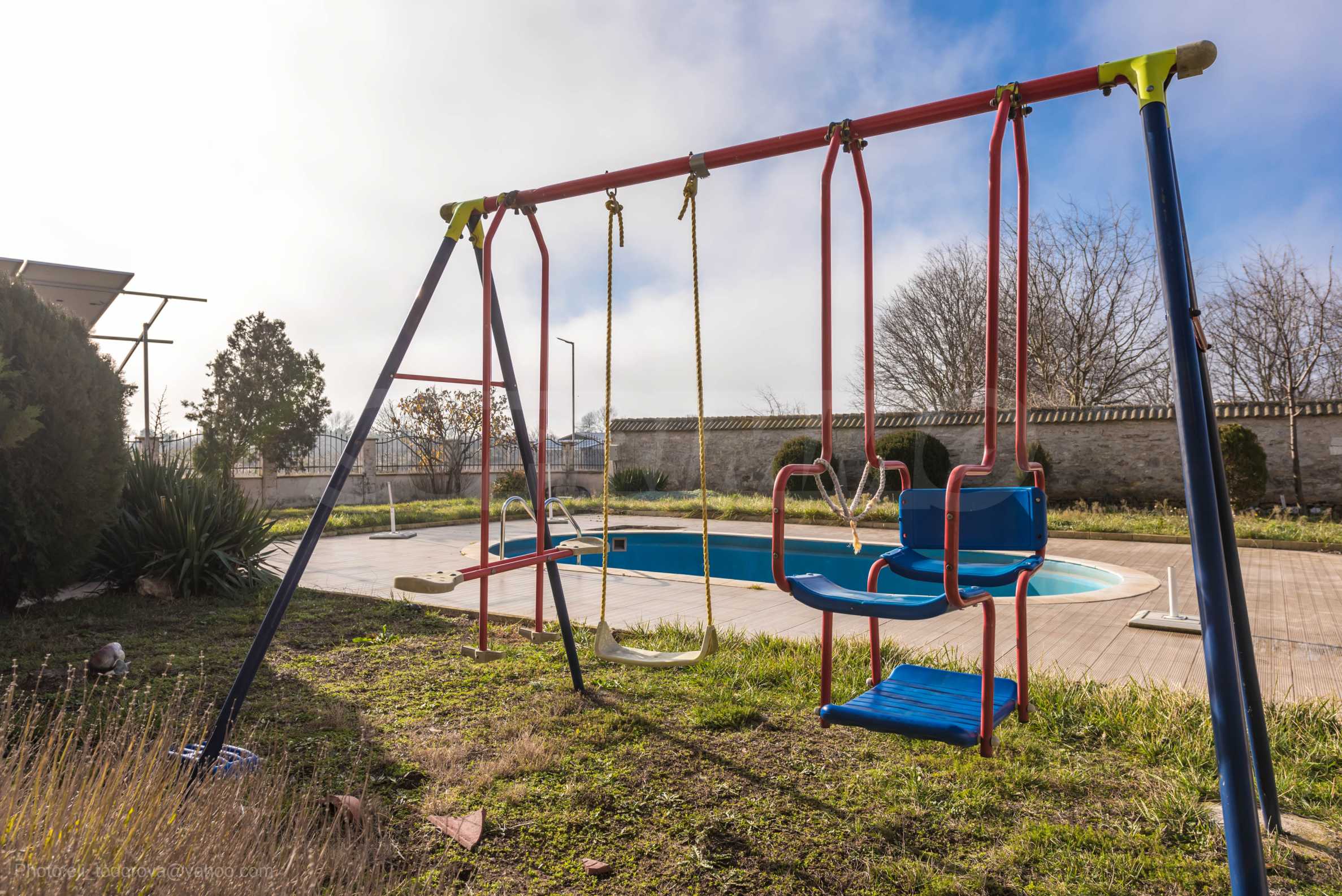 Nieruchomość składa się z działki o powierzchni 957 m2, na której zabudowany jest 3-piętrowy budynek o powierzchni zabudowy 667 m2, basenu, grilla, elektrowni o mocy 30 kilowatów , a także masywne ogrodzenie z automatyczną bramą dla samochodów.