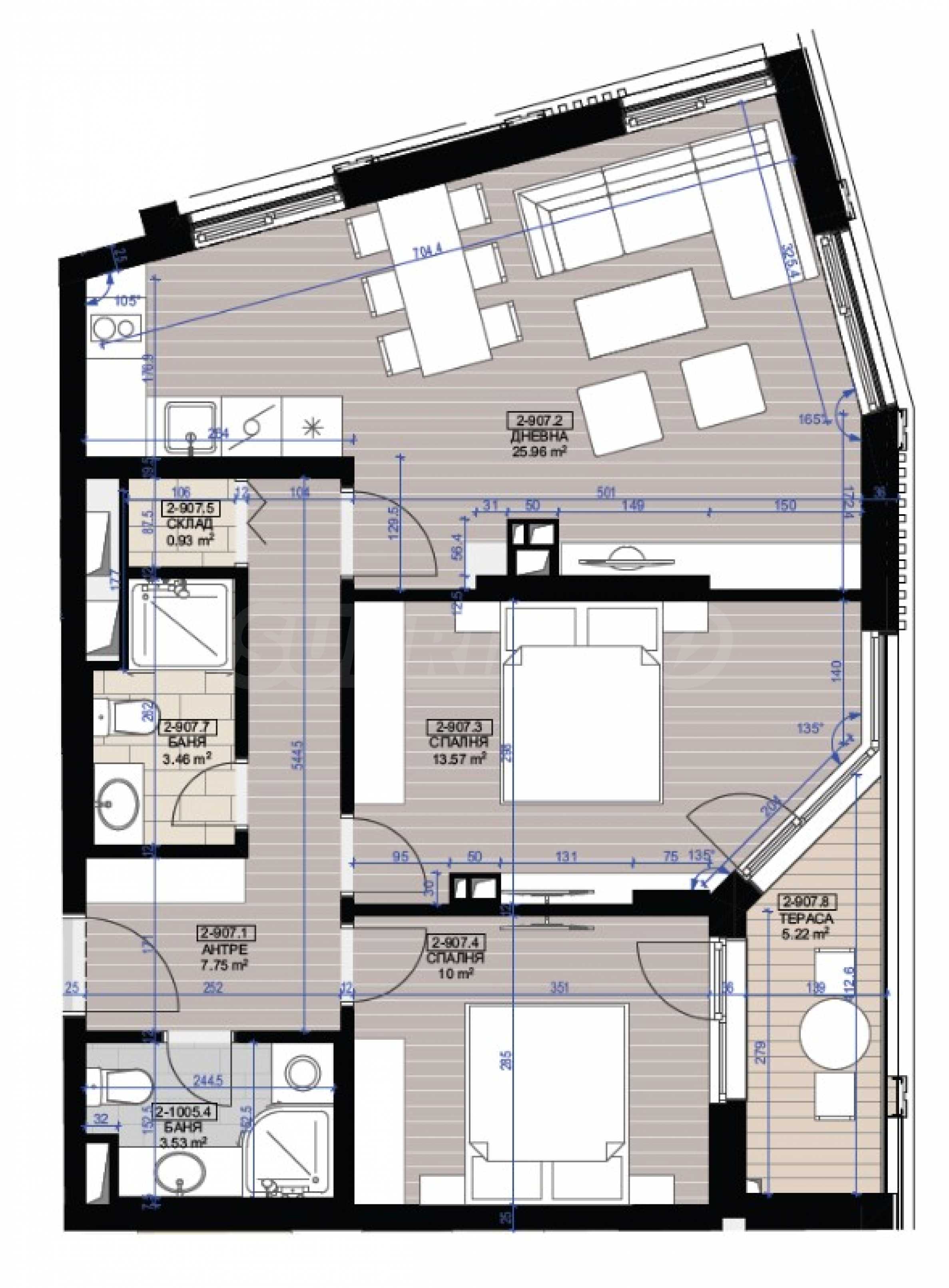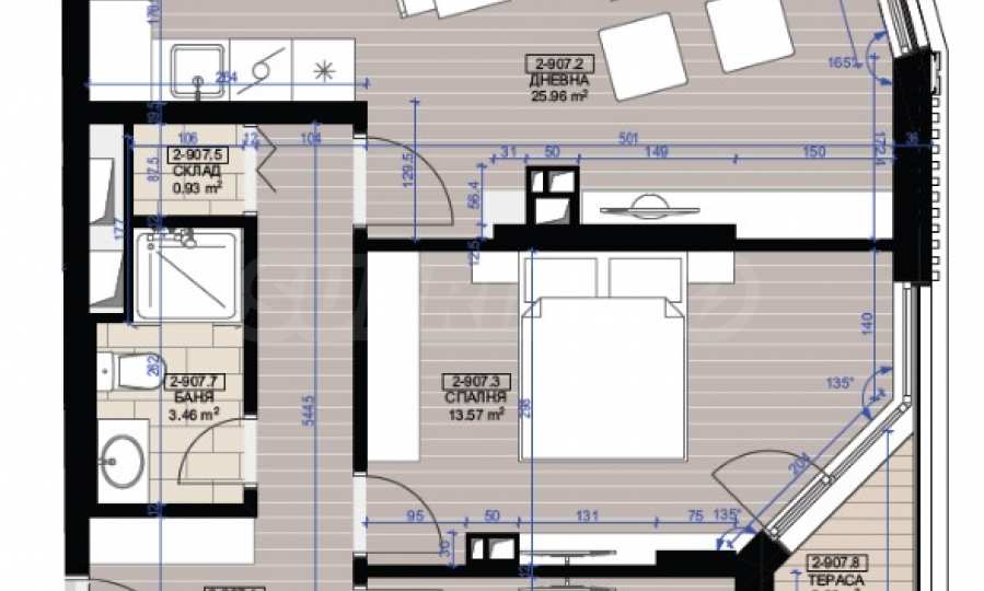Oferujemy na sprzedaż przestronne, dwupokojowe mieszkanie w nowym kompleksie tuż przy The Mall w Sofii, w dzielnicy Poligona.