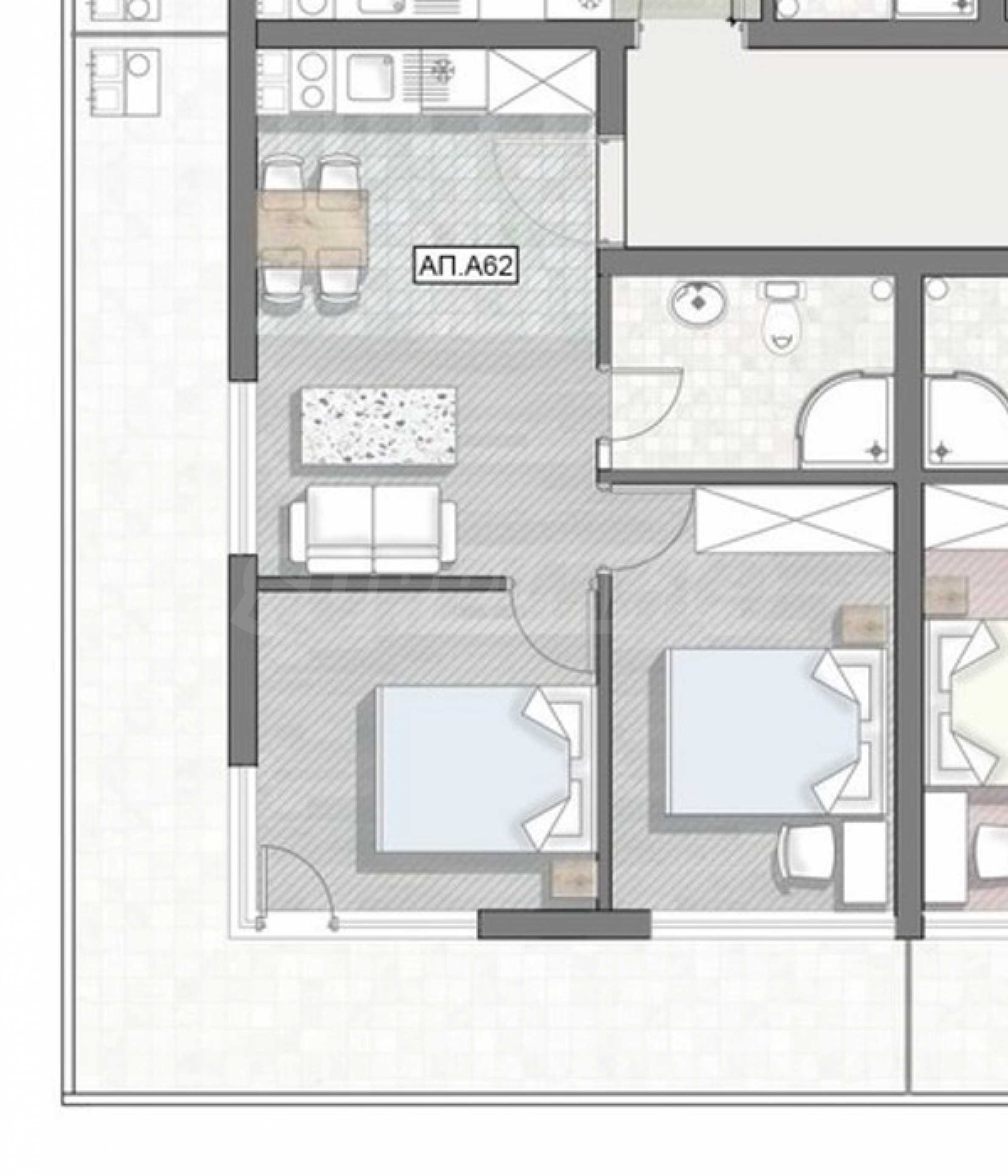 Kompleks składa się z trzech części – dwóch budynków z apartamentami, każdy z dwoma wejściami oraz kolejnego budynku – hotelu z basenem i spa, z pomieszczeniami usługowymi i usługowymi. Budynki są doskonale zlokalizowane na 10-arowej działce. Kompleks położony w pobliżu wiosek willowych i dziesiątek niezależnych prywatnych willi doskonale wpisuje się w wyjątkową przyrodę Rodopów.