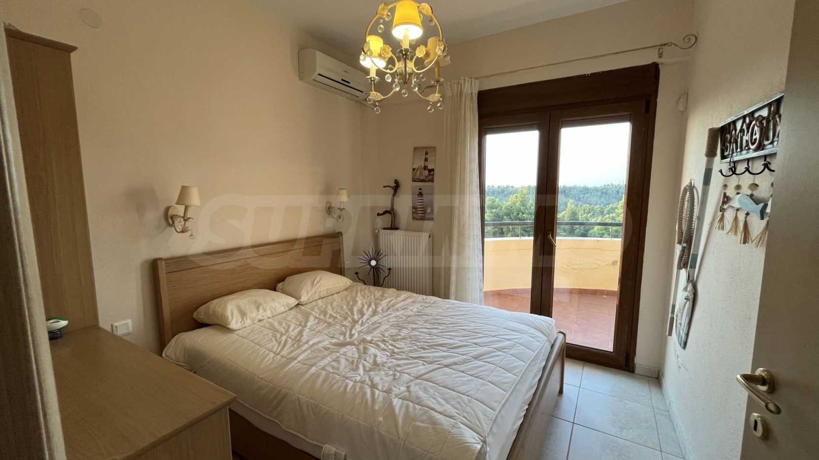 Ten dom wolnostojący na osiedlu to prawdziwy klejnot Chalkidiki w Grecji. Dzięki luksusowemu wzornictwu i nienagannemu stanowi stanowi idealne połączenie elegancji i nowoczesnego stylu życia. Z obiektu roztaczają się zapierające dech w piersiach widoki na morze, w tym na prywatną plażę, która znajduje się zaledwie kilka kroków od obiektu. Odkryty wspólny basen jest idealnym miejscem na relaks i rozrywkę. Z 3 sypialniami, 2 łazienkami i dużym parkingiem, ta nieruchomość jest idealna dla rodzin lub osób poszukujących przestronnego wypoczynku. Nie przegap okazji, aby stać się właścicielem tej wyjątkowej willi w jednej z najbardziej poszukiwanych lokalizacji w Grecji.