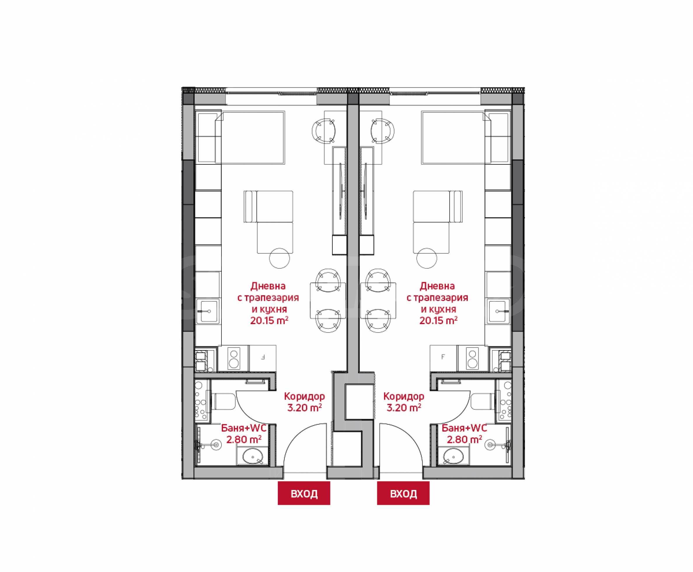Dwa apartamenty jednopokojowe typu studio dwupokojowe w nowym budynku obok centrum handlowego Sofia Mall