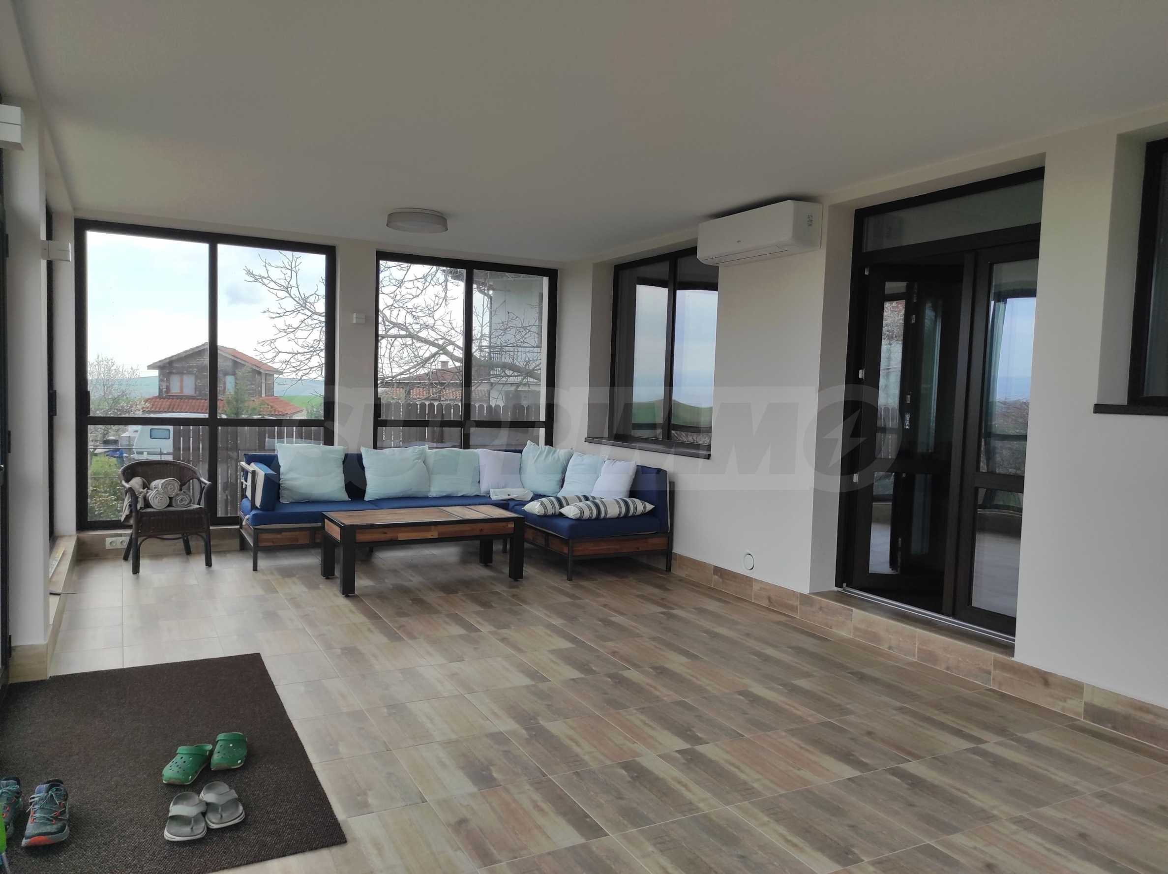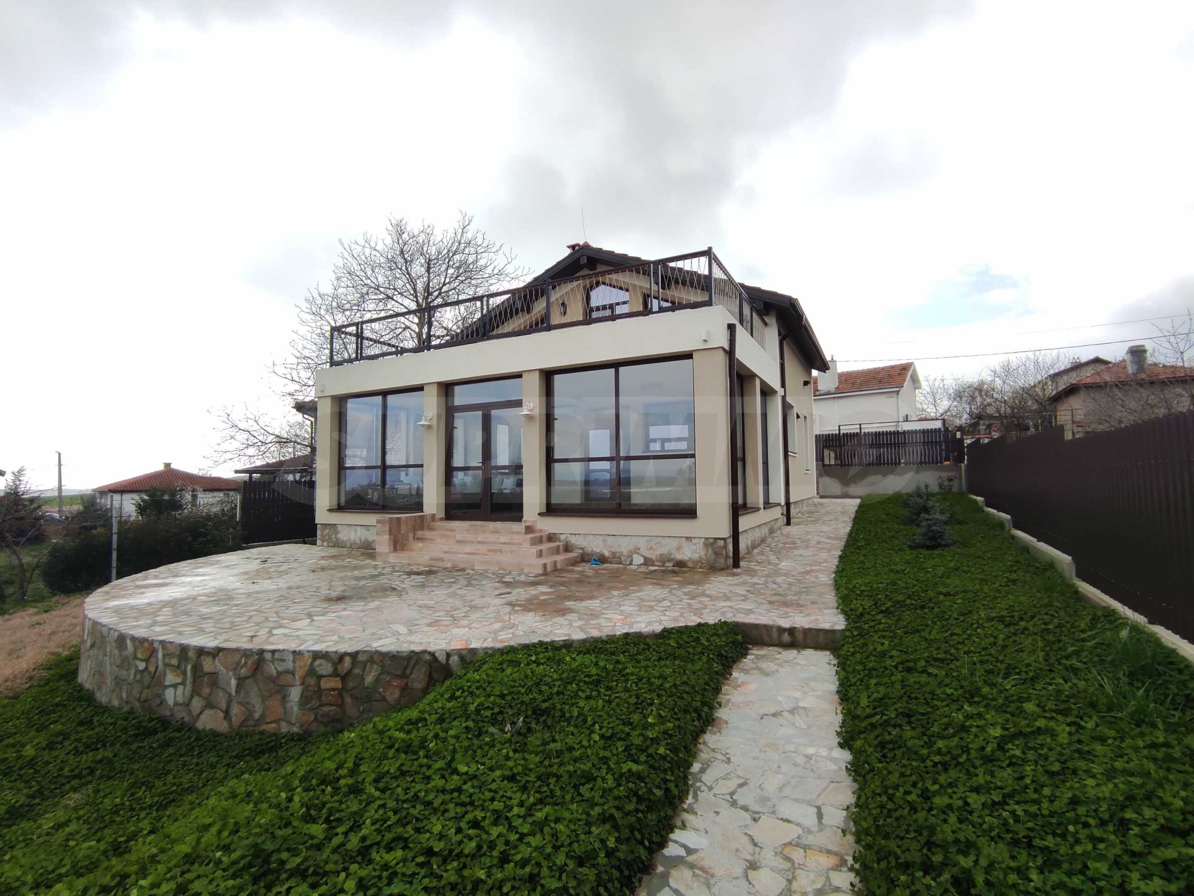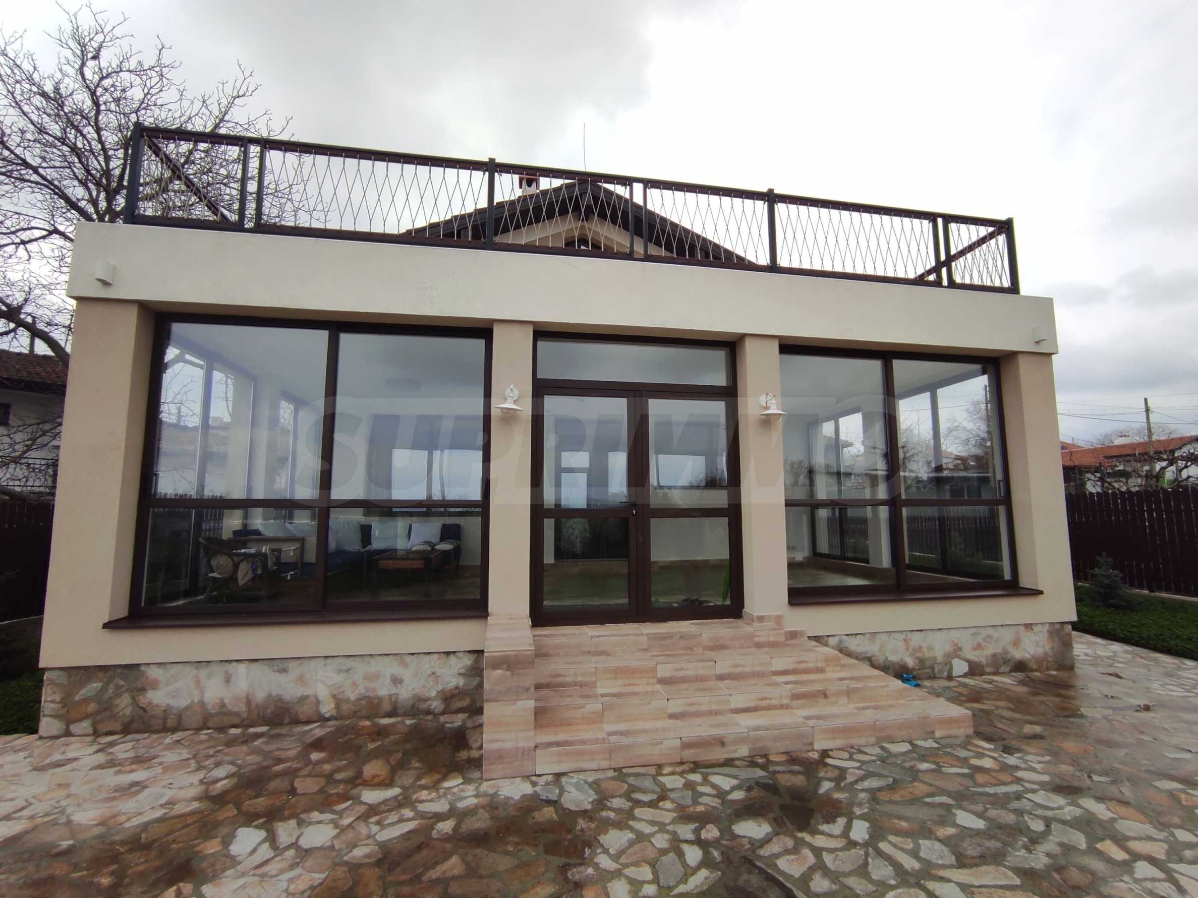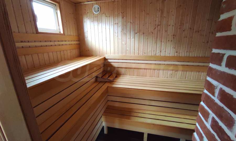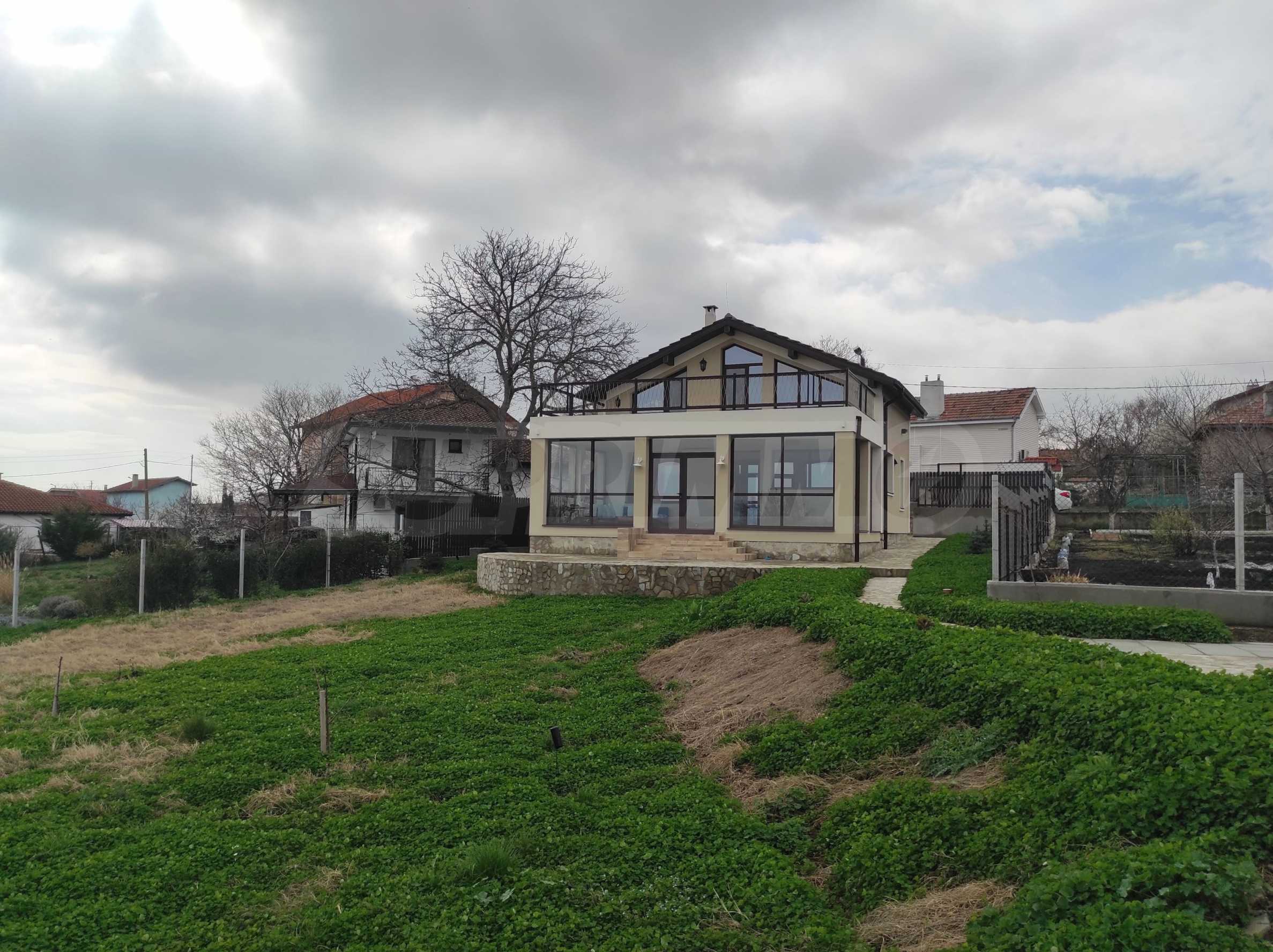 Prezentujemy na sprzedaż nowy, umeblowany dwupiętrowy dom z podwórkiem, garażem i własną rosyjską łaźnią we wsi Aleksandrowo. Wieś jest popularna do zamieszkania, położona jest zaledwie 15 minut jazdy samochodem od Słonecznego Brzegu.