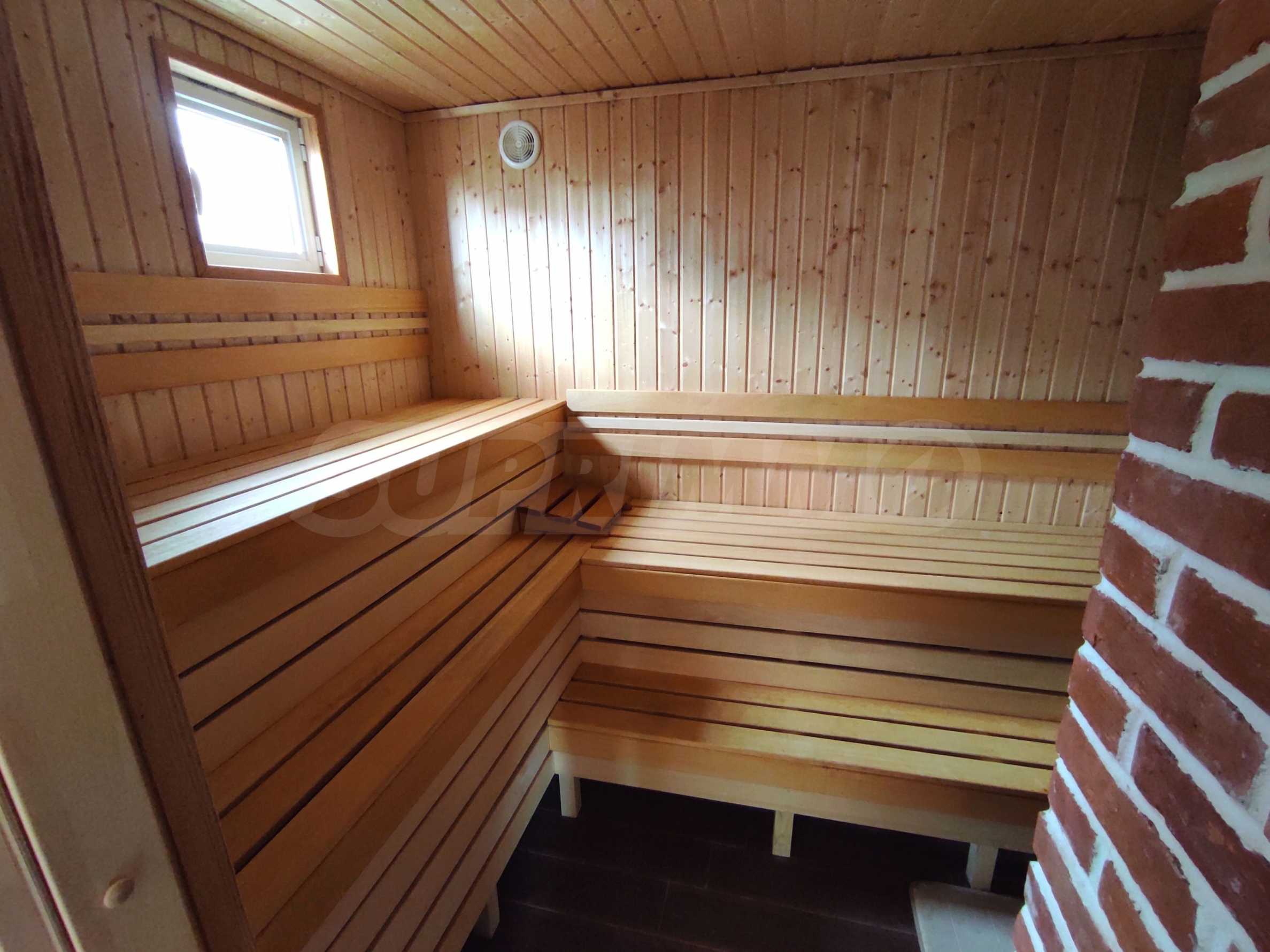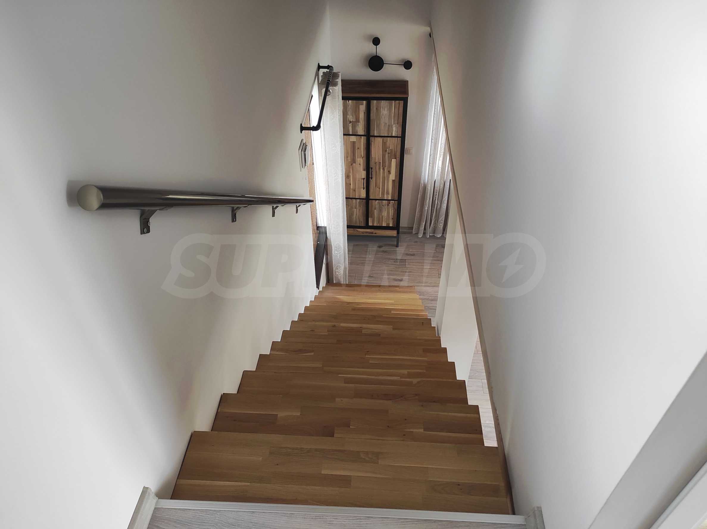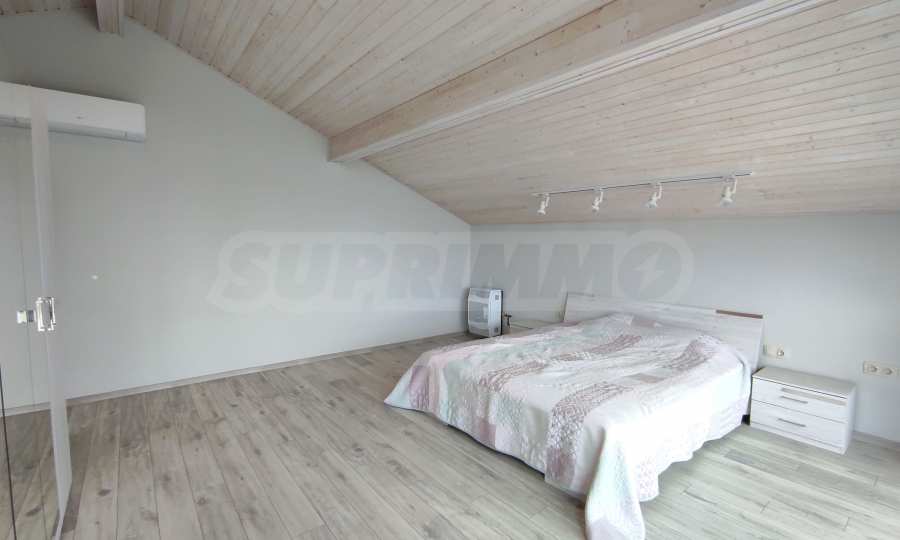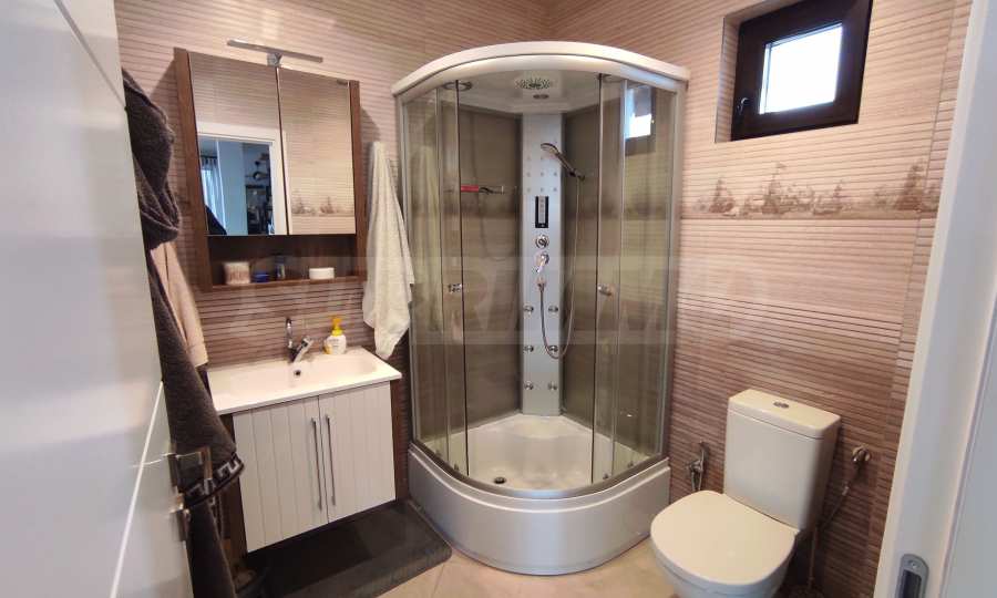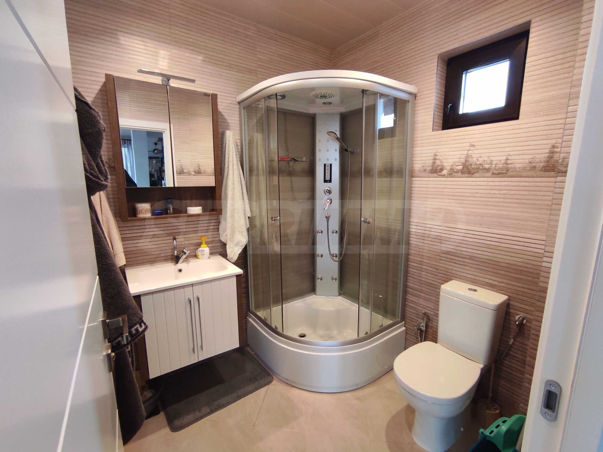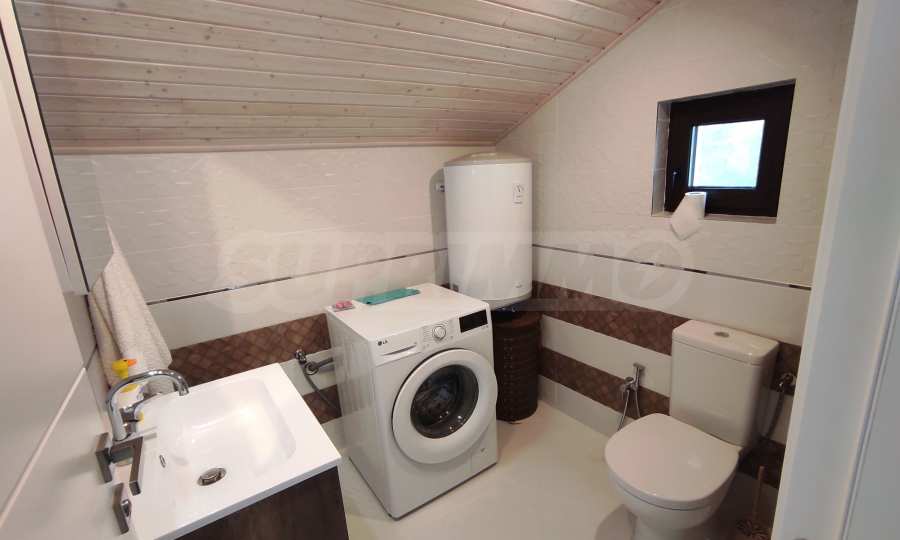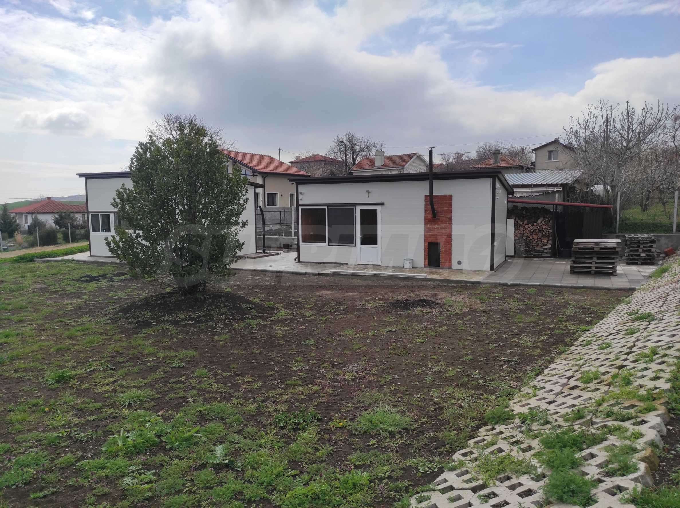Prezentujemy na sprzedaż nowy, umeblowany dwupiętrowy dom z podwórkiem, garażem i własną rosyjską łaźnią we wsi Aleksandrowo. Wieś jest popularna do zamieszkania, położona jest zaledwie 15 minut jazdy samochodem od Słonecznego Brzegu.
