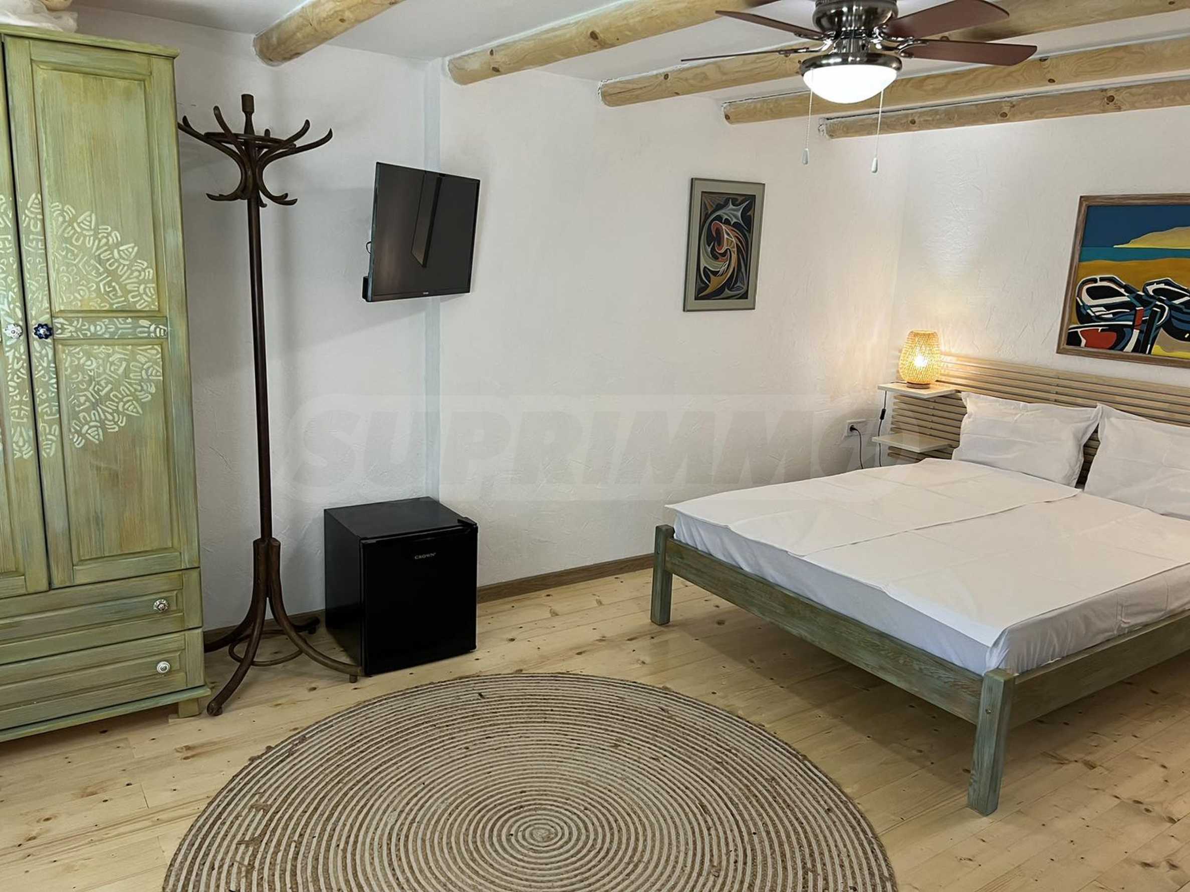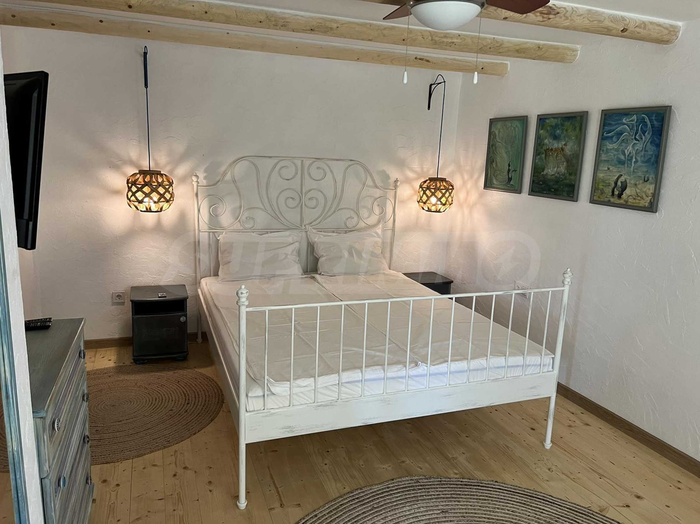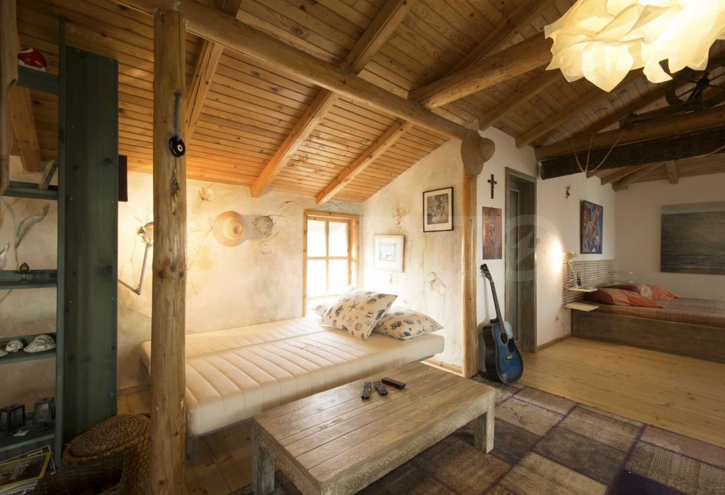 Prezentujemy do wynajęcia atrakcyjną dwupiętrową willę w stylu architektury odrodzenia bułgarskiego, z dużym ogrodem, w spokojnej okolicy Tarfa, zaledwie 1 km na południe od popularnego nadmorskiego kurortu Lozenets.